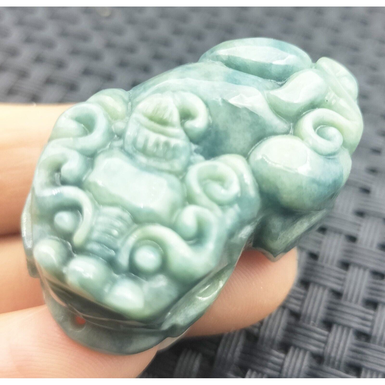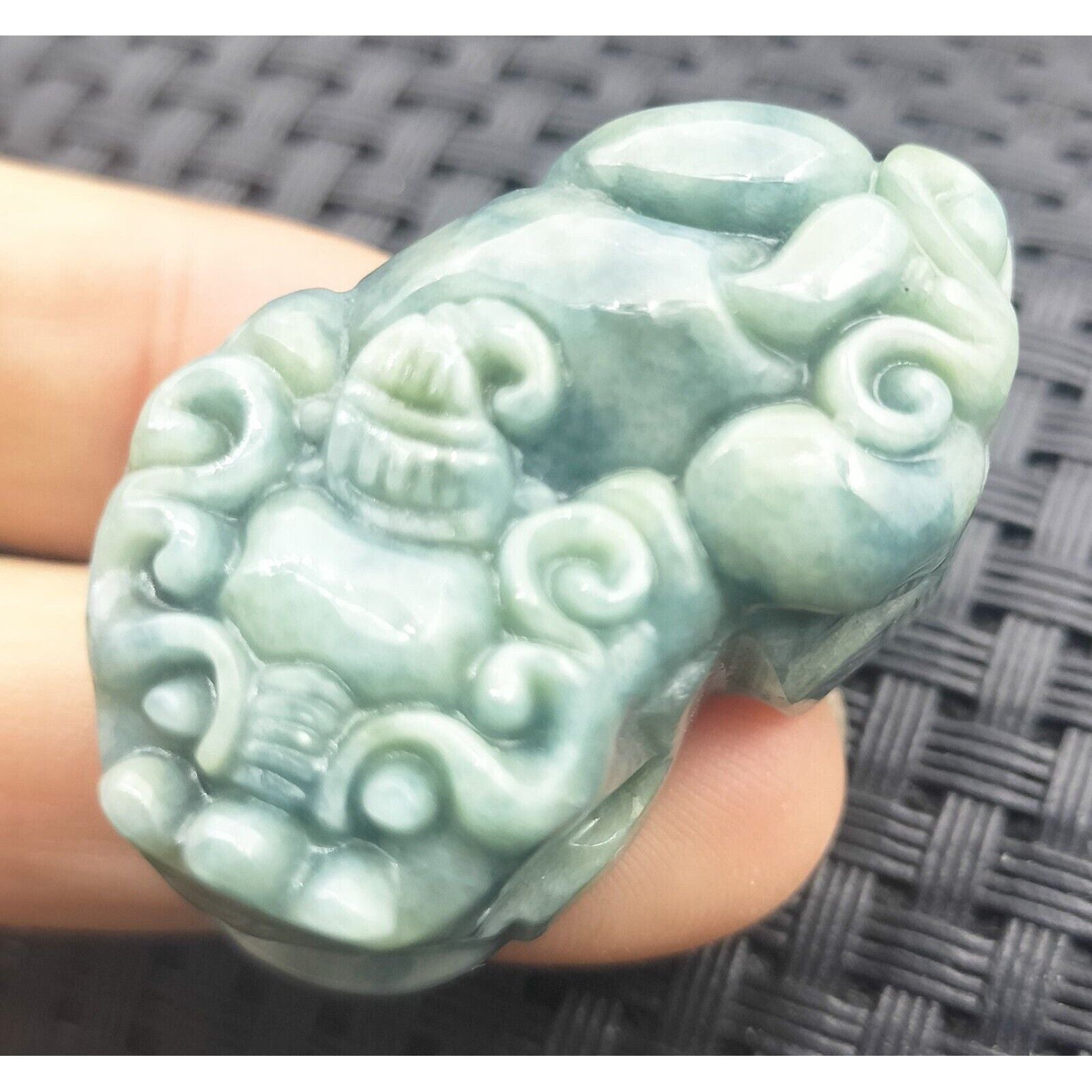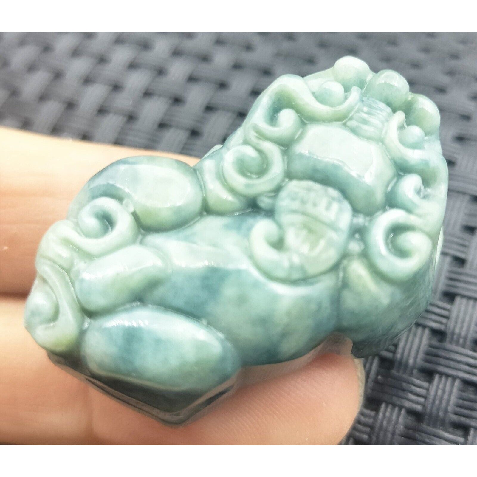 Certified Green Natural Type A Jade Jadeite Carved Dragon Pi Xiu Coin Pendant