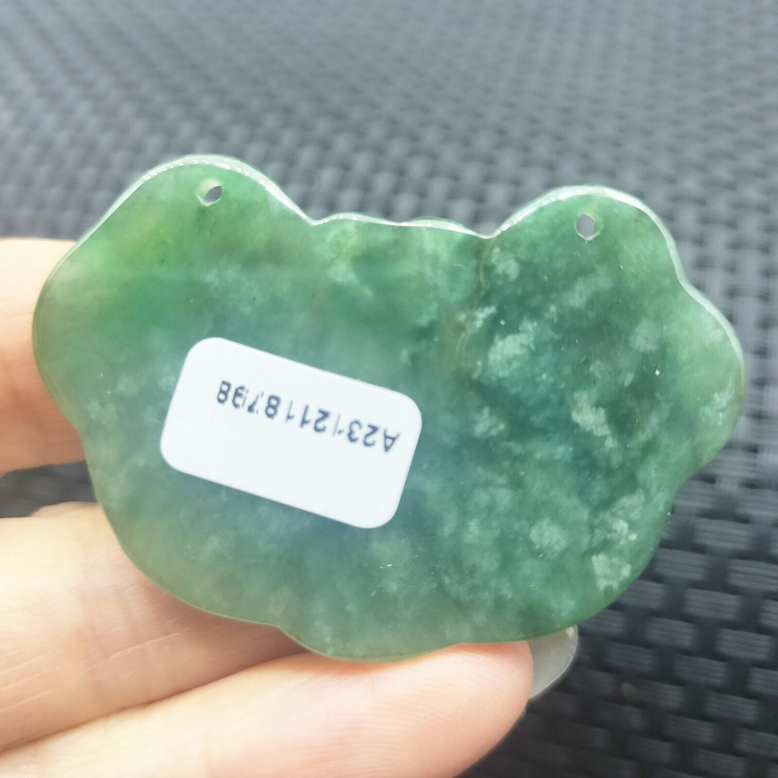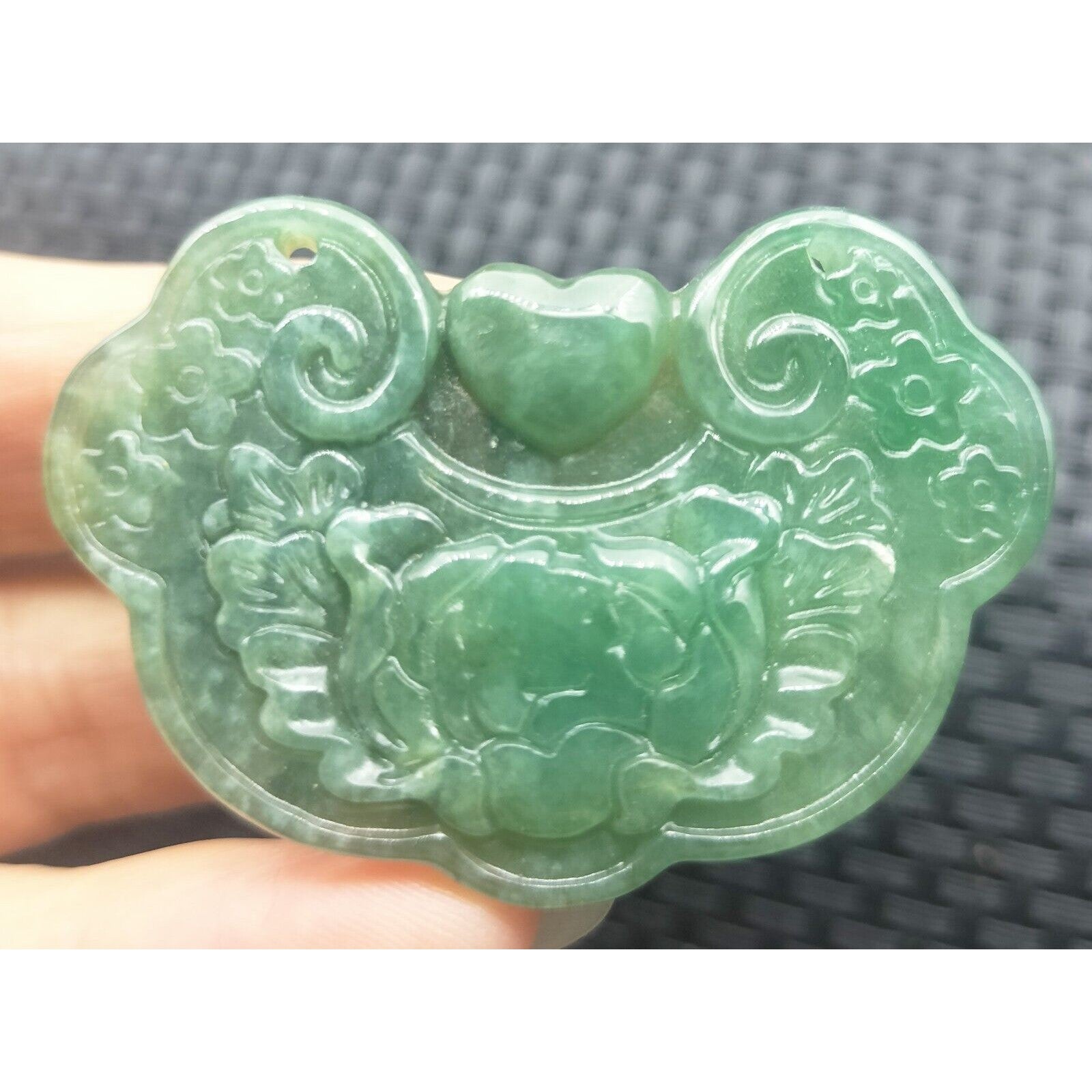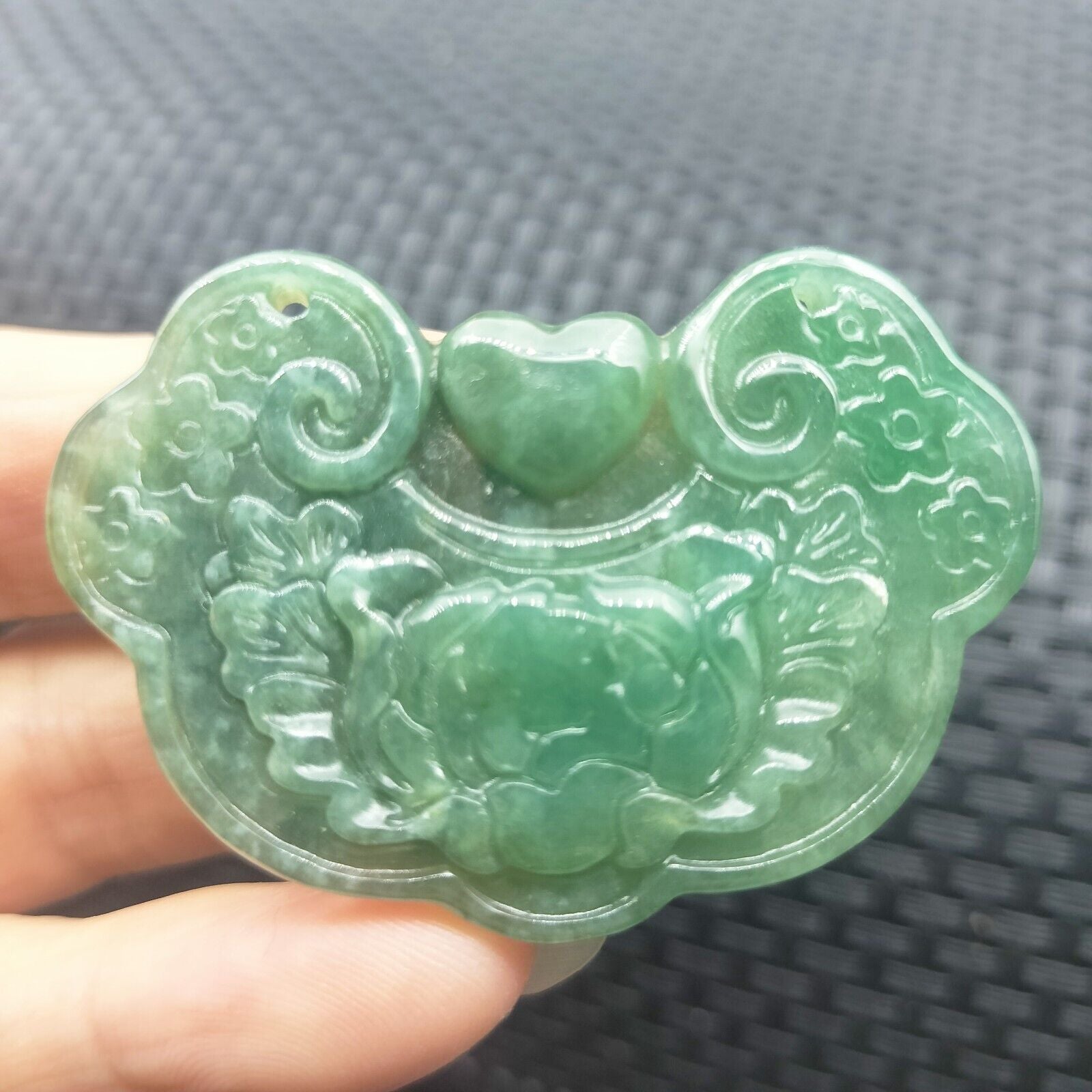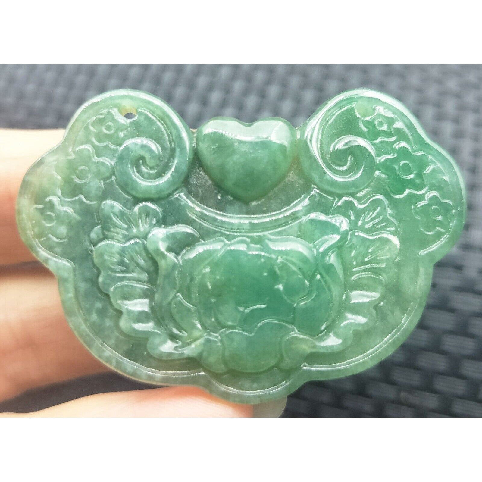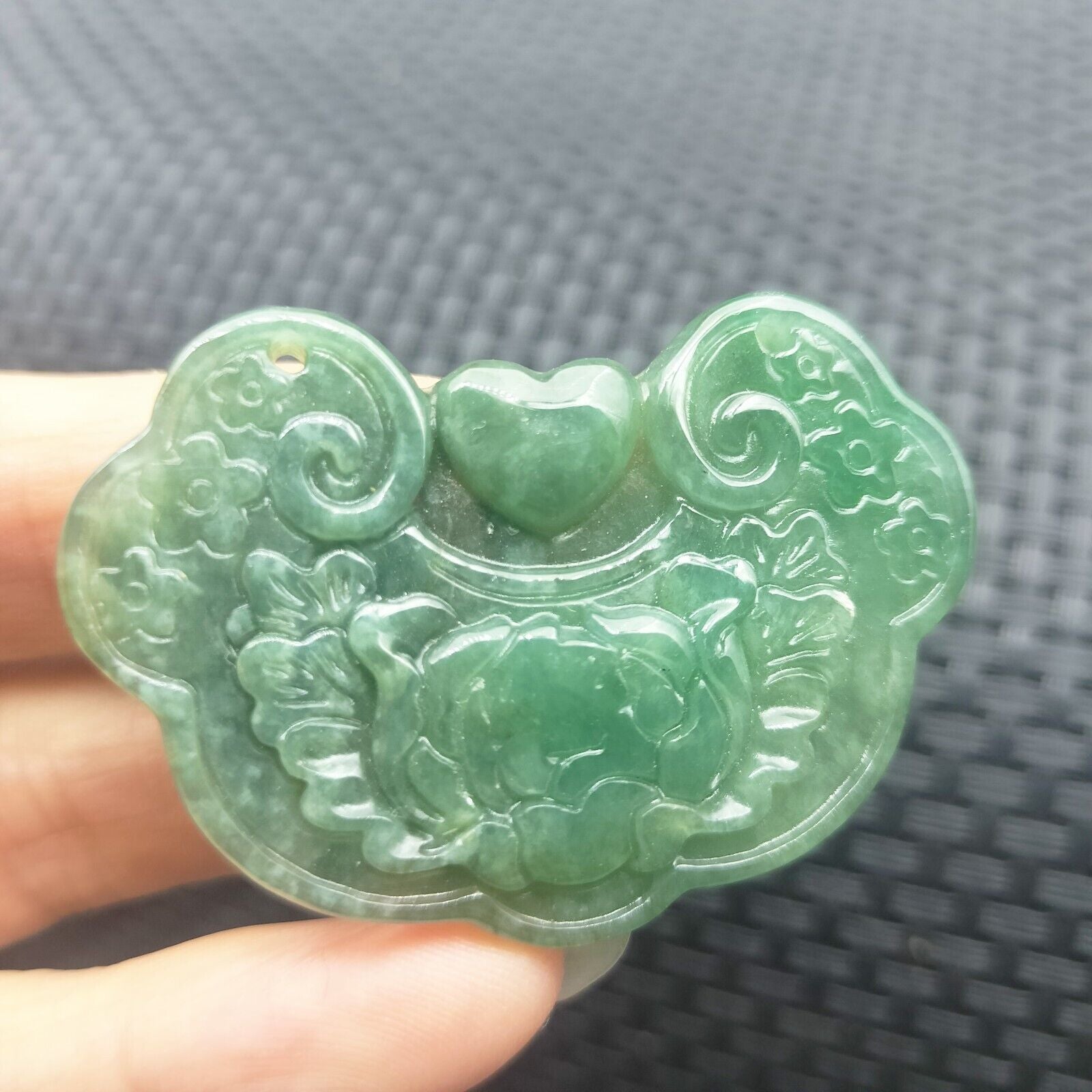 Certified Green Natural Type A Jade Jadeite Carved Flower Lock Pendant