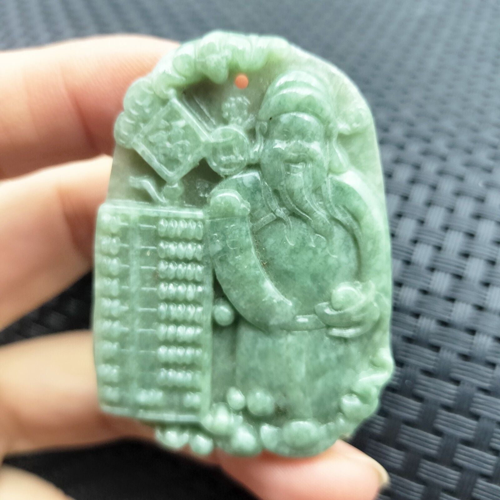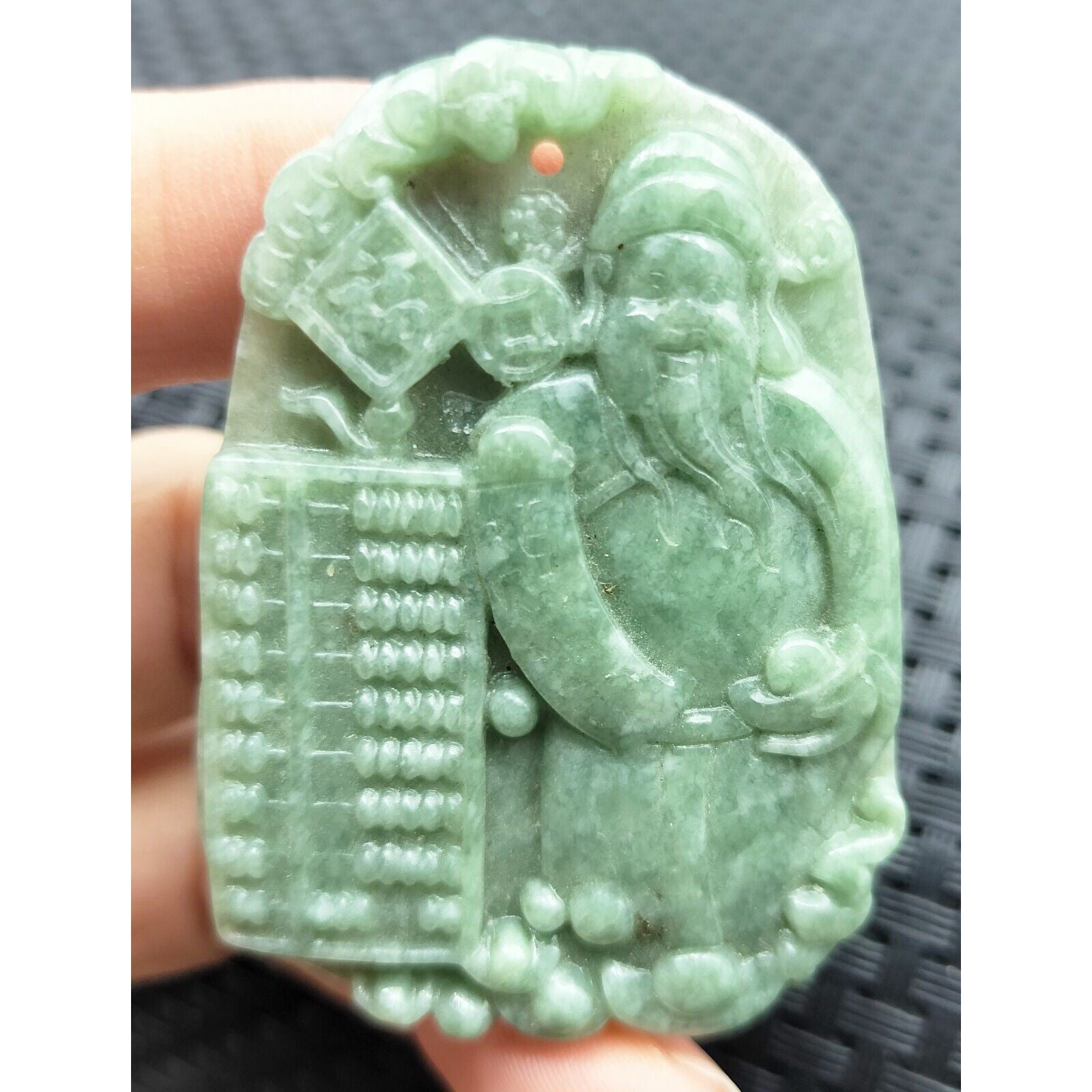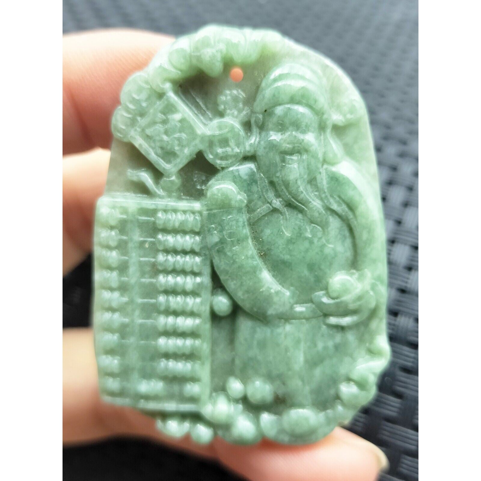 Certified Green Natural Type A Jade Jadeite Carved God Of Wealth Abacus Pendant