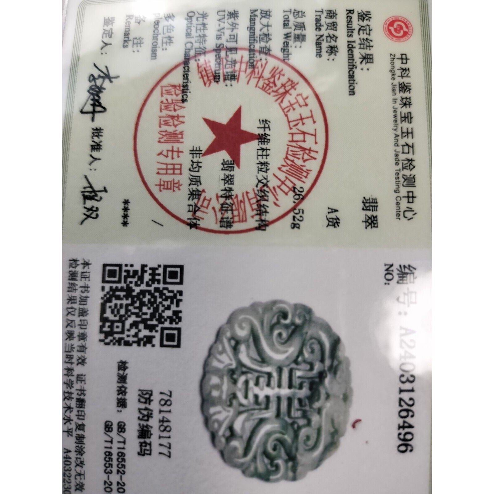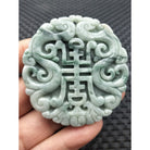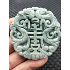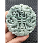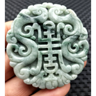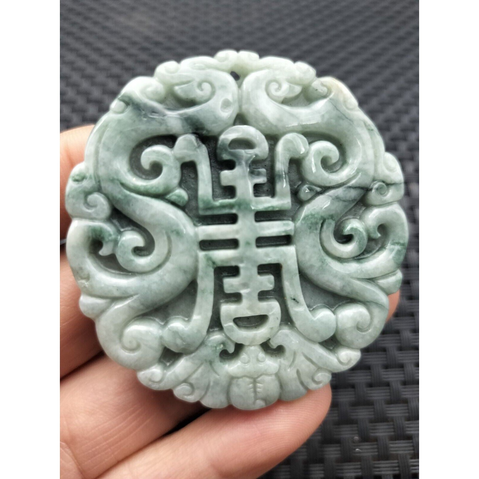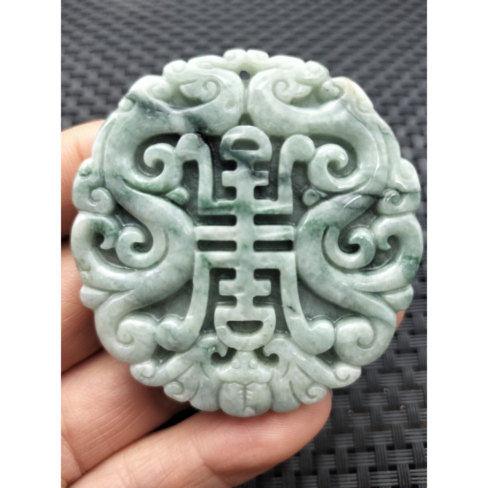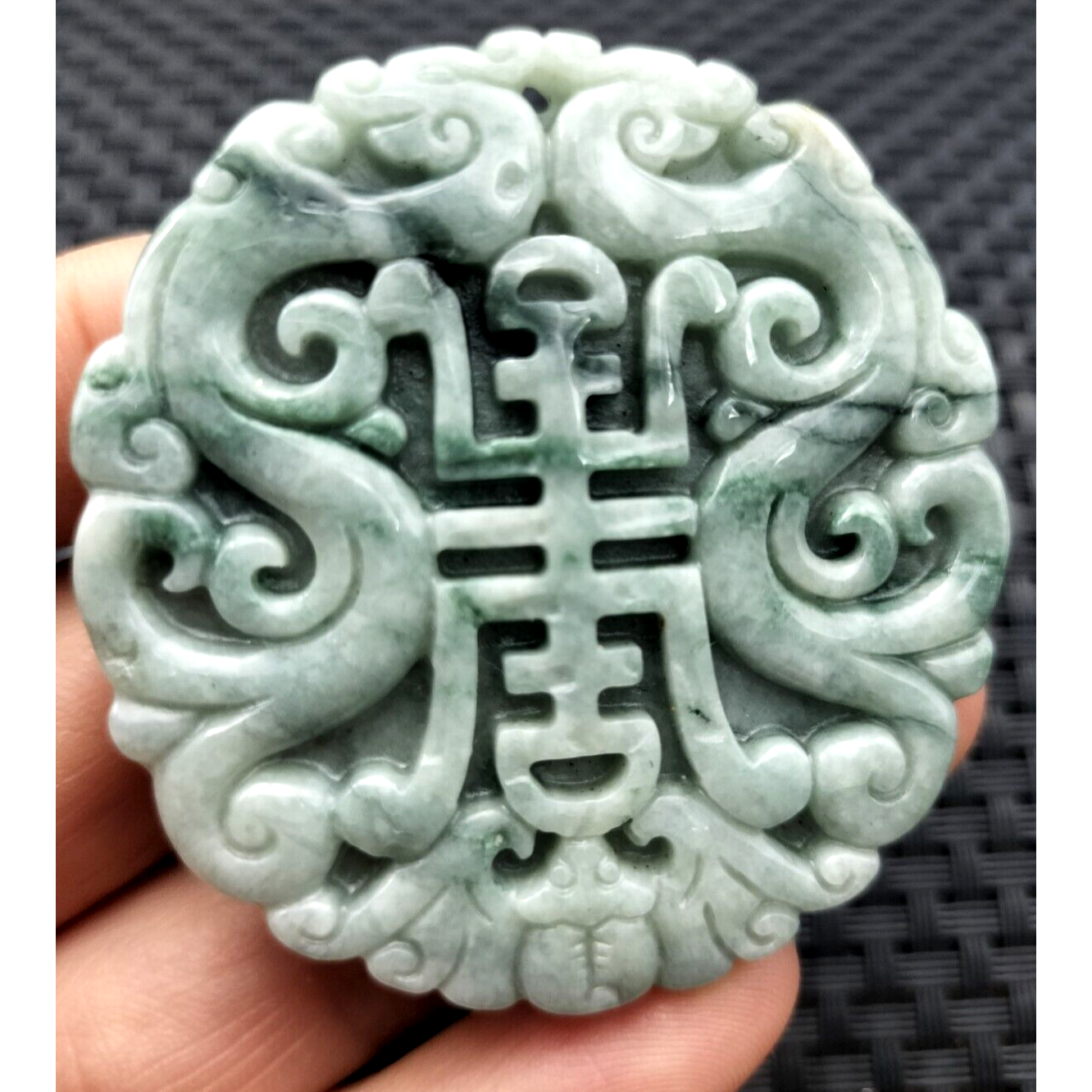 Certified Green Natural Type A Jade Jadeite Carved Longevity Bat Dragon Pendant