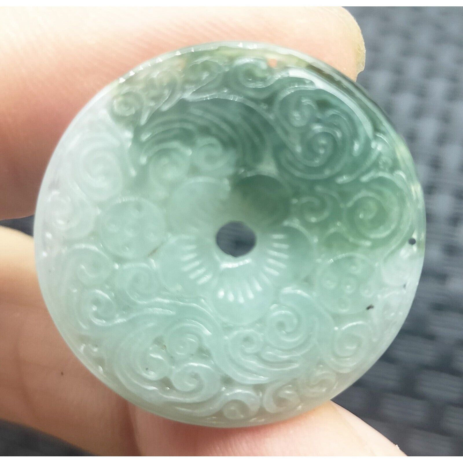 Certified Green Natural Type A Jade Jadeite Moire Safety Circle Donut Pendant