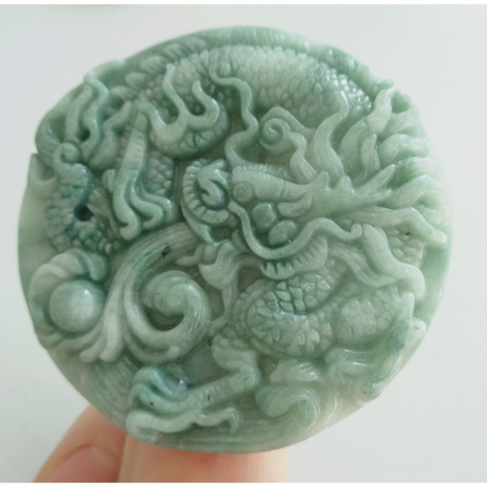 • Certified Green Natural Type A Jadeite Carved Dragon Bead Pendant