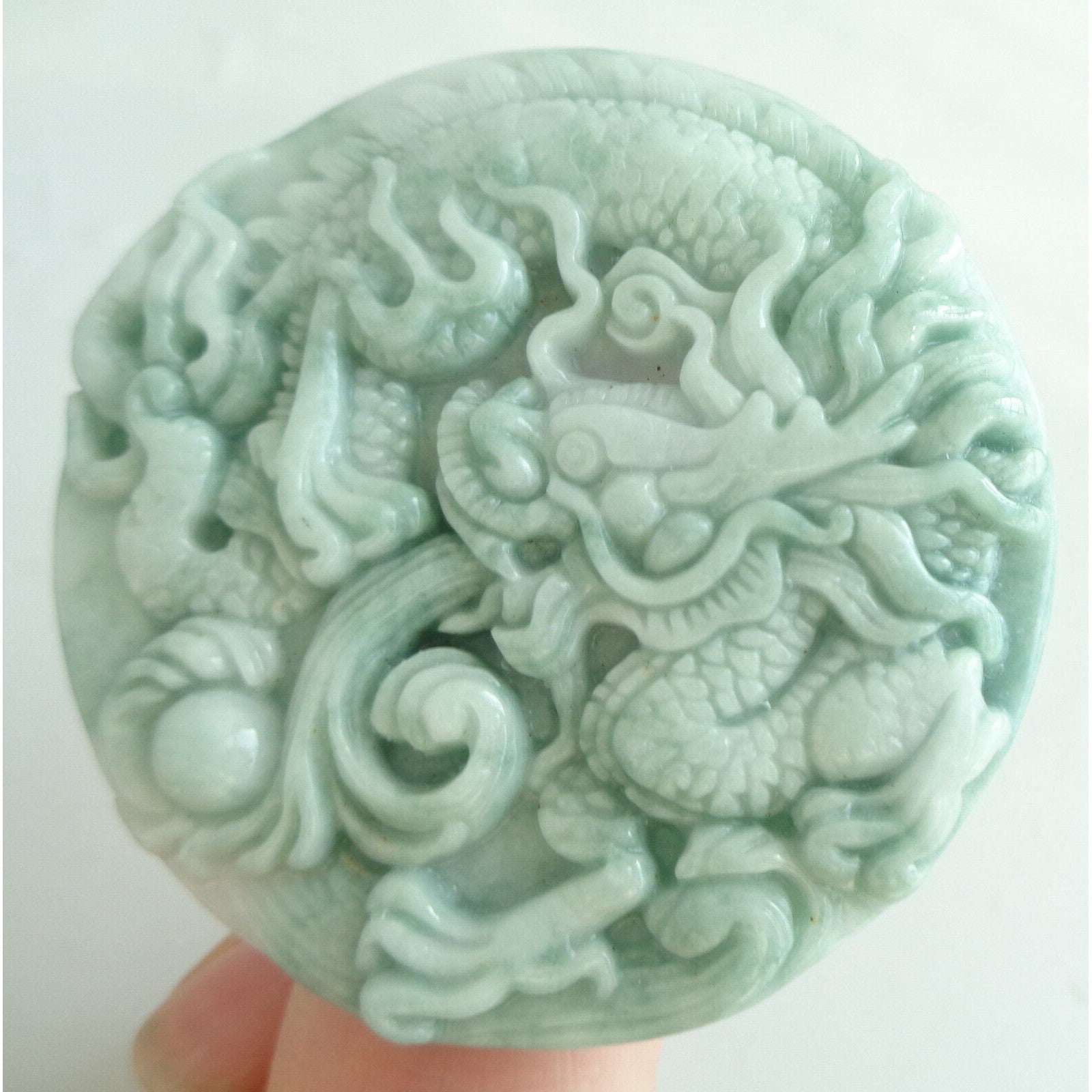 • Certified Green Natural Type A Jadeite Carved Dragon Bead Pendant