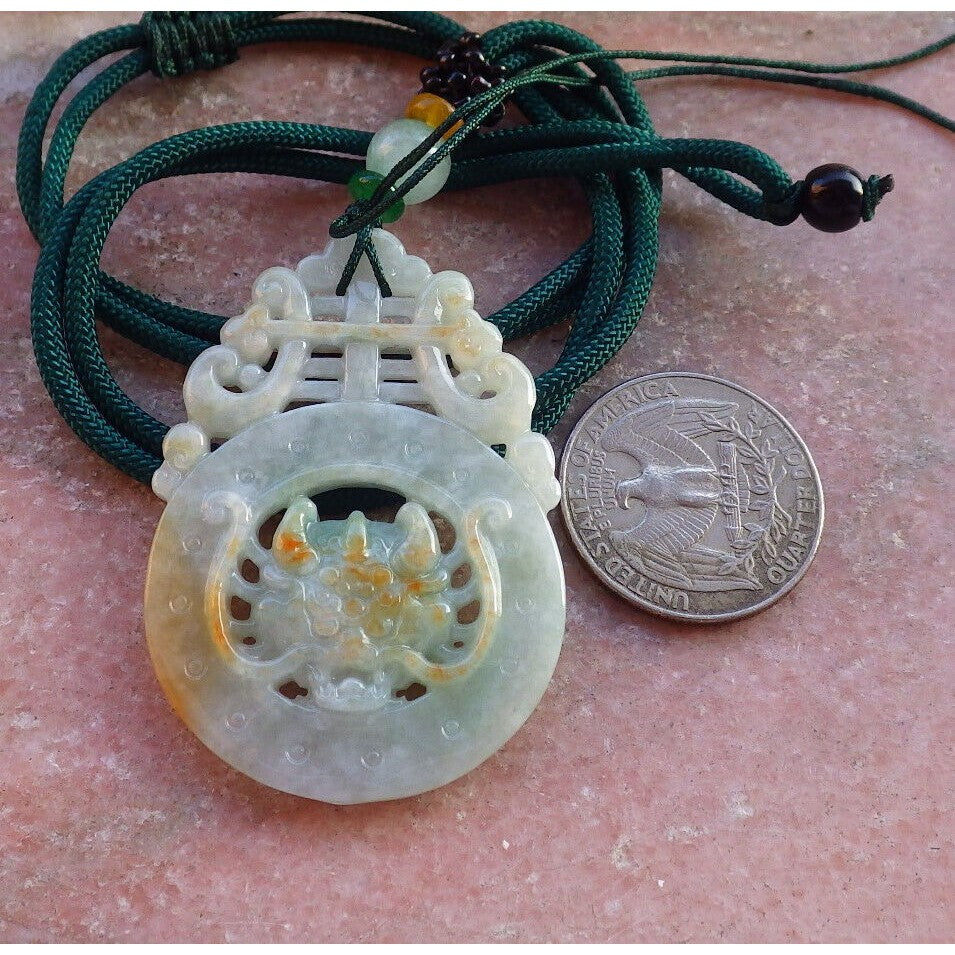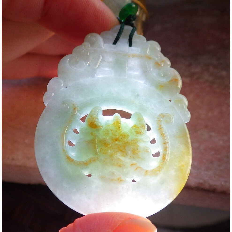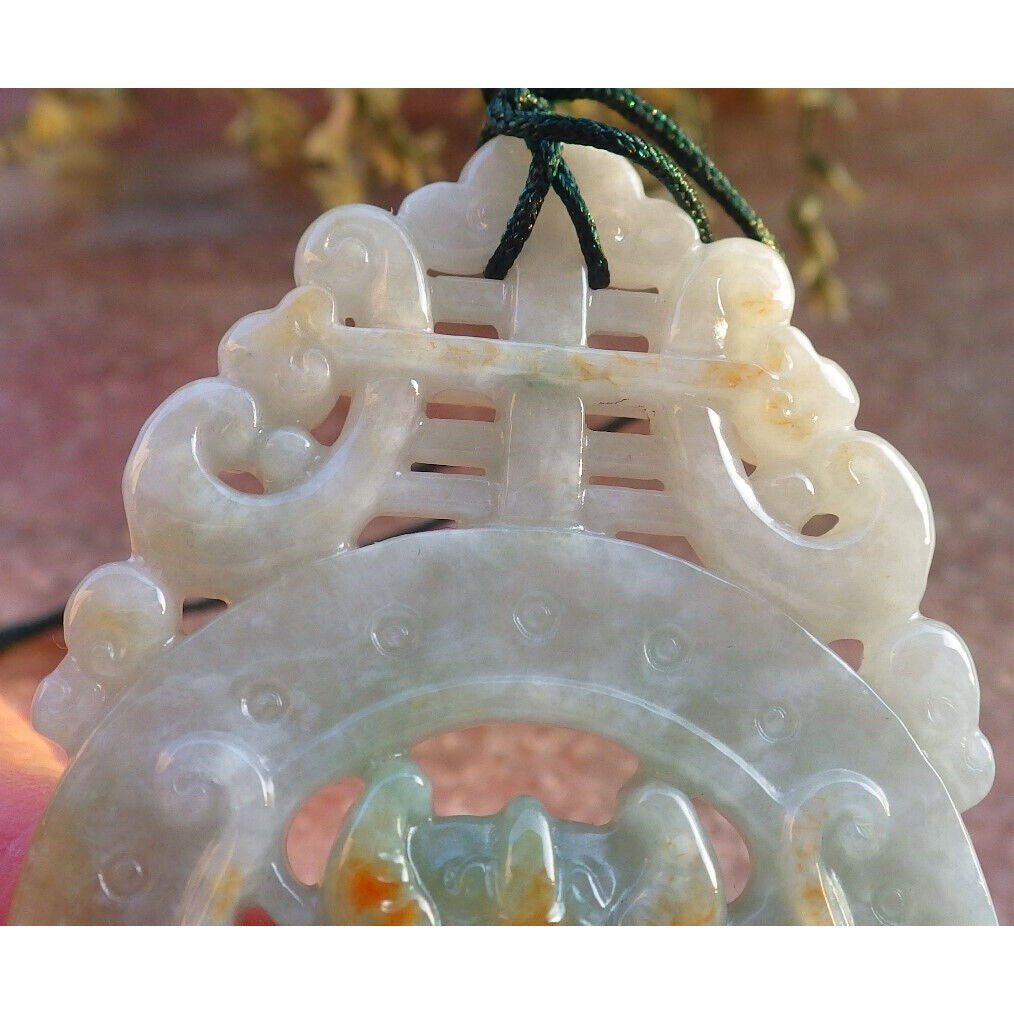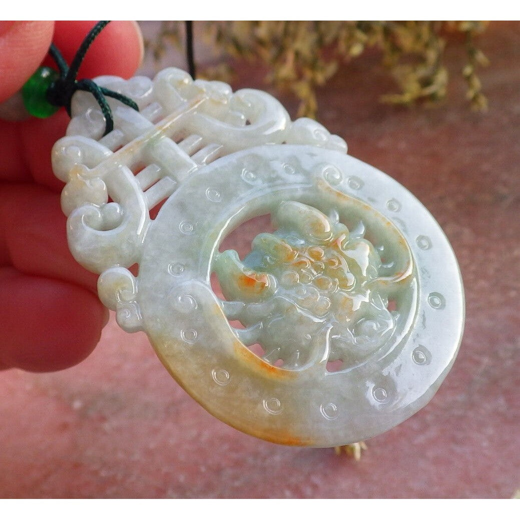 Certified Green Red Burma Natural A Jade Jadeite Pendant Dragon Longevity Necklace