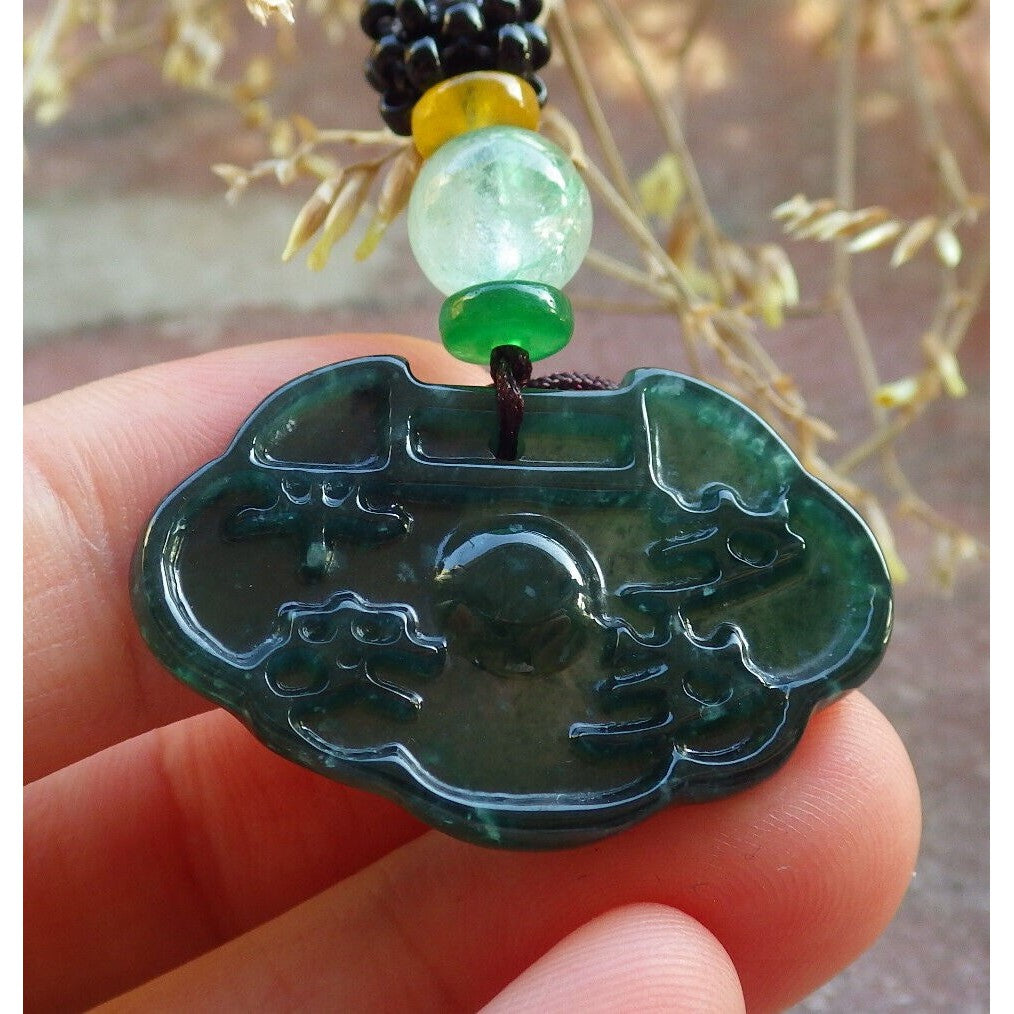 Certified Icy Blue Water Burma 100% A Jade Jadeite Pendant Lock Ruyi Necklace