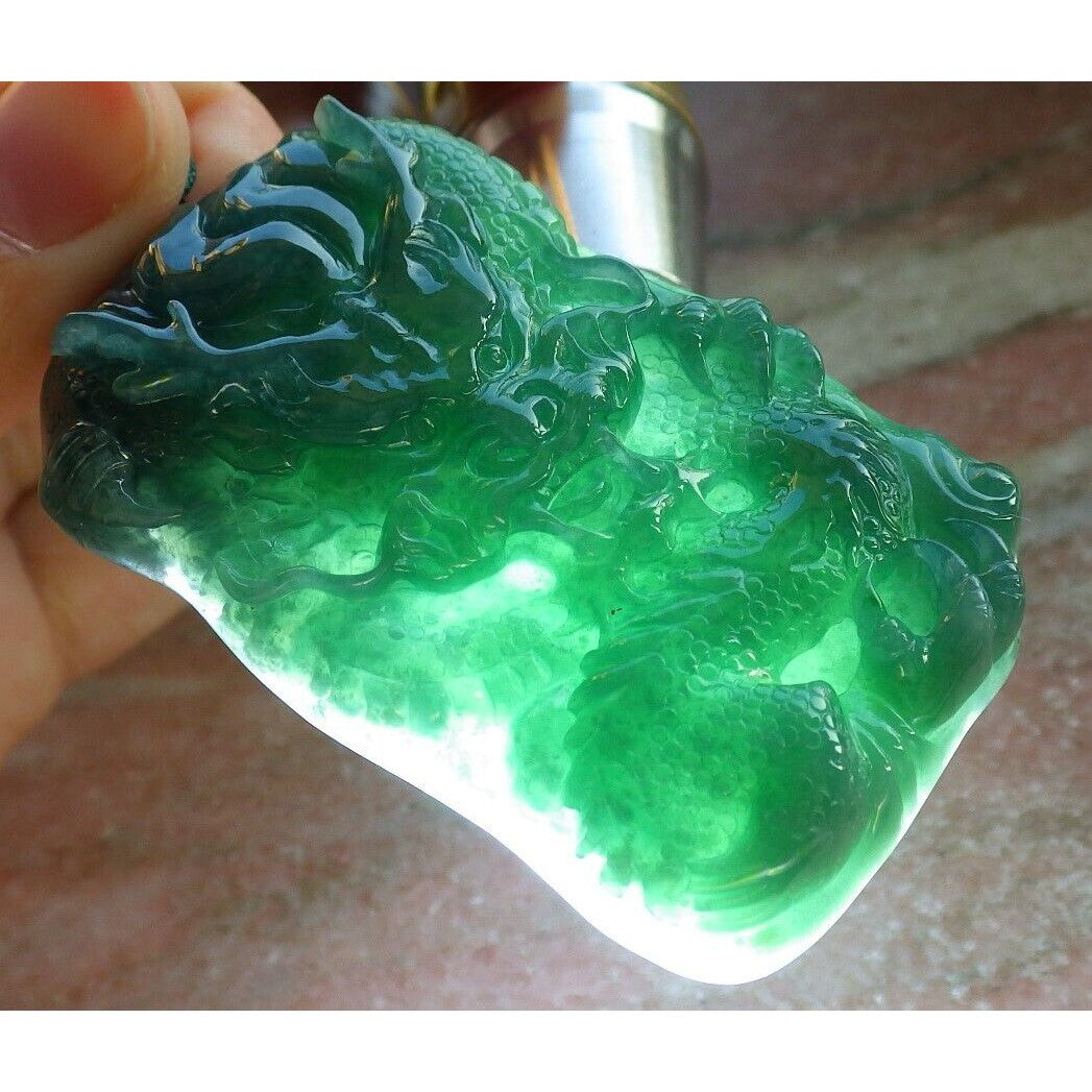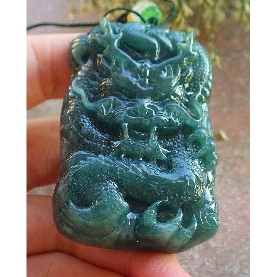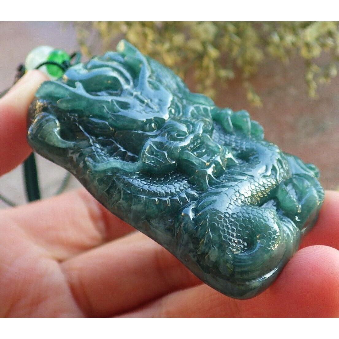 Certified Icy Green 100% Burma Natural A Jade Jadeite Pendant Dragon Necklace