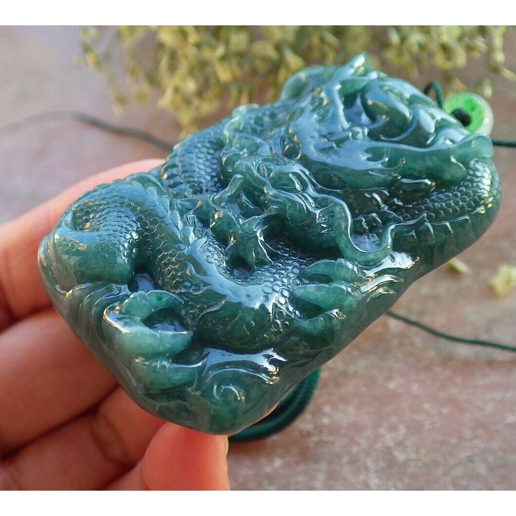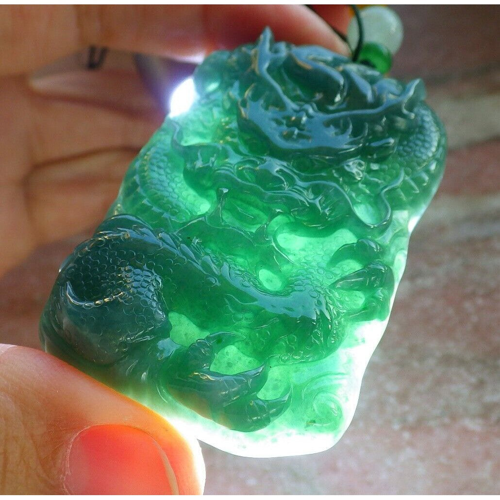 • Certified Icy Green 100% Burma Natural A Jade Jadeite Pendant Dragon Necklace