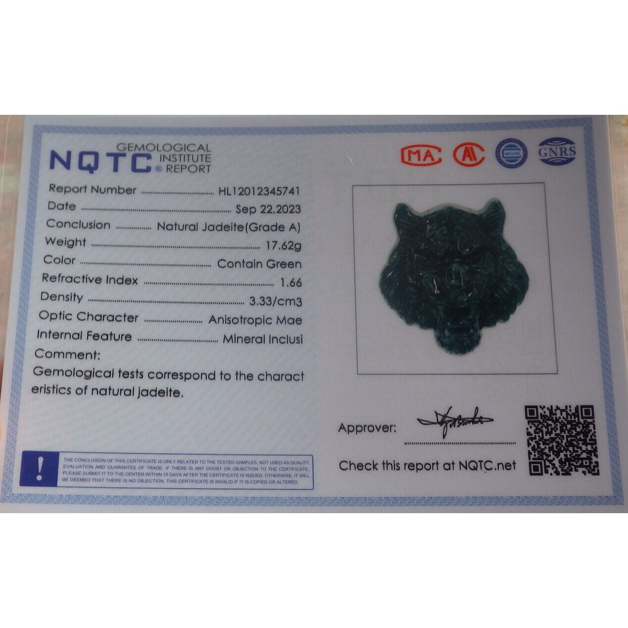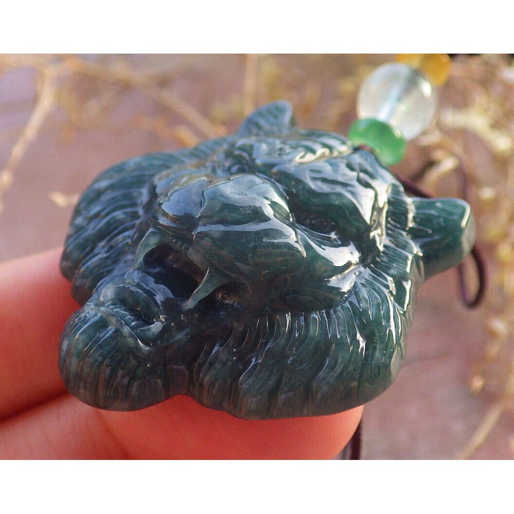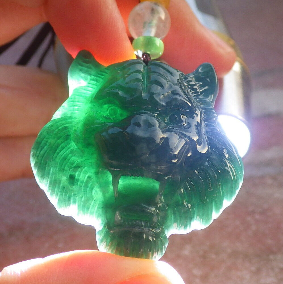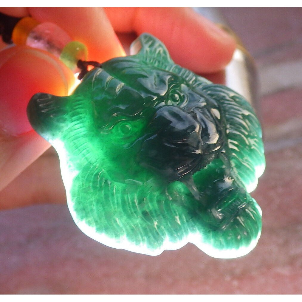 Certified Icy Green Burma 100% Natural A Jade Jadeite Pendant Tiger Necklace