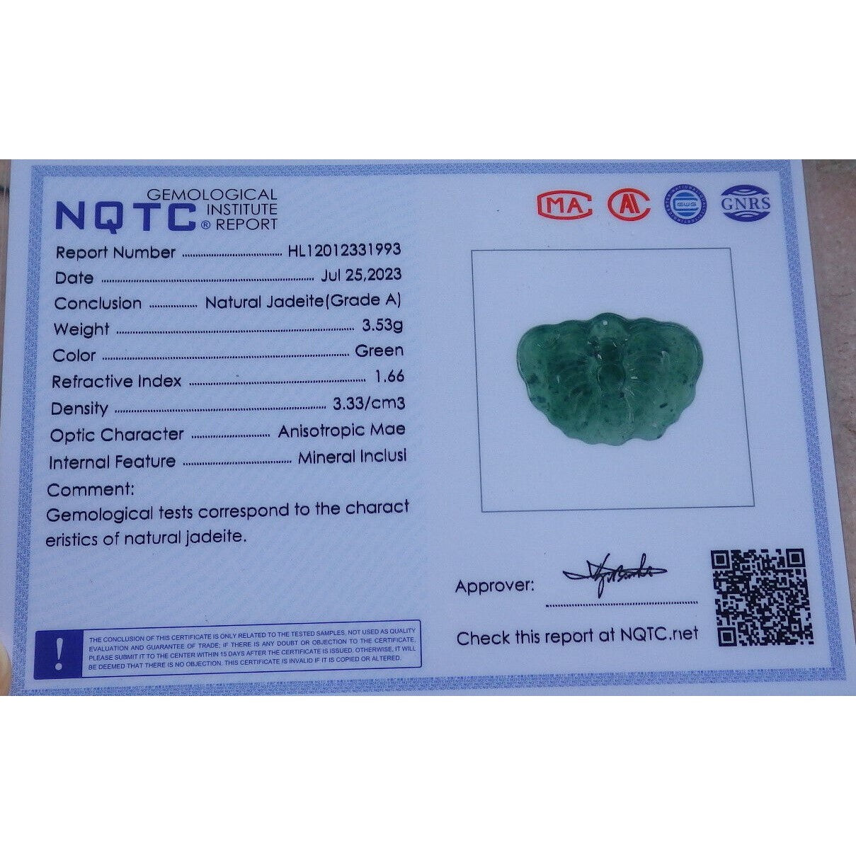 Certified Icy Green Burma Natural A Jade Jadeite Pendant Butterfly Necklace
