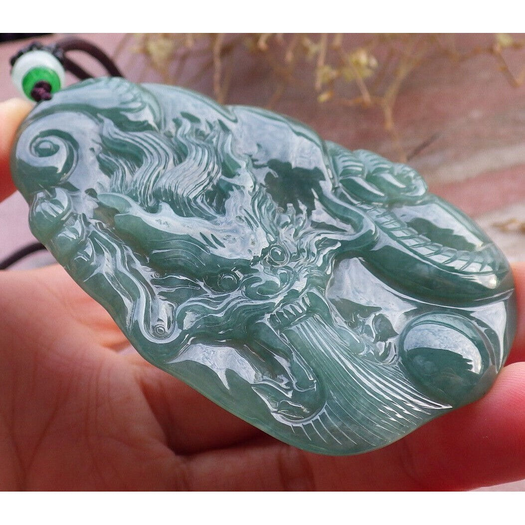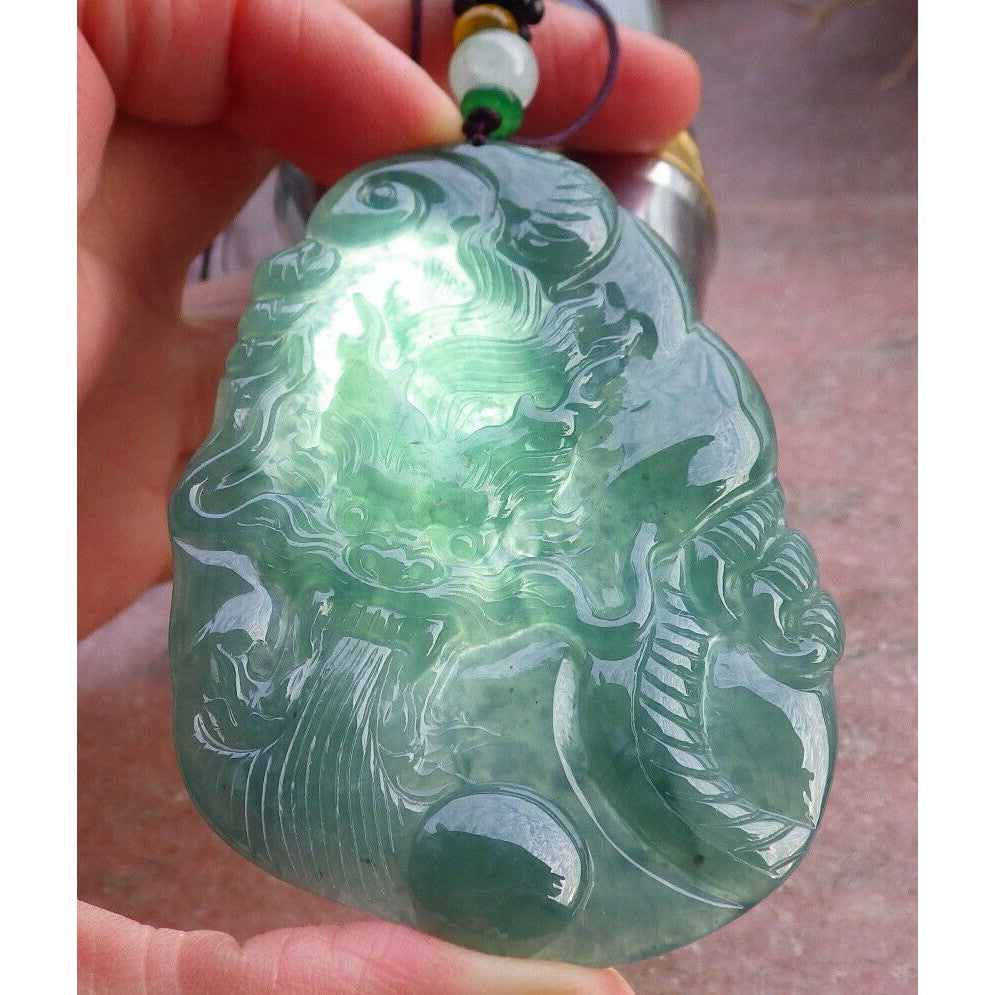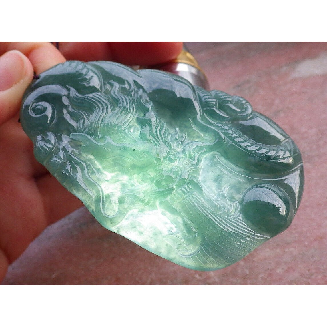 Certified Icy Green Burma Natural A Jade Jadeite Pendant Dragon Necklace