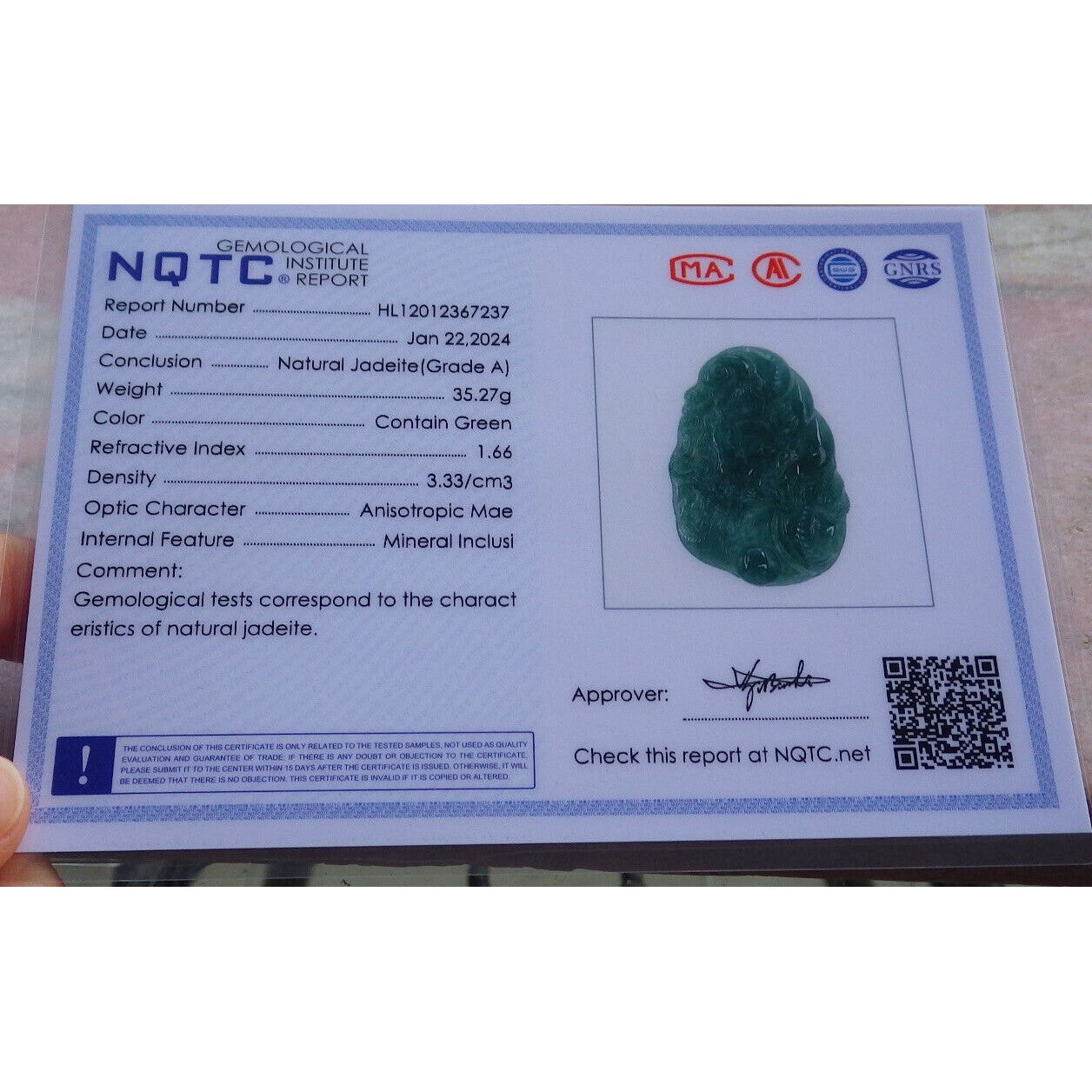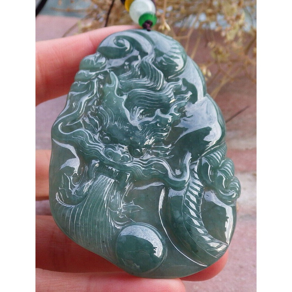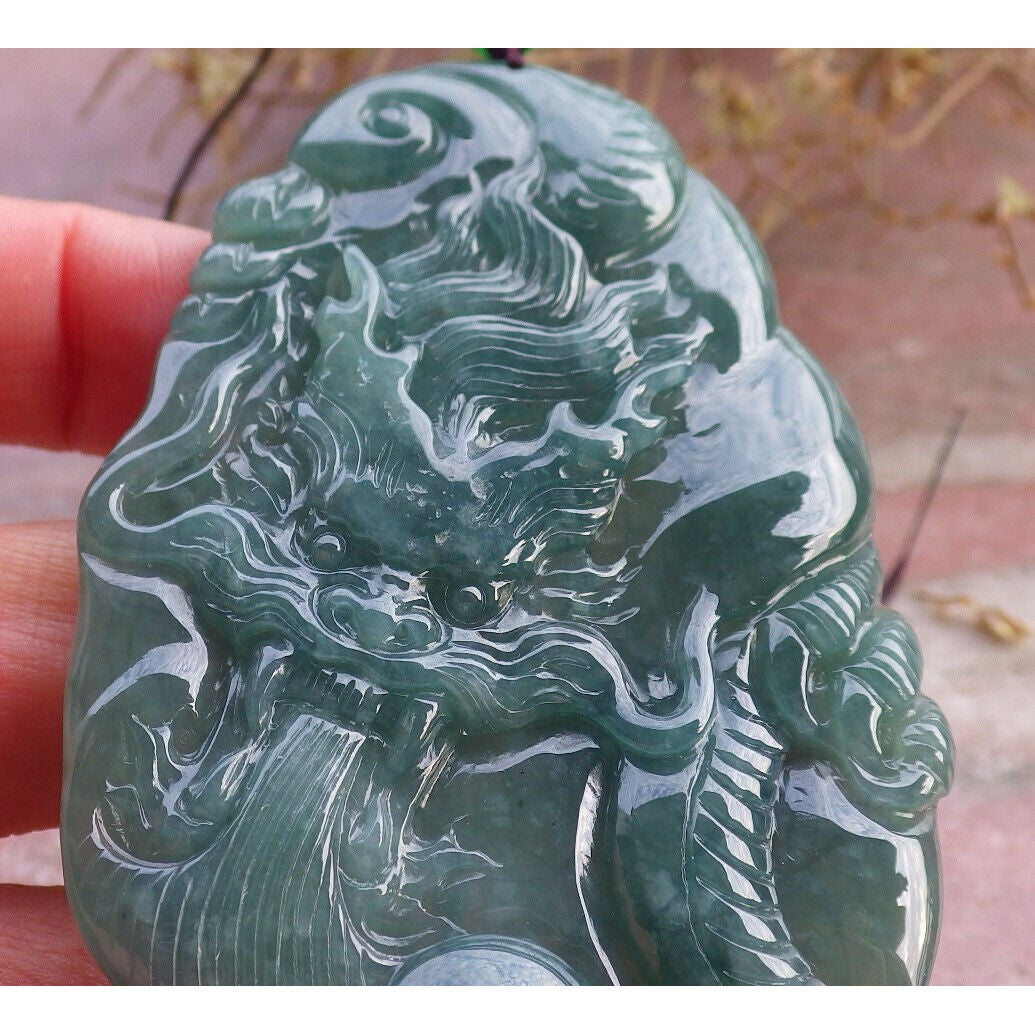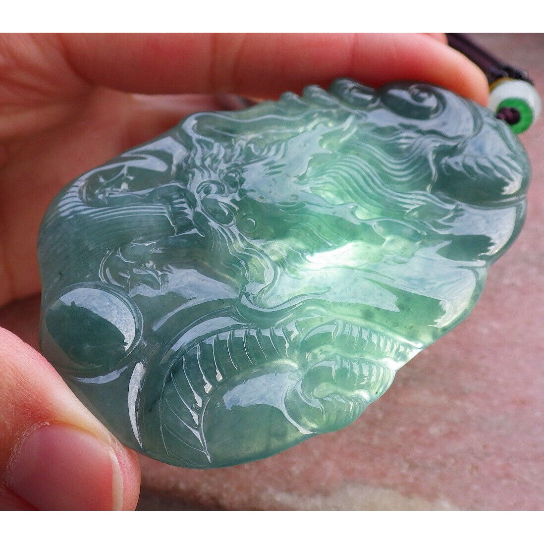 Certified Icy Green Burma Natural A Jade Jadeite Pendant Dragon Necklace