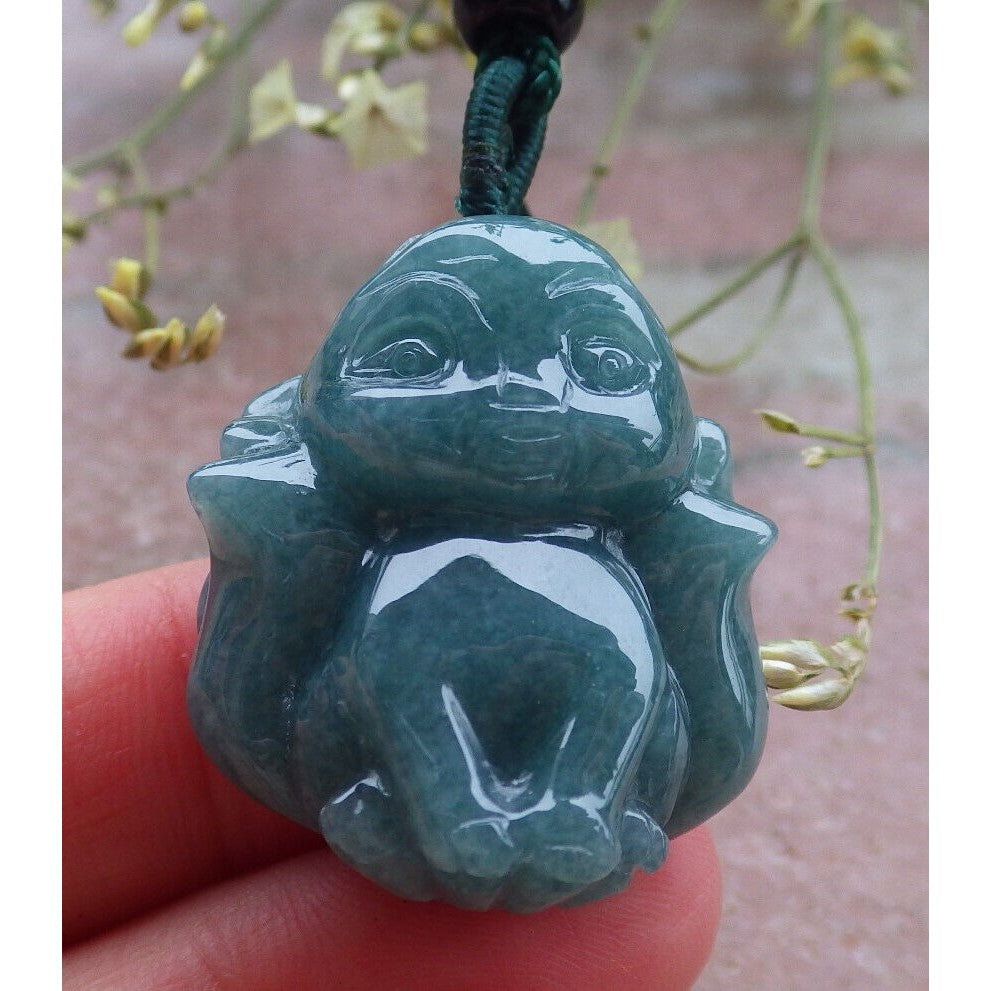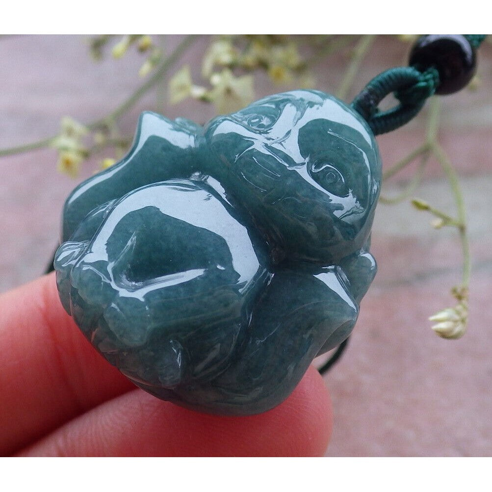 Certified Icy Green Burma Natural A Jade Jadeite Pendant Fox Necklace