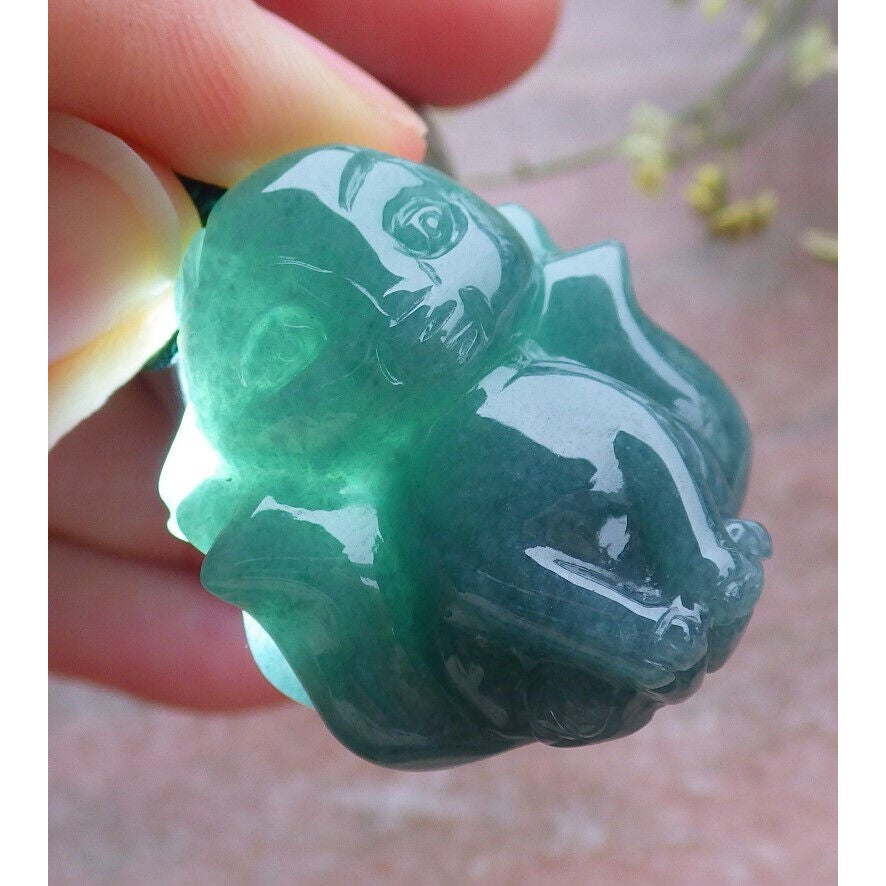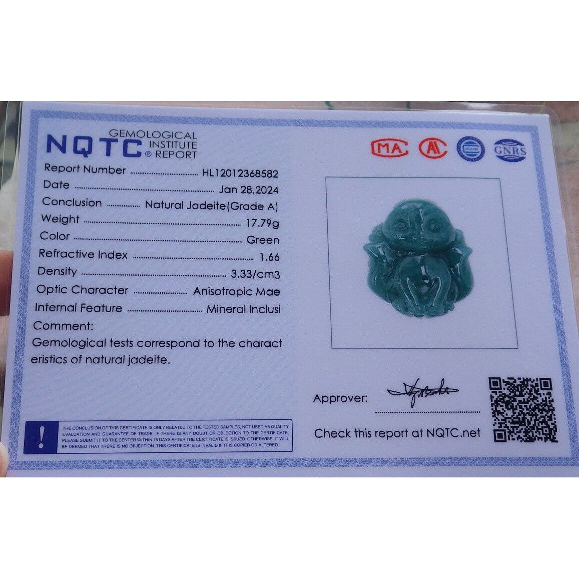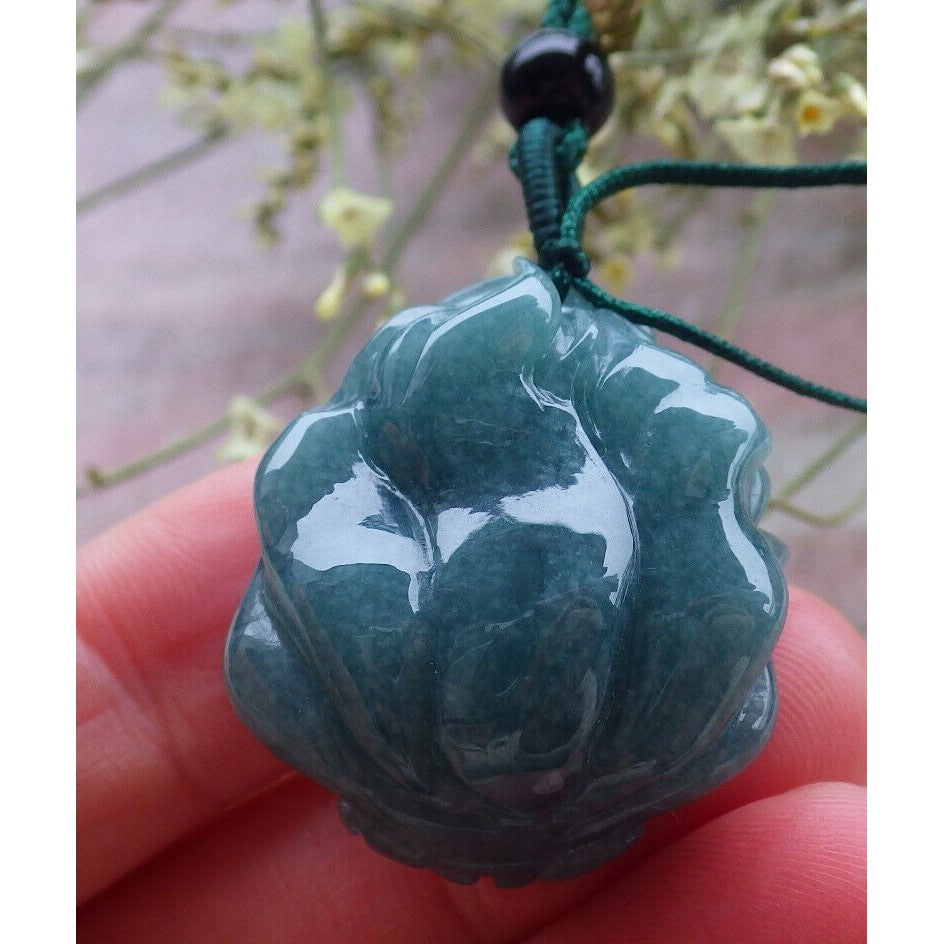 • Certified Icy Green Burma Natural A Jade Jadeite Pendant Fox Necklace