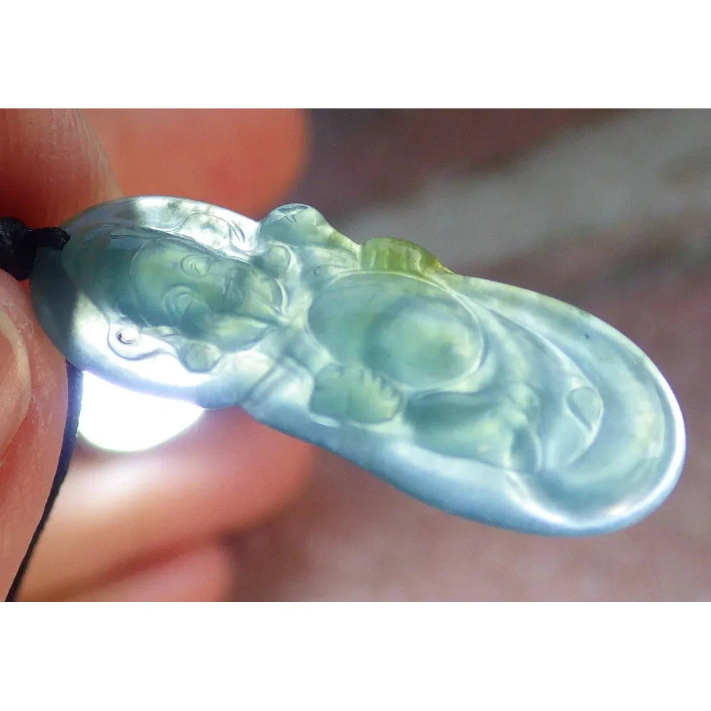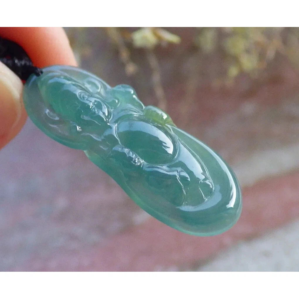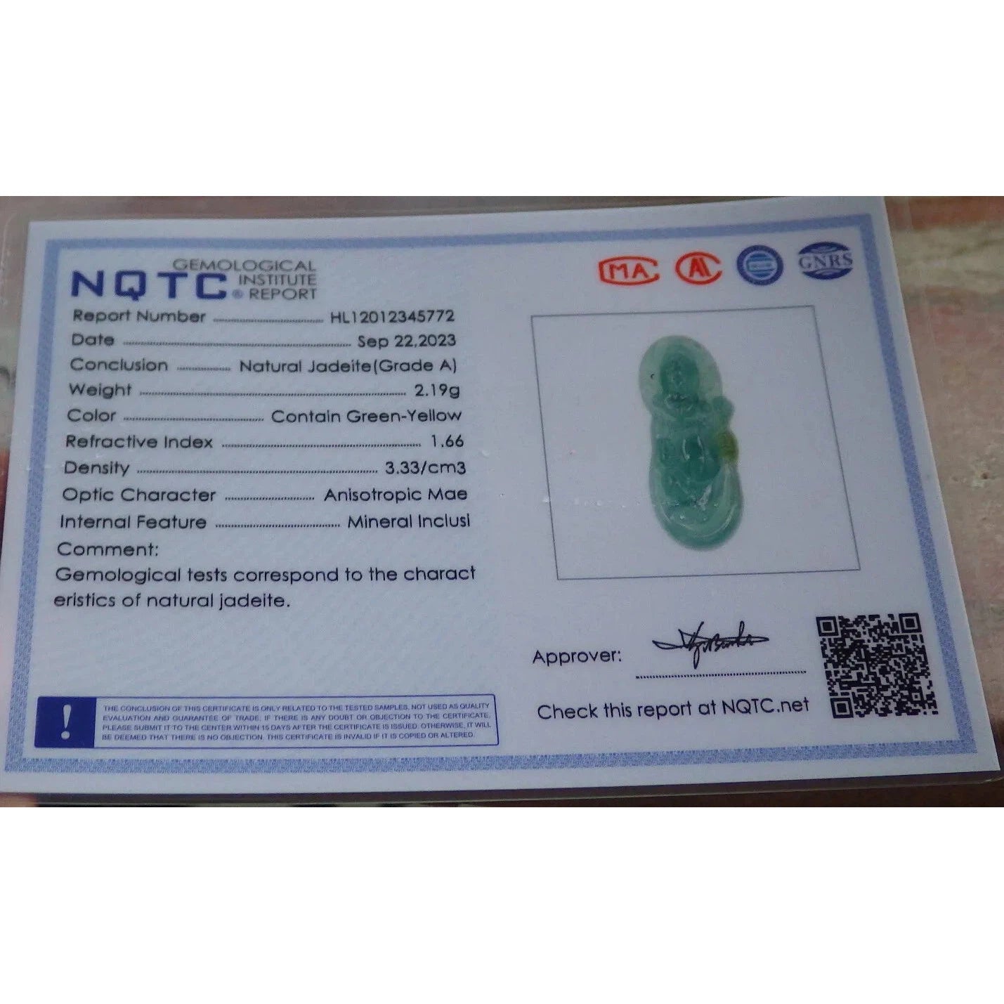 Certified Icy Green Burma Natural A Jade Jadeite Pendant Money God
