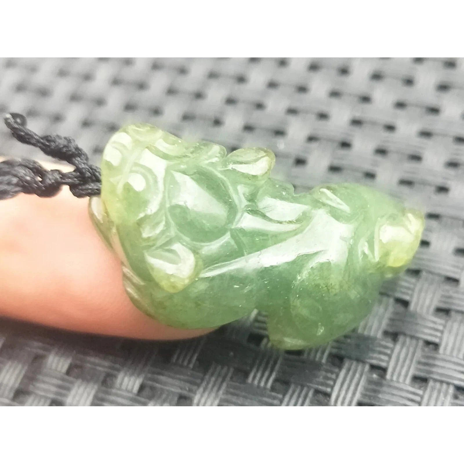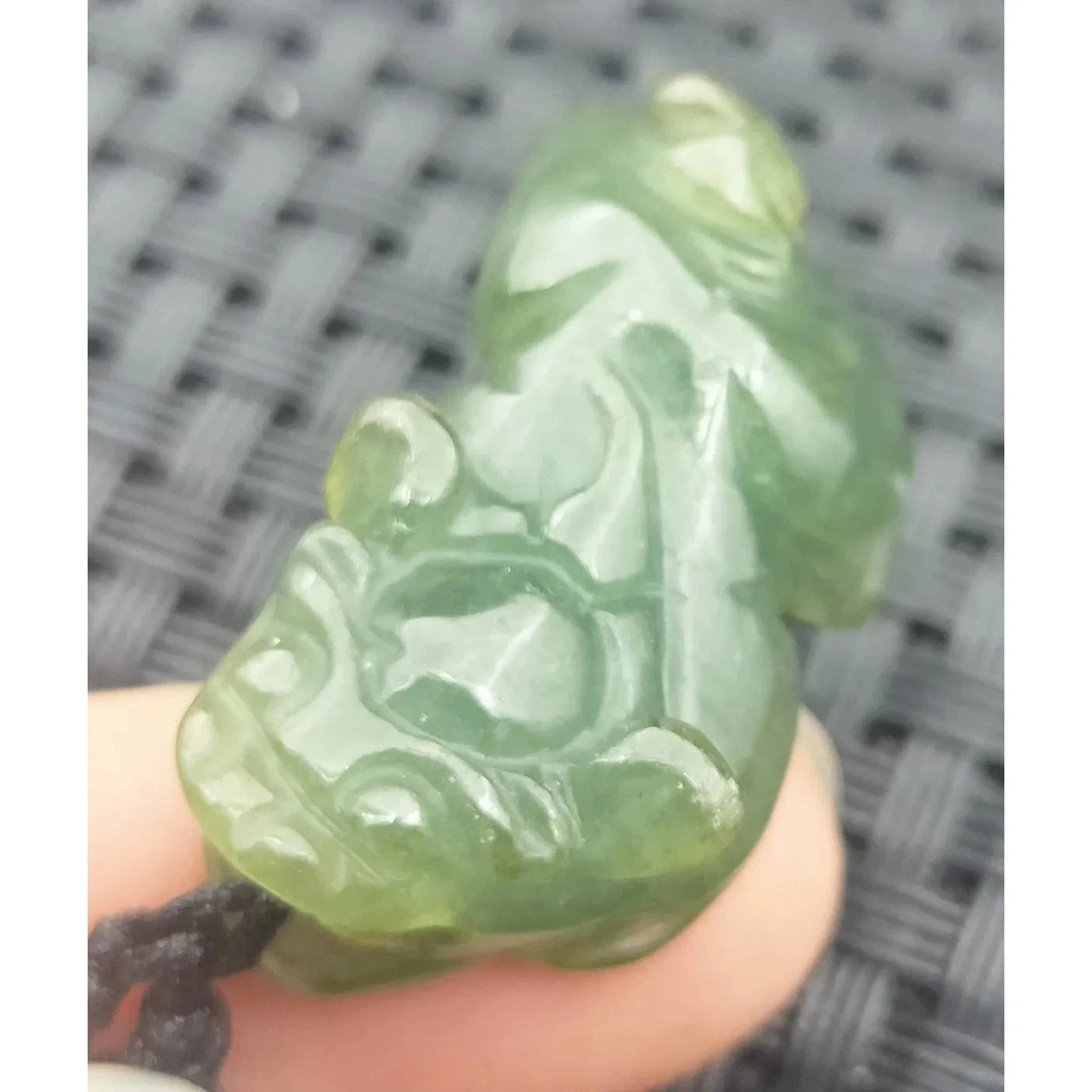 Certified Icy Green Natural A Jade Jadeite Carved Dragon Pi Xiu Coin Pendant