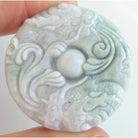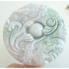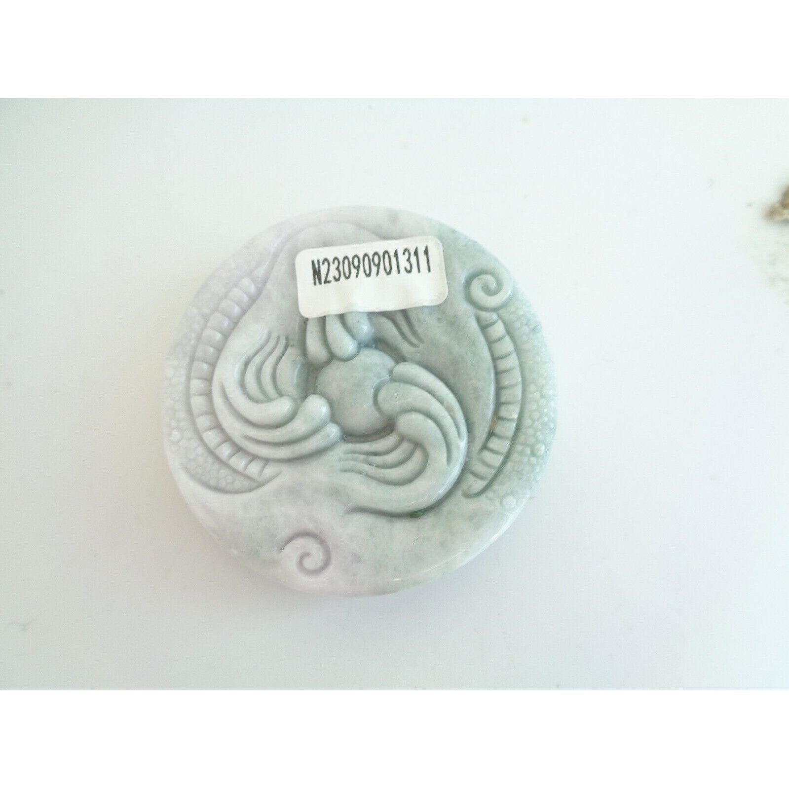 Certified Lavender Green Natural A Jade Jadeite Carved 2 Dragons Bead Pendant