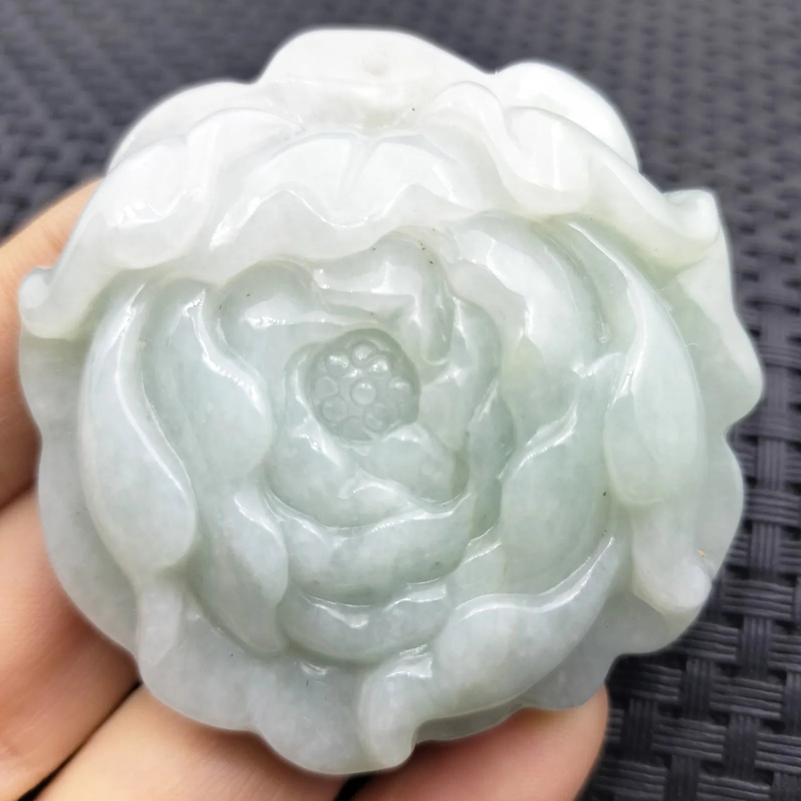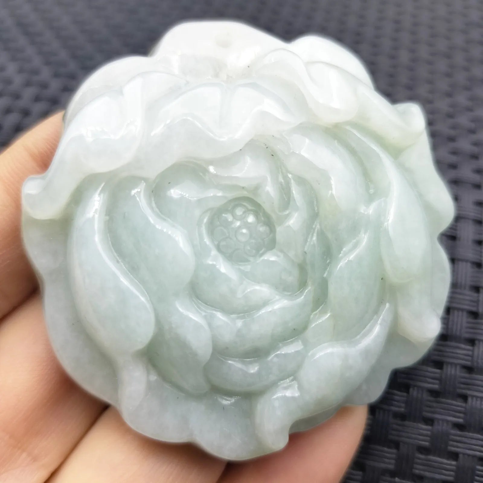 Certified Lavender Green Natural Type A Jade Jadeite Carved Flower Pendant