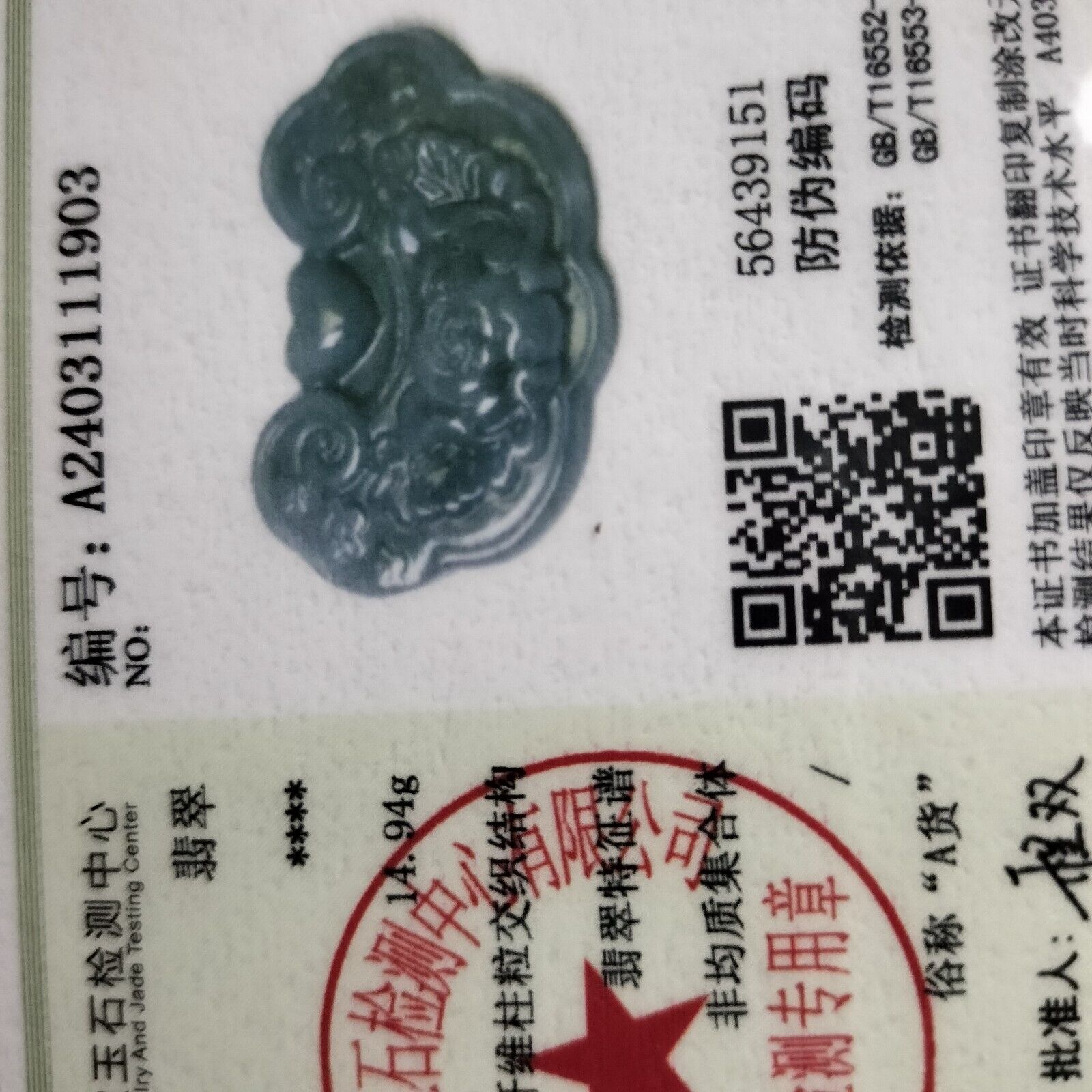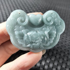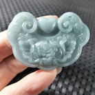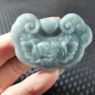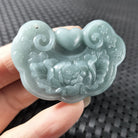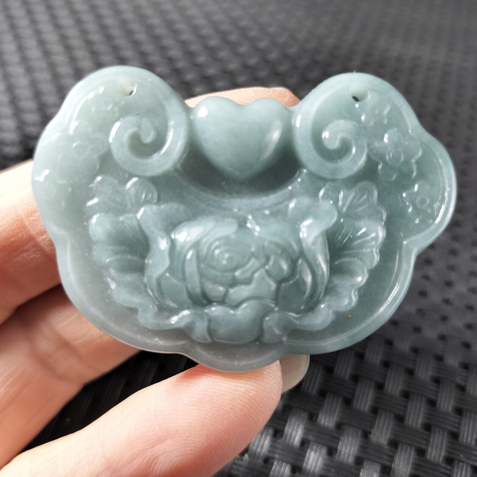 Certified Blue Green Natural Type A Jade Jadeite Carved Flower Love Lock Pendant