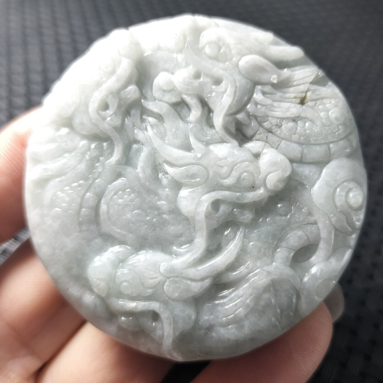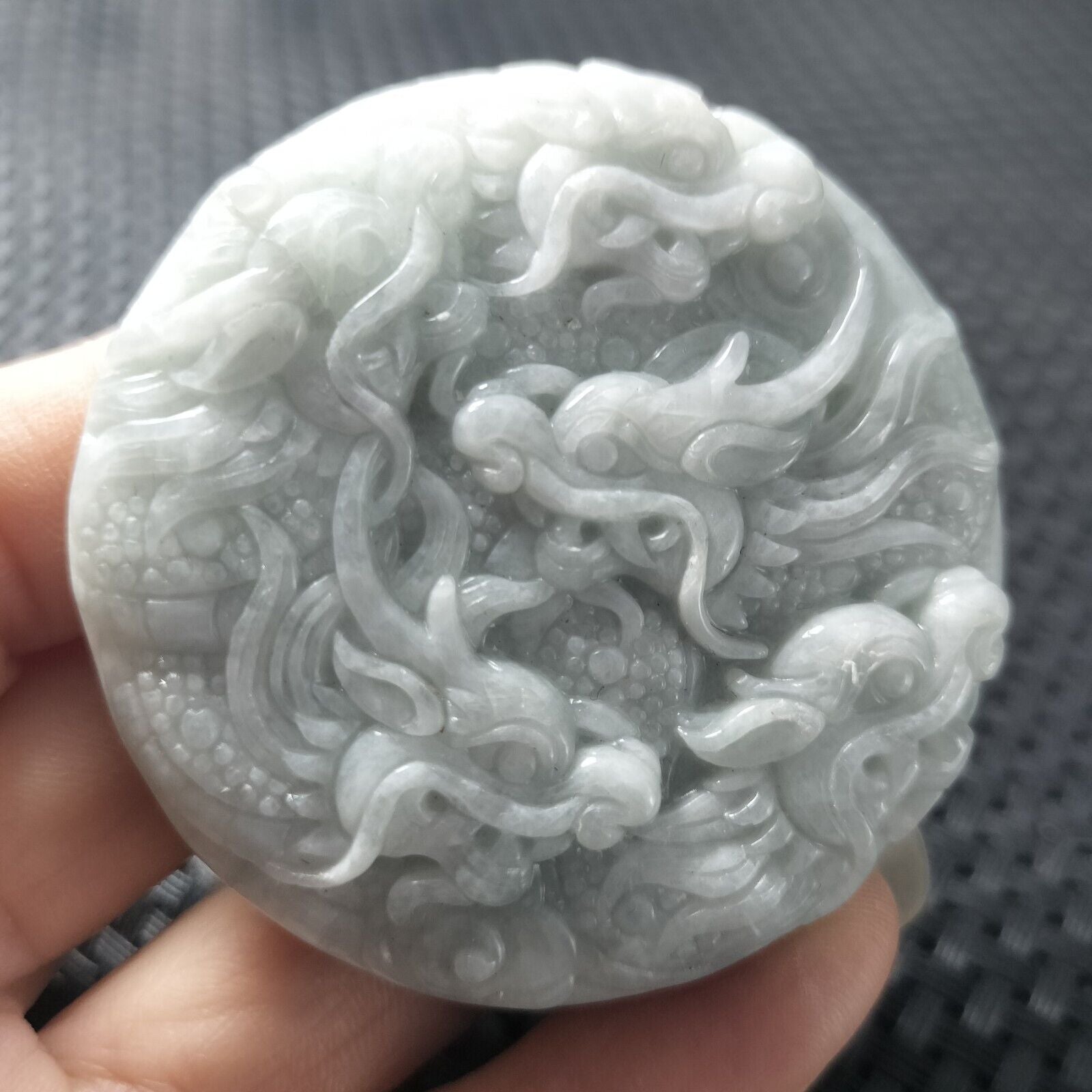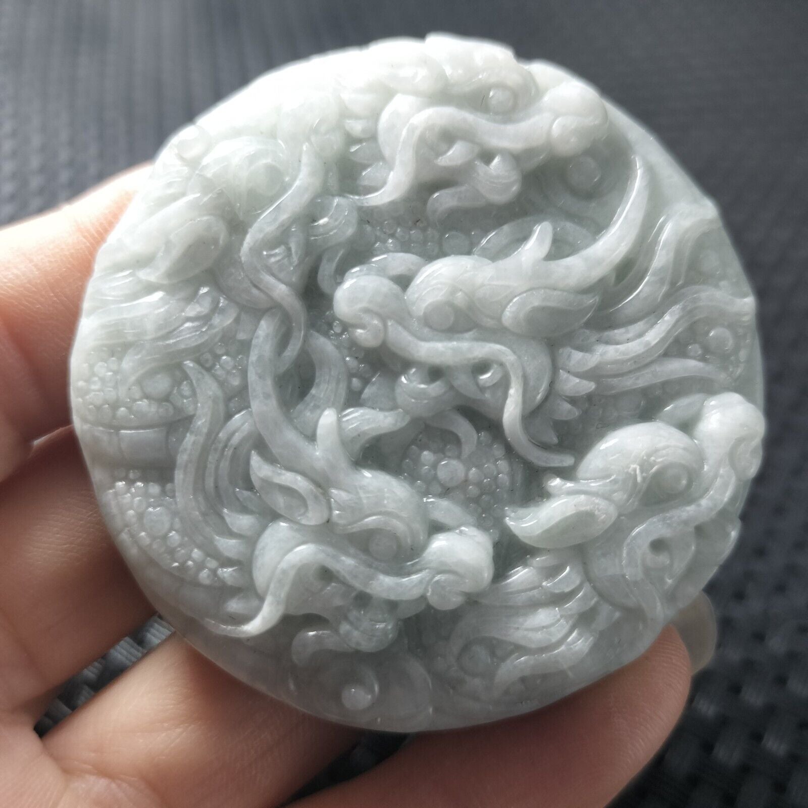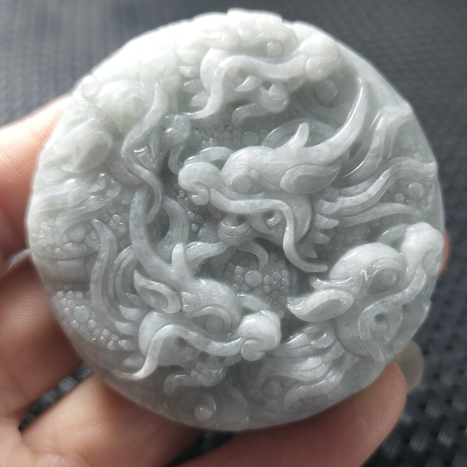 Certified Lavender Natural Type A Jade Jadeite Carved Nine Dragons Pendant Necklace