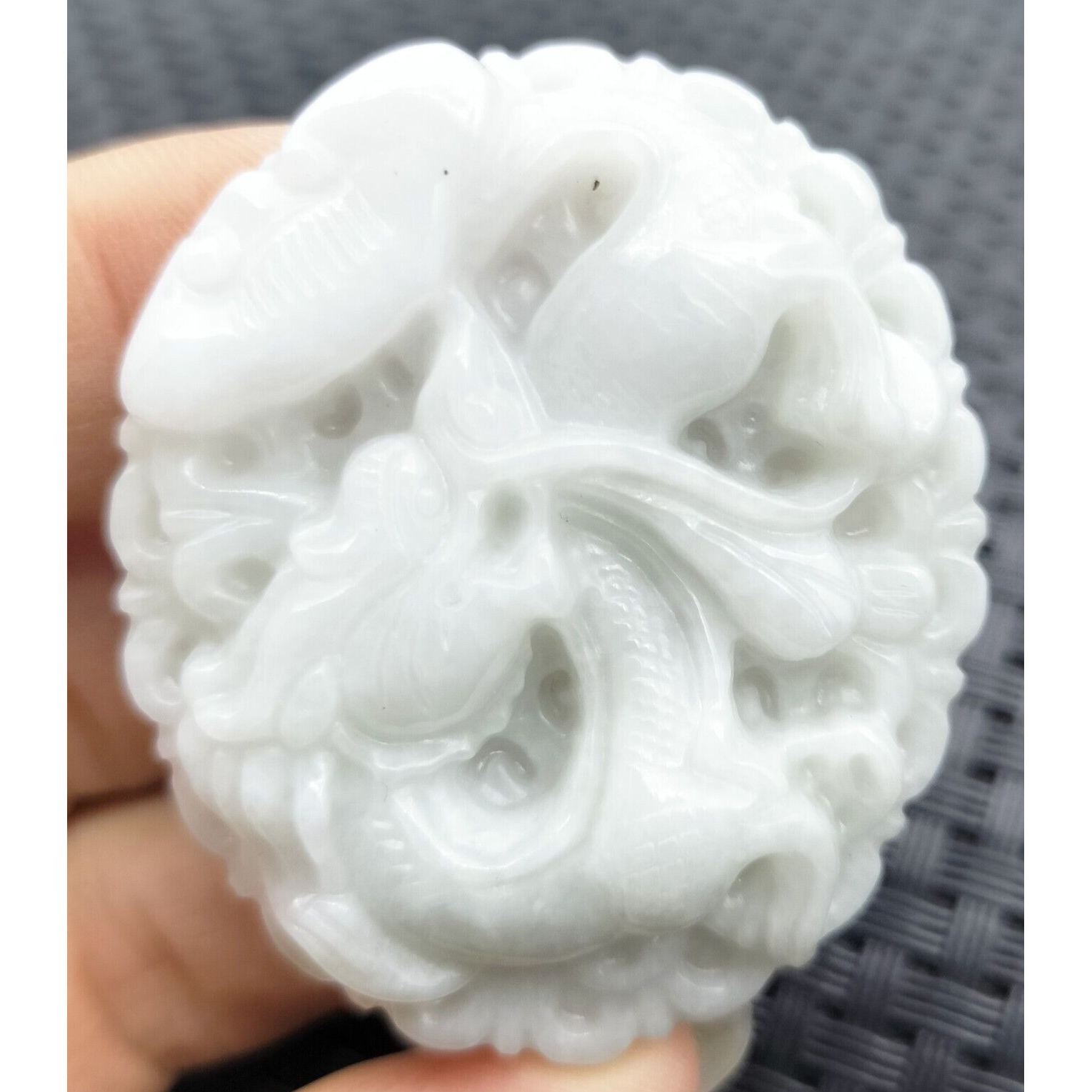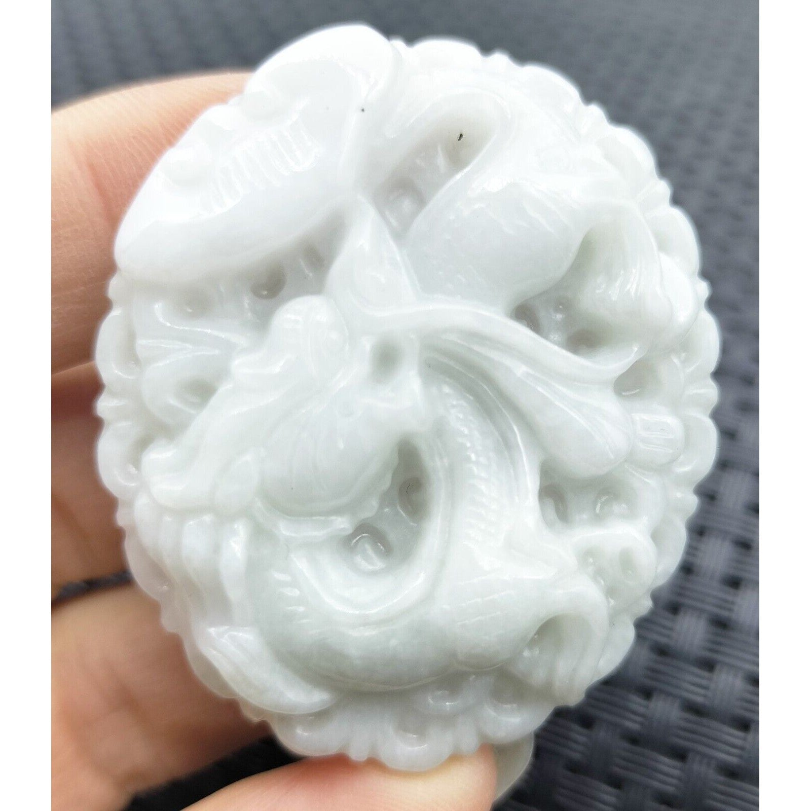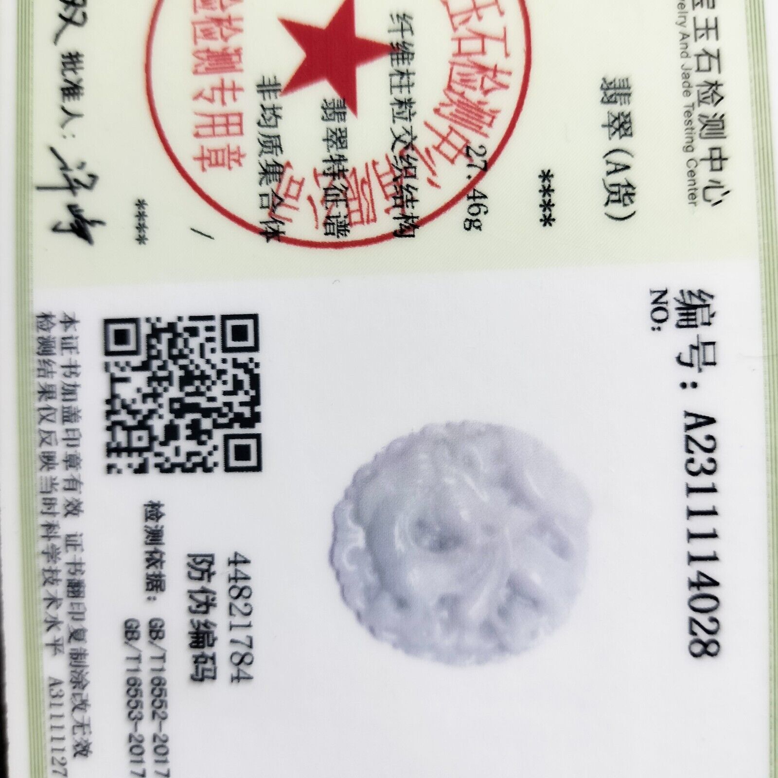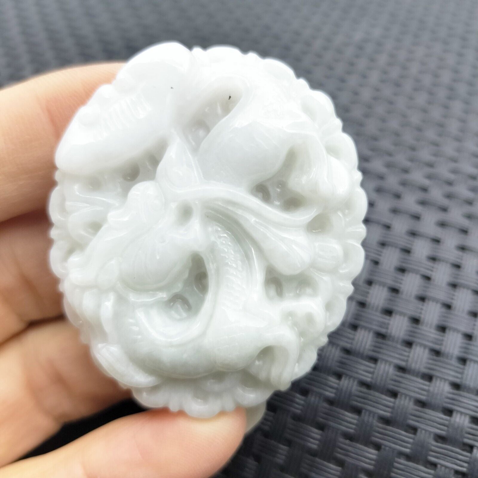 Certified Lavender Natural Type A Jade Jadeite Hand-Carved Dragon with a Ruyi Pendant Necklace
