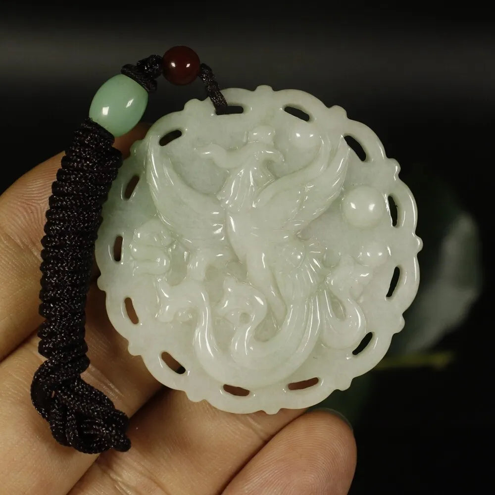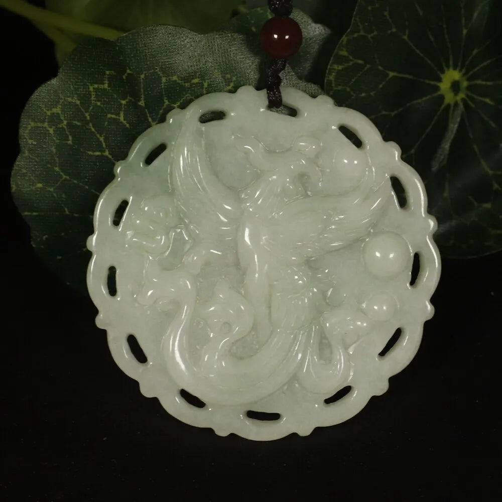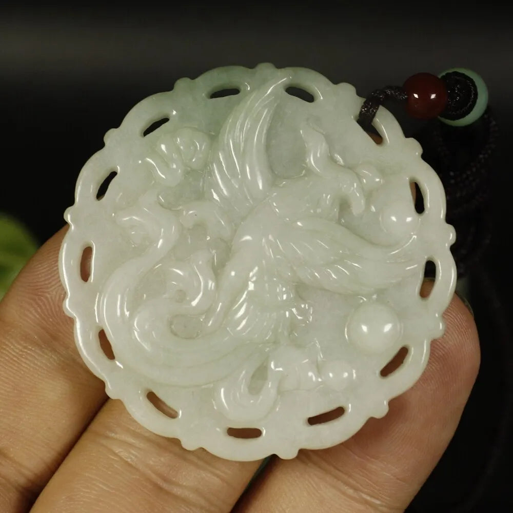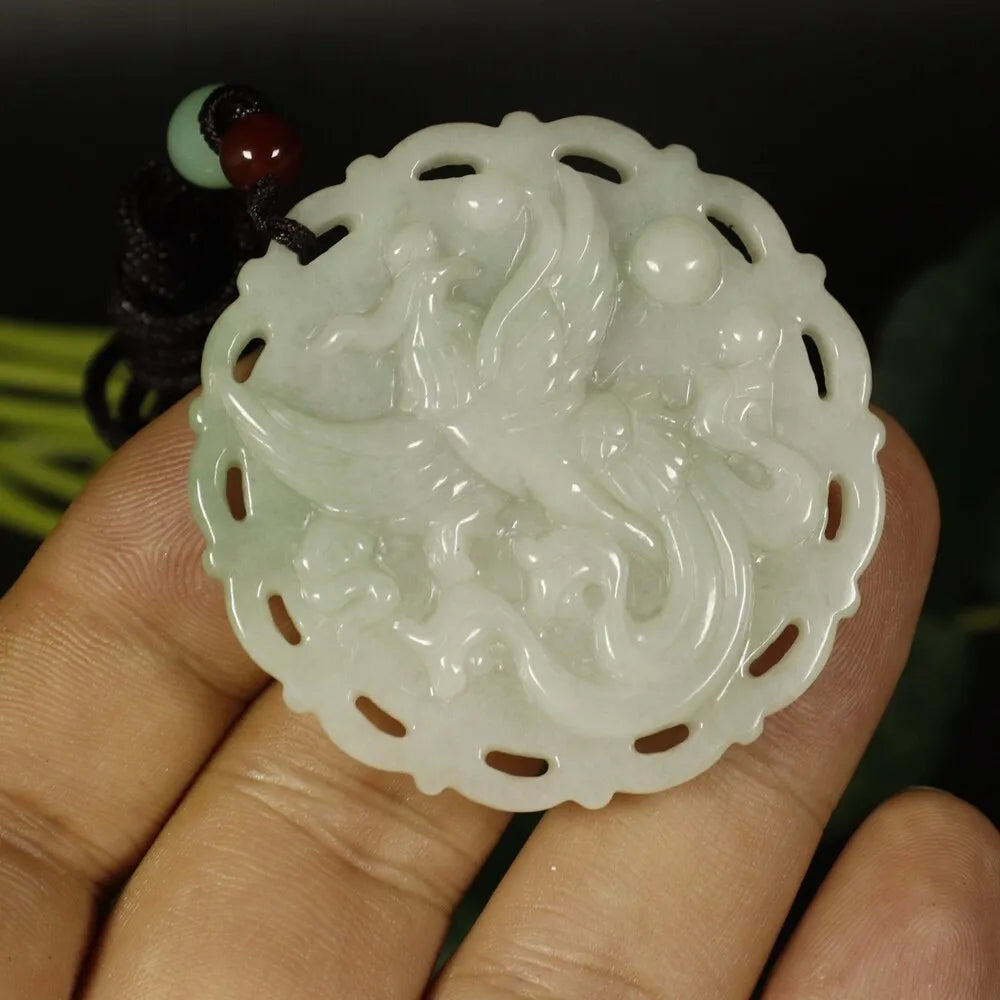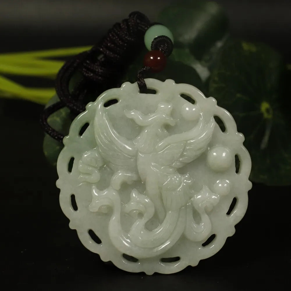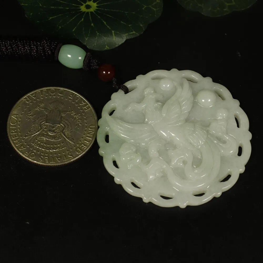 Certified Light Green 100% Natural A Jade Jadeite Pendant Phoenix