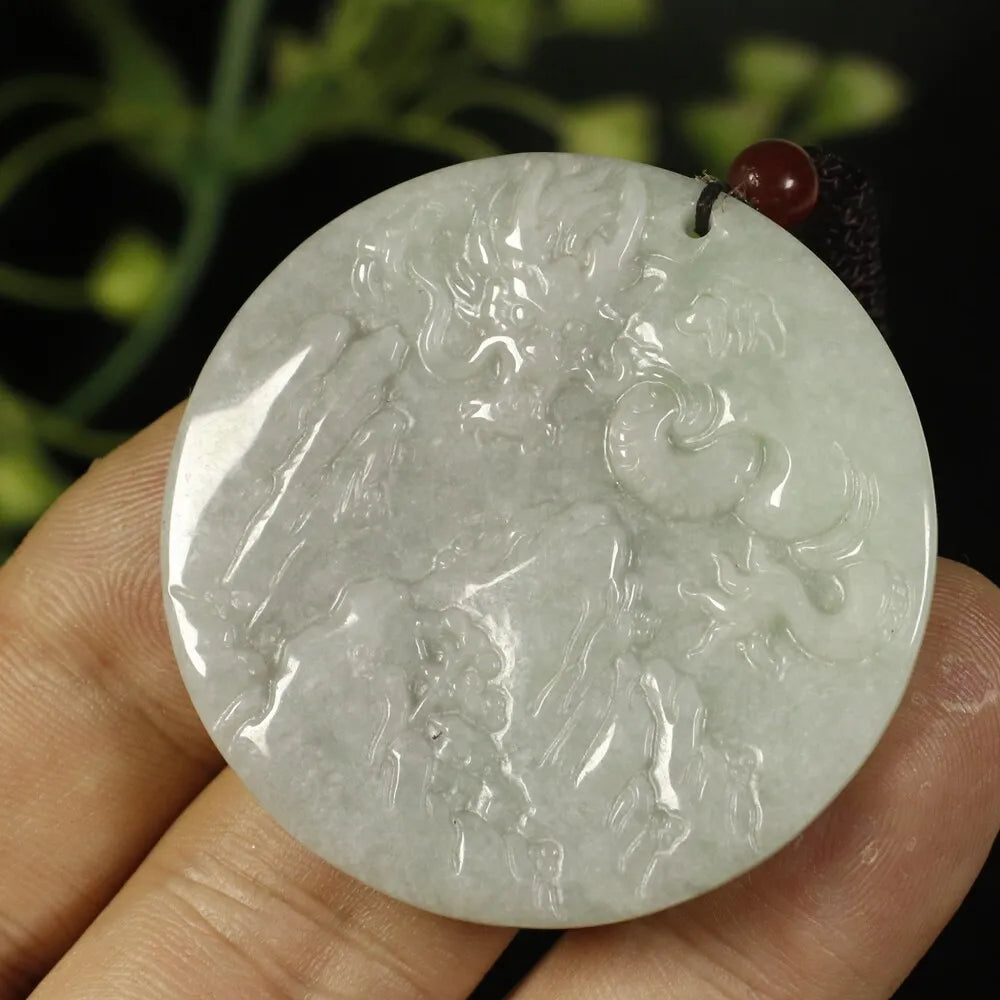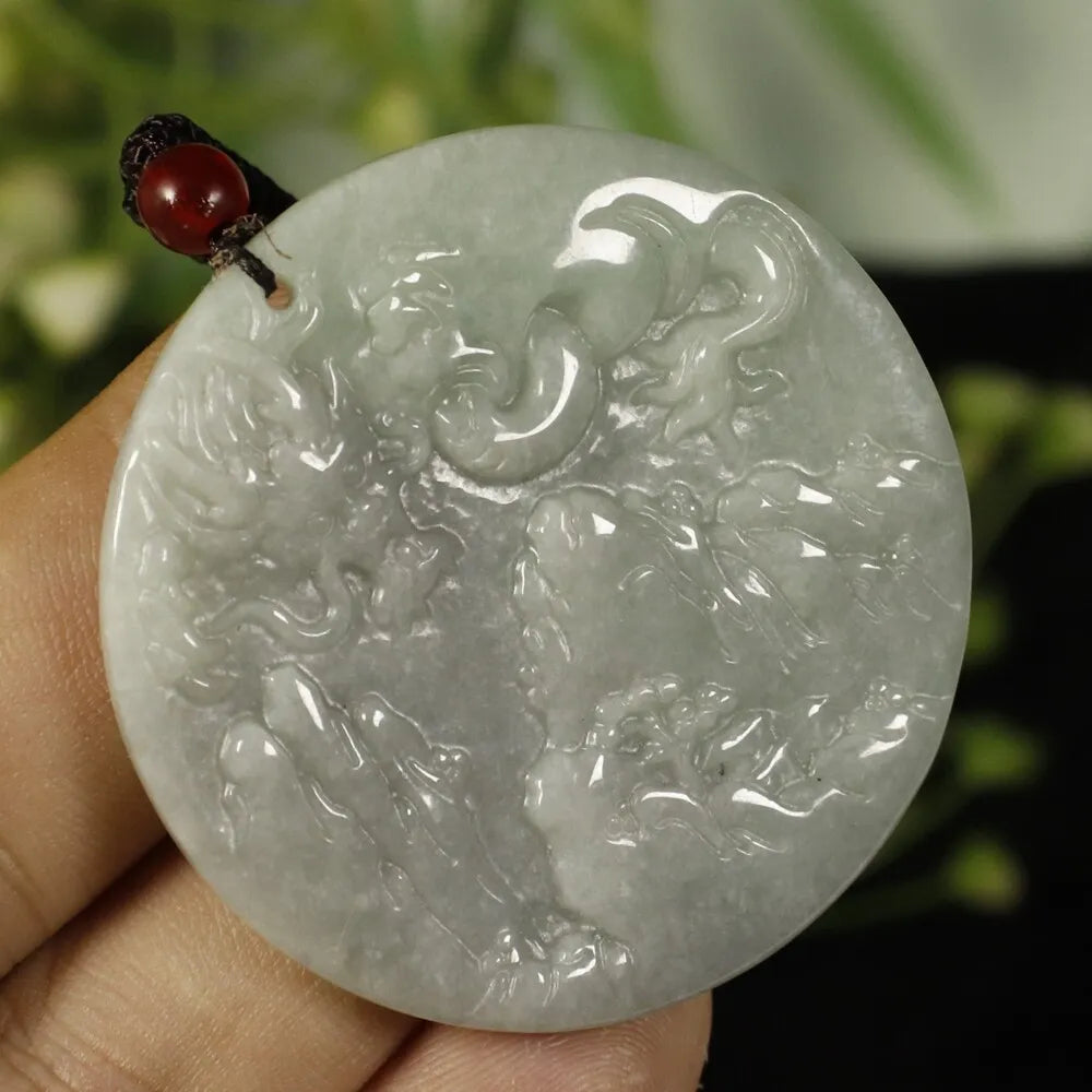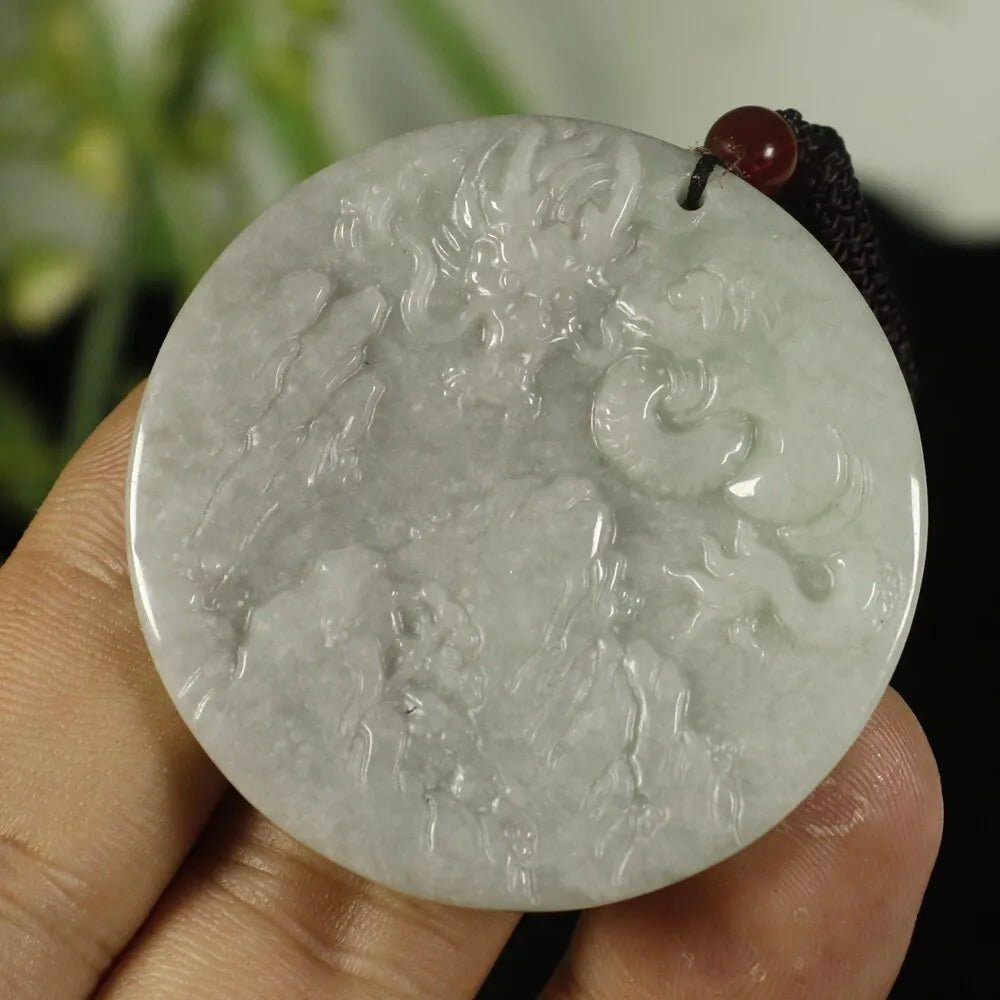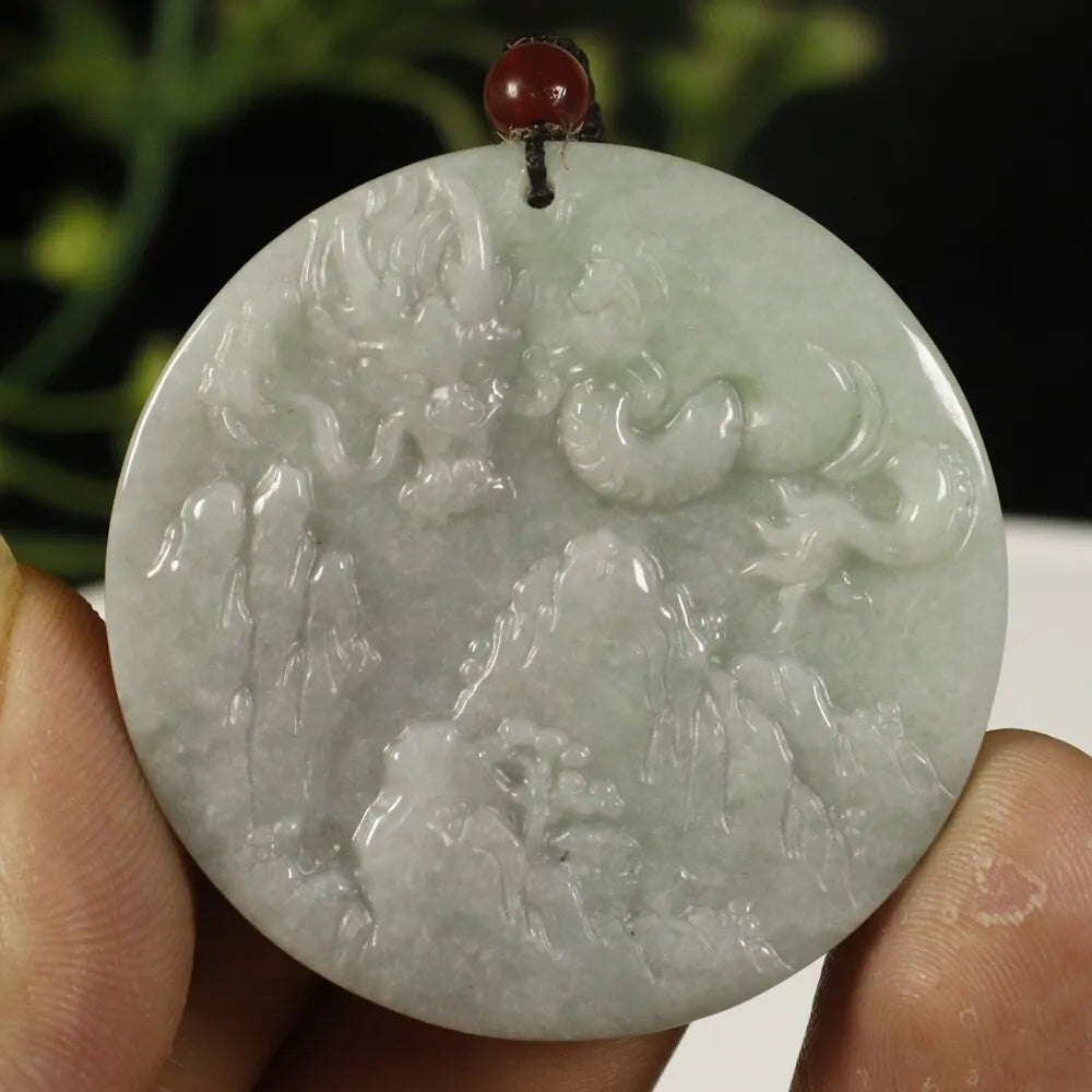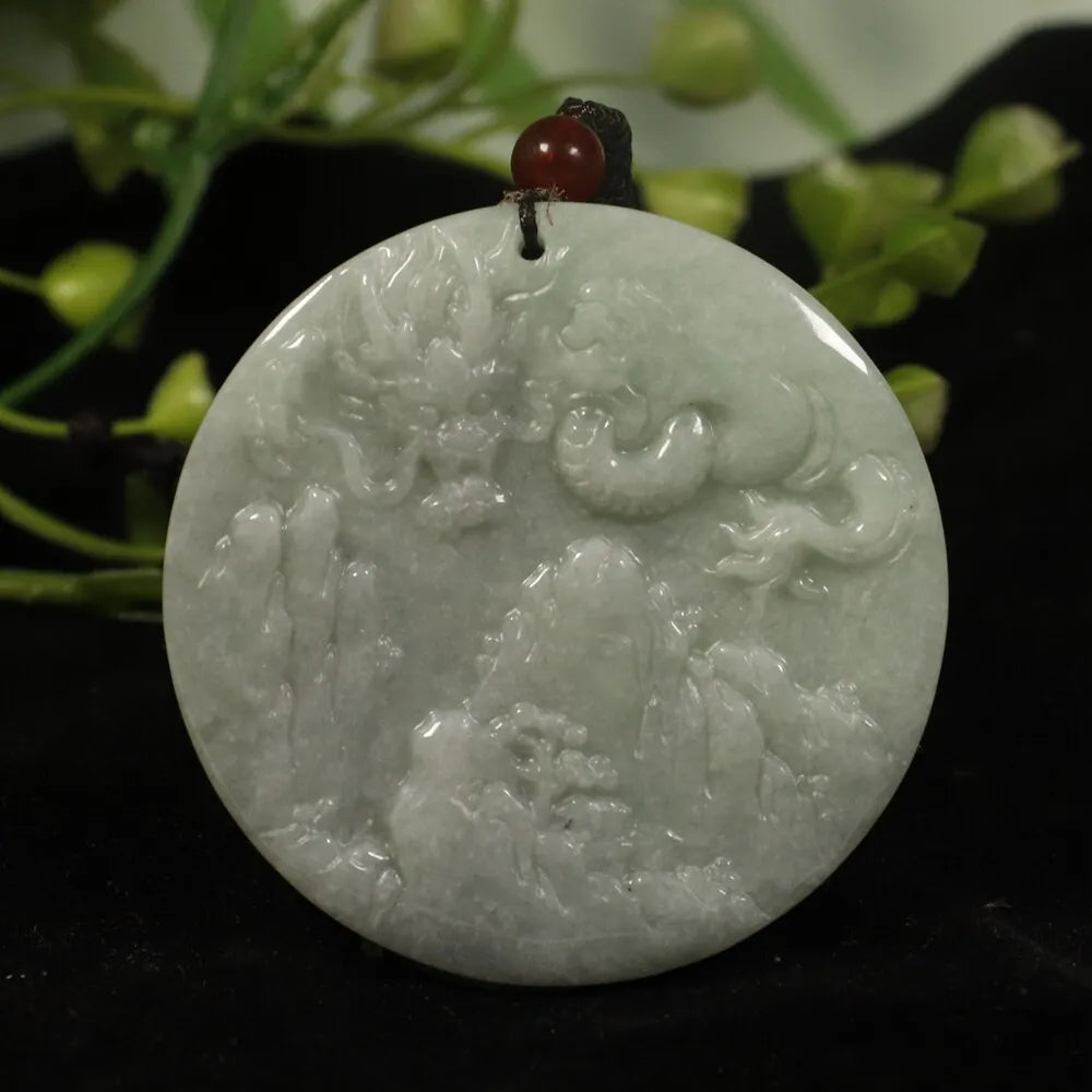 Certified Light Green 100% Natural A Jadeite Jade Pendant Dragon Landscape