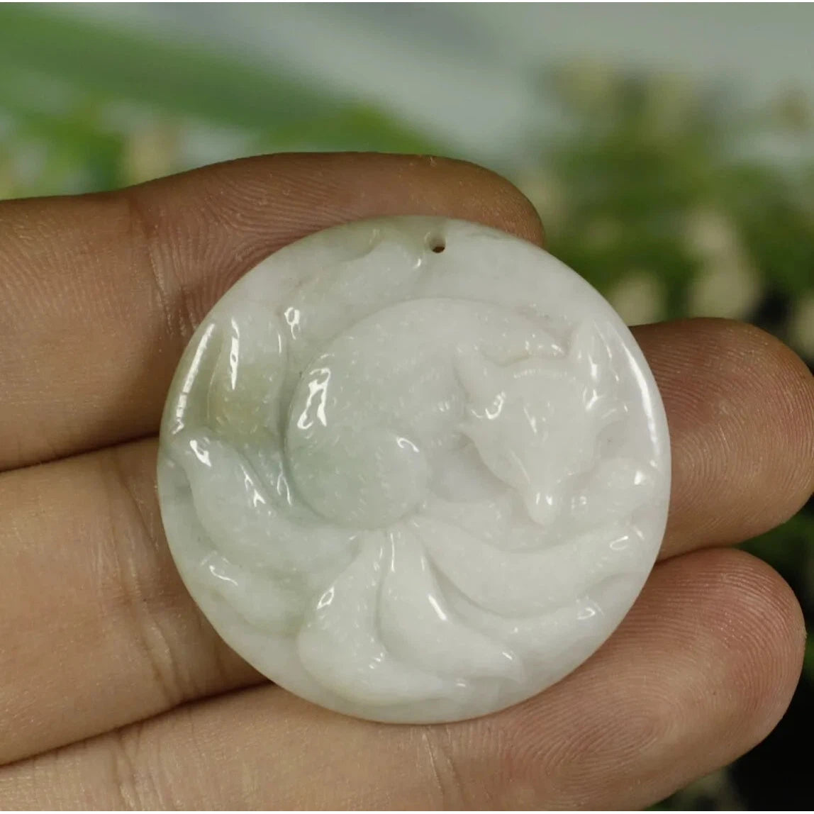 Certified Light Green 100% Natural A Jadeite Jade Pendant Fox