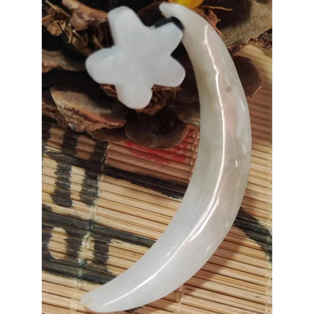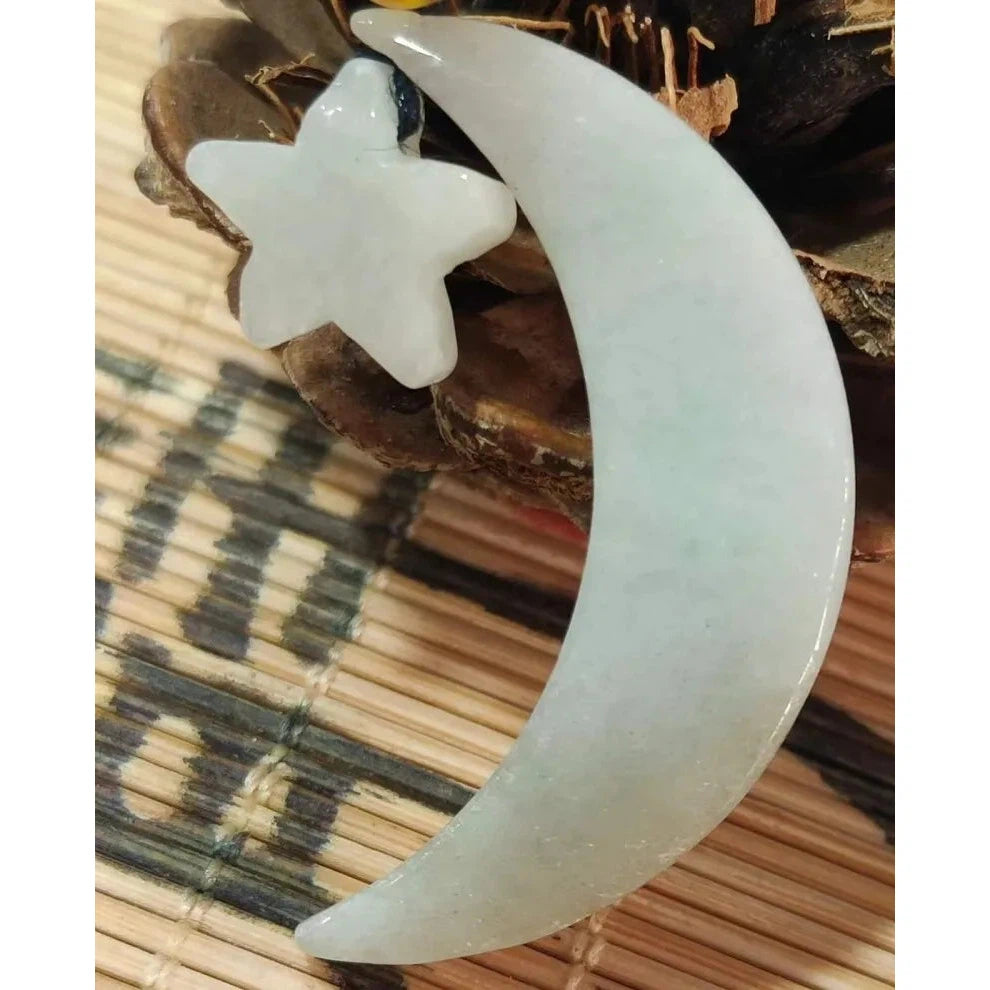 Certified Light Green Natural A Jade Jadeite China Style Moon & Star Pendant