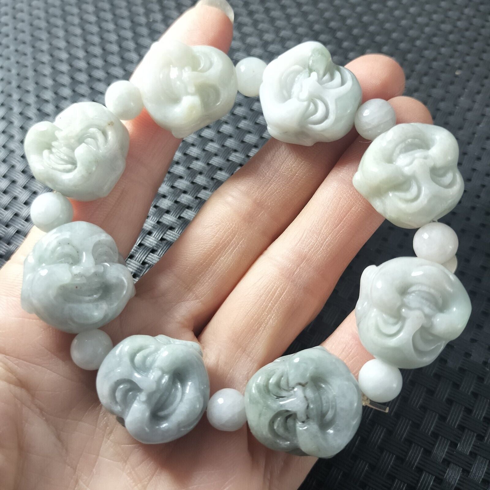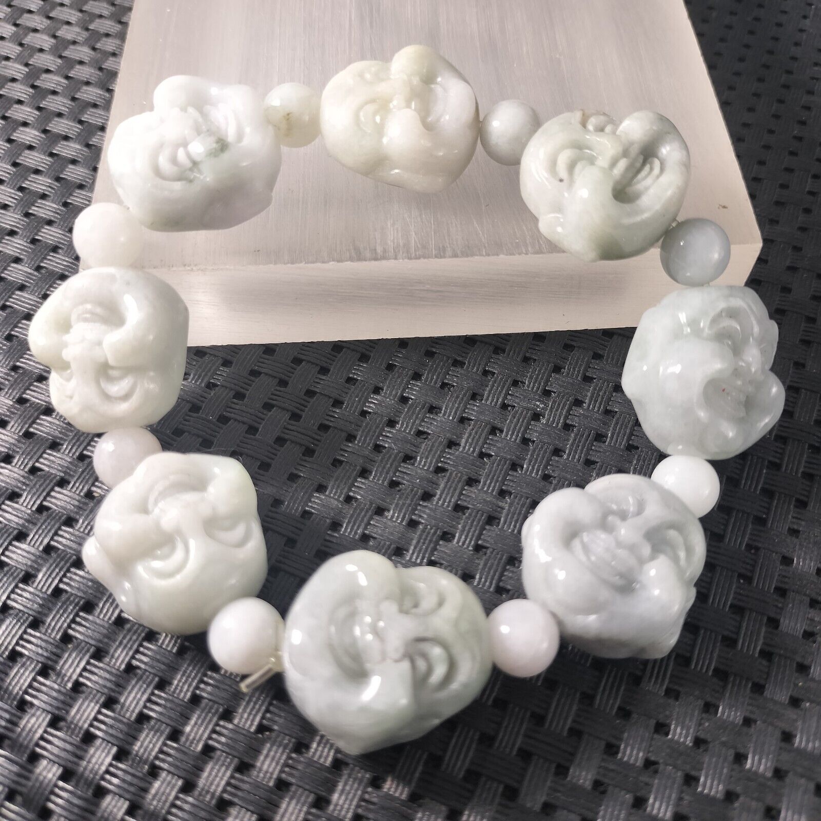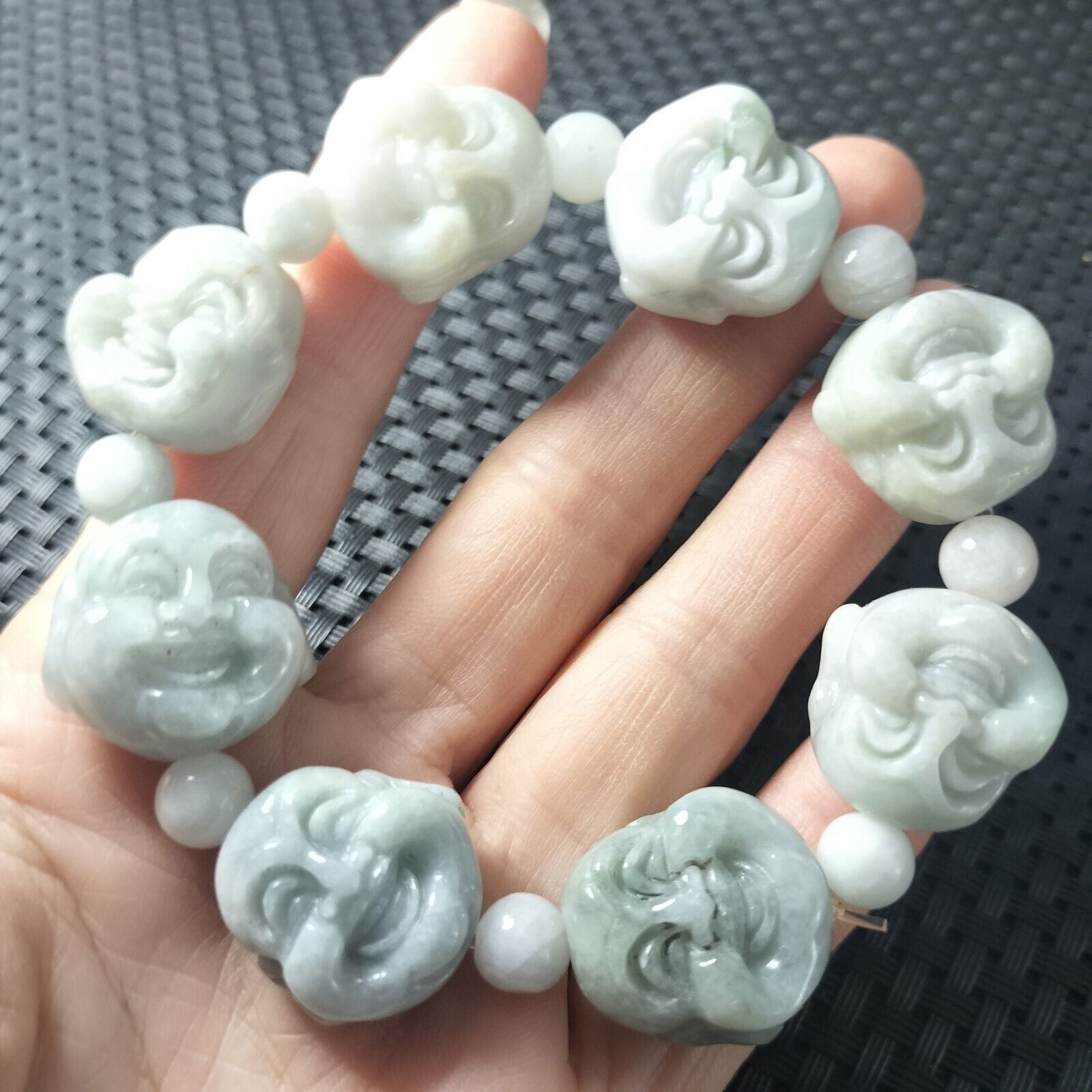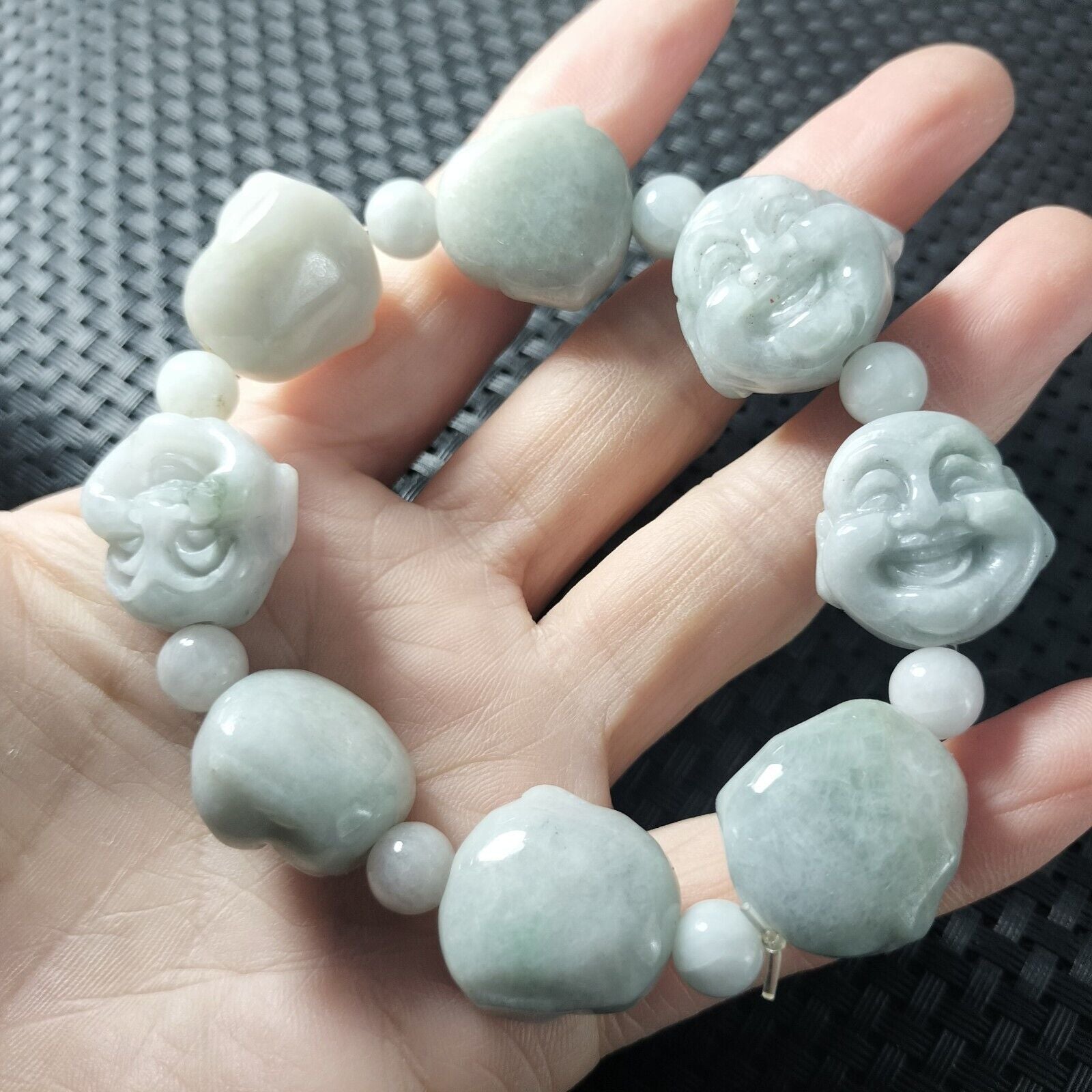 Certified Light Green Natural A Jadeite Carved Buddha Bead Stretchy Bracelet