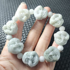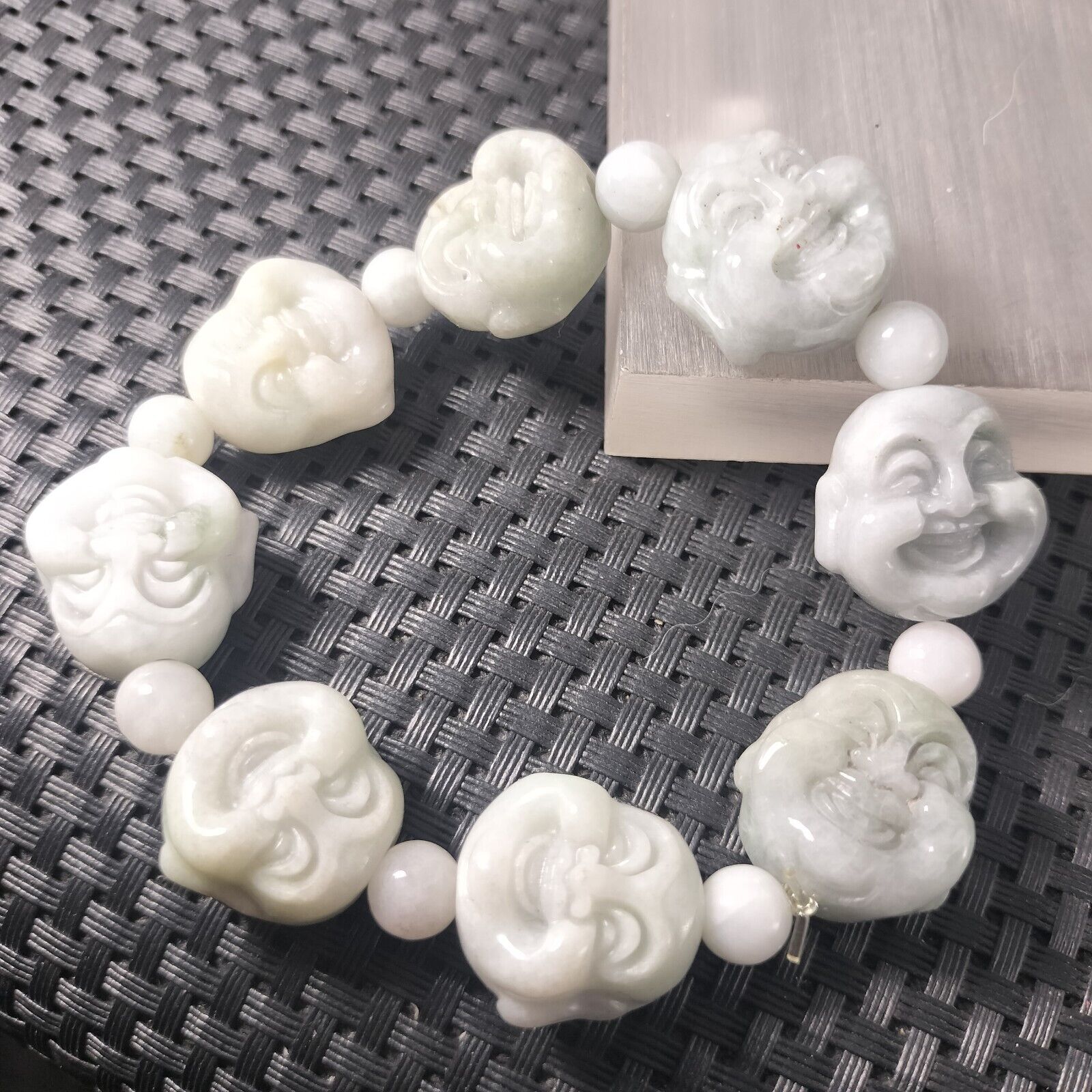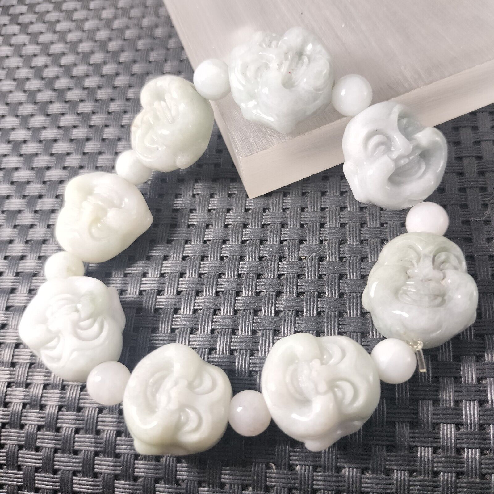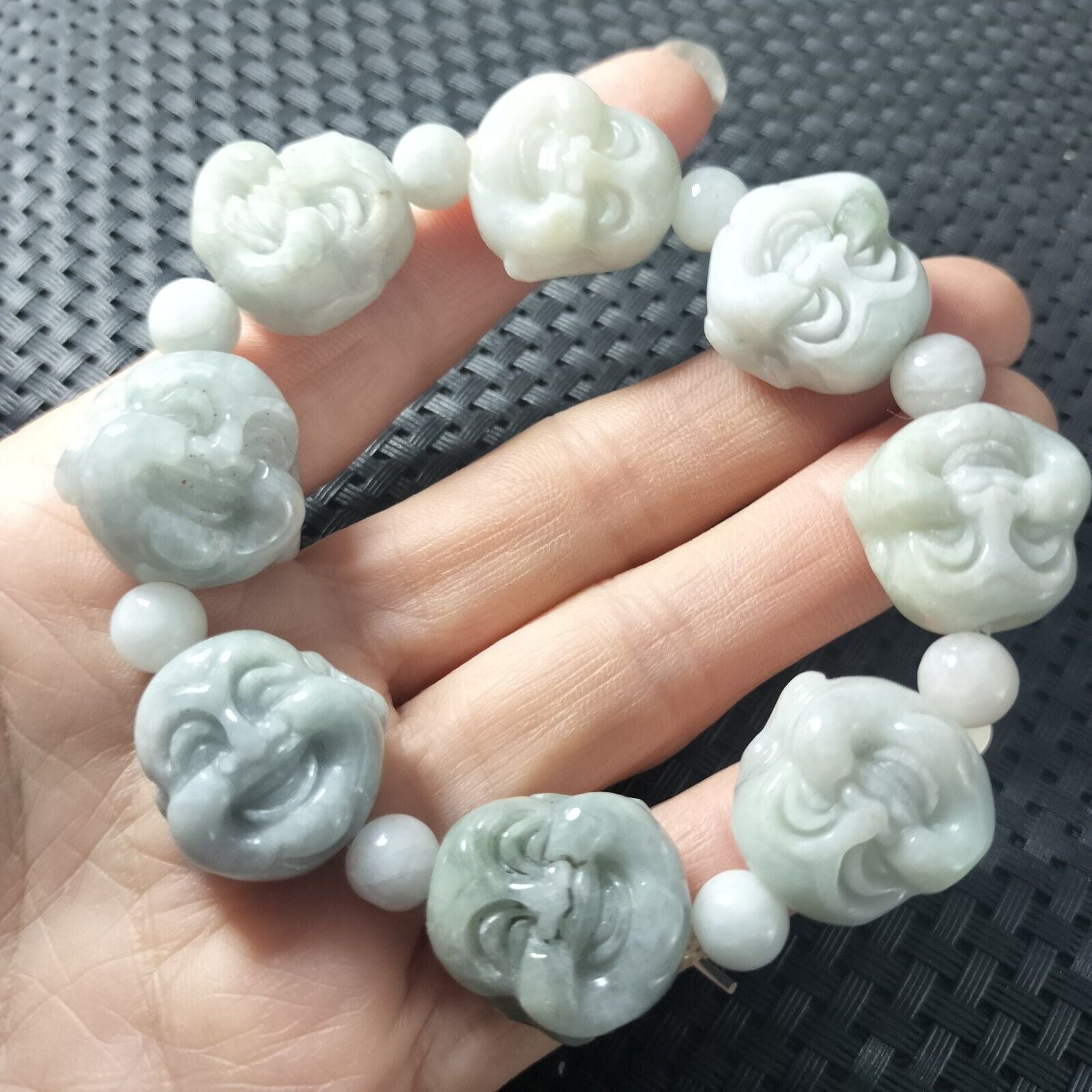 Certified Light Green Natural A Jadeite Carved Buddha Bead Stretchy Bracelet