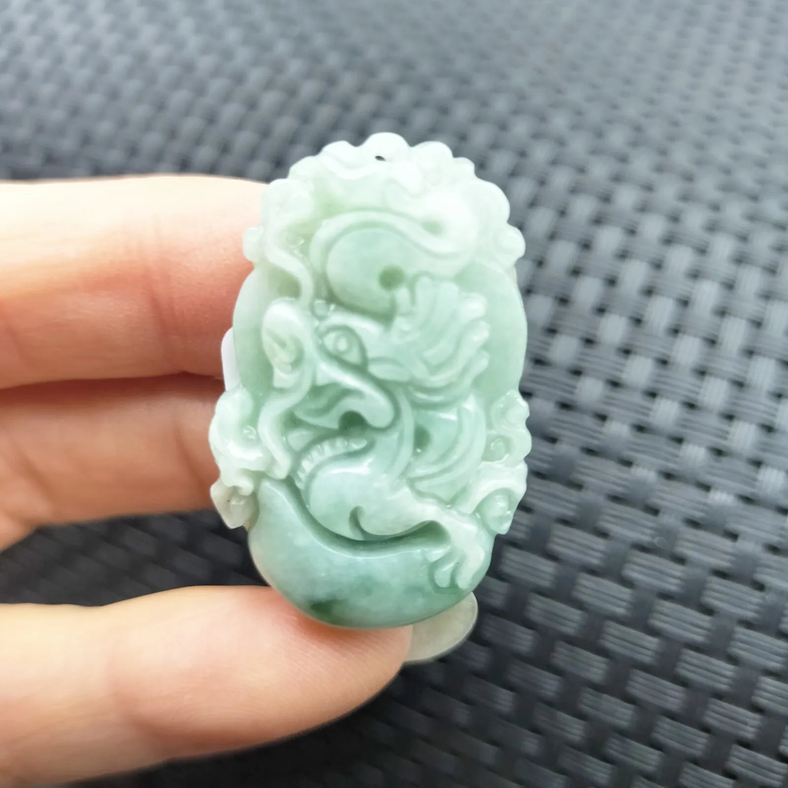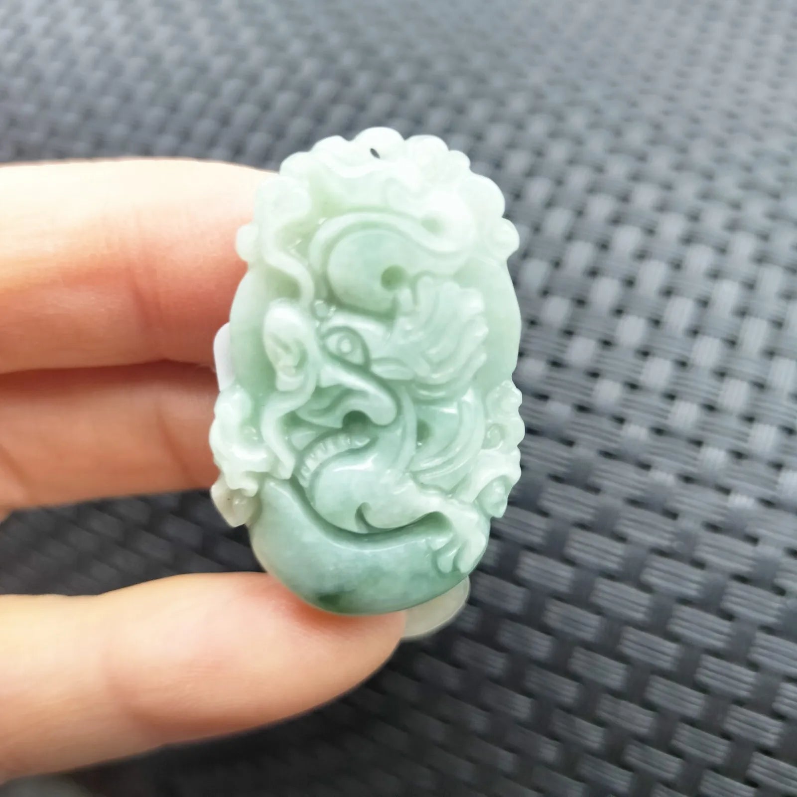 Certified Light Green Natural Type A Jade Jadeite Carved Dragon YuanBao Pendant