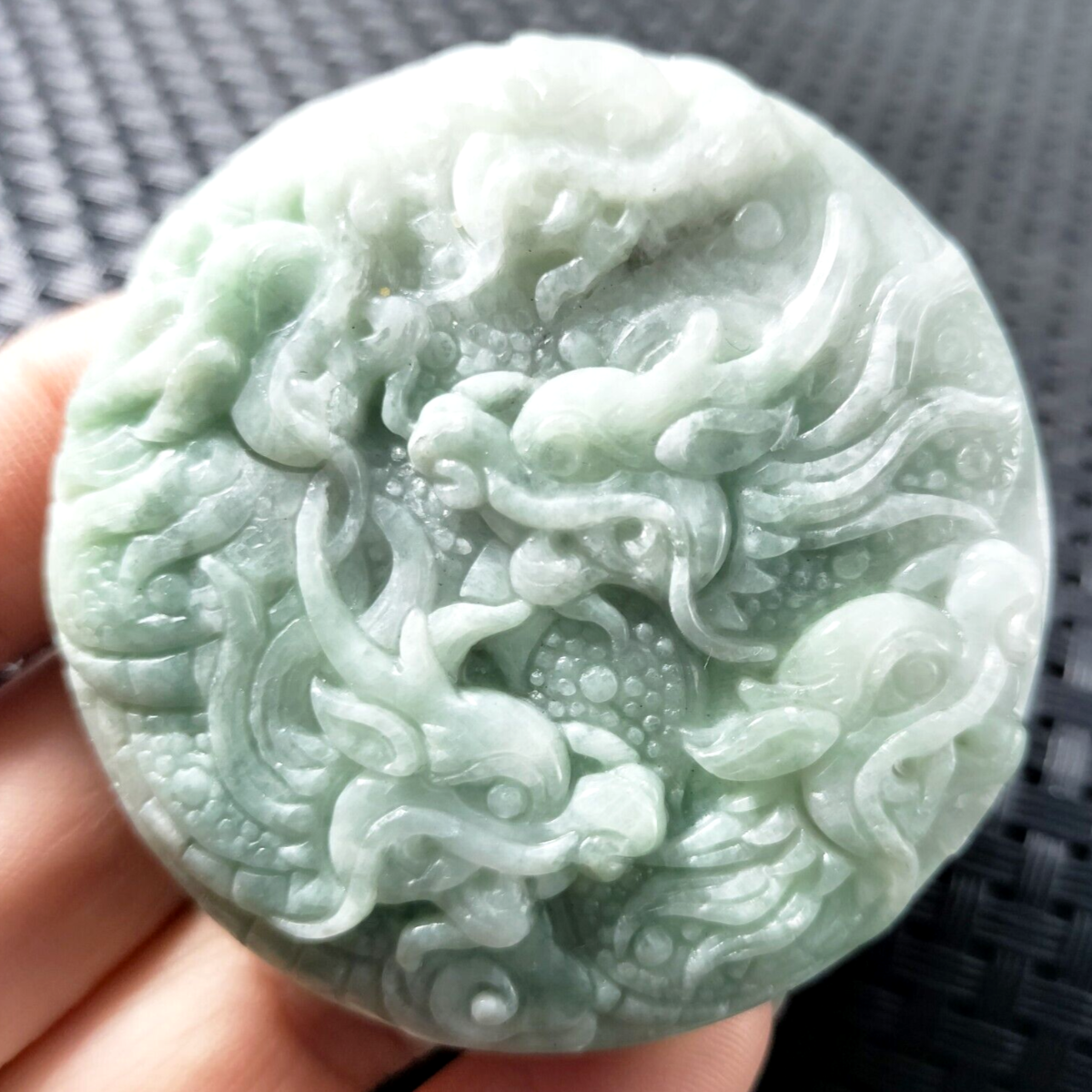 Certified Light Green Natural Type A Jadeite Carved Nine Dragons Pendant