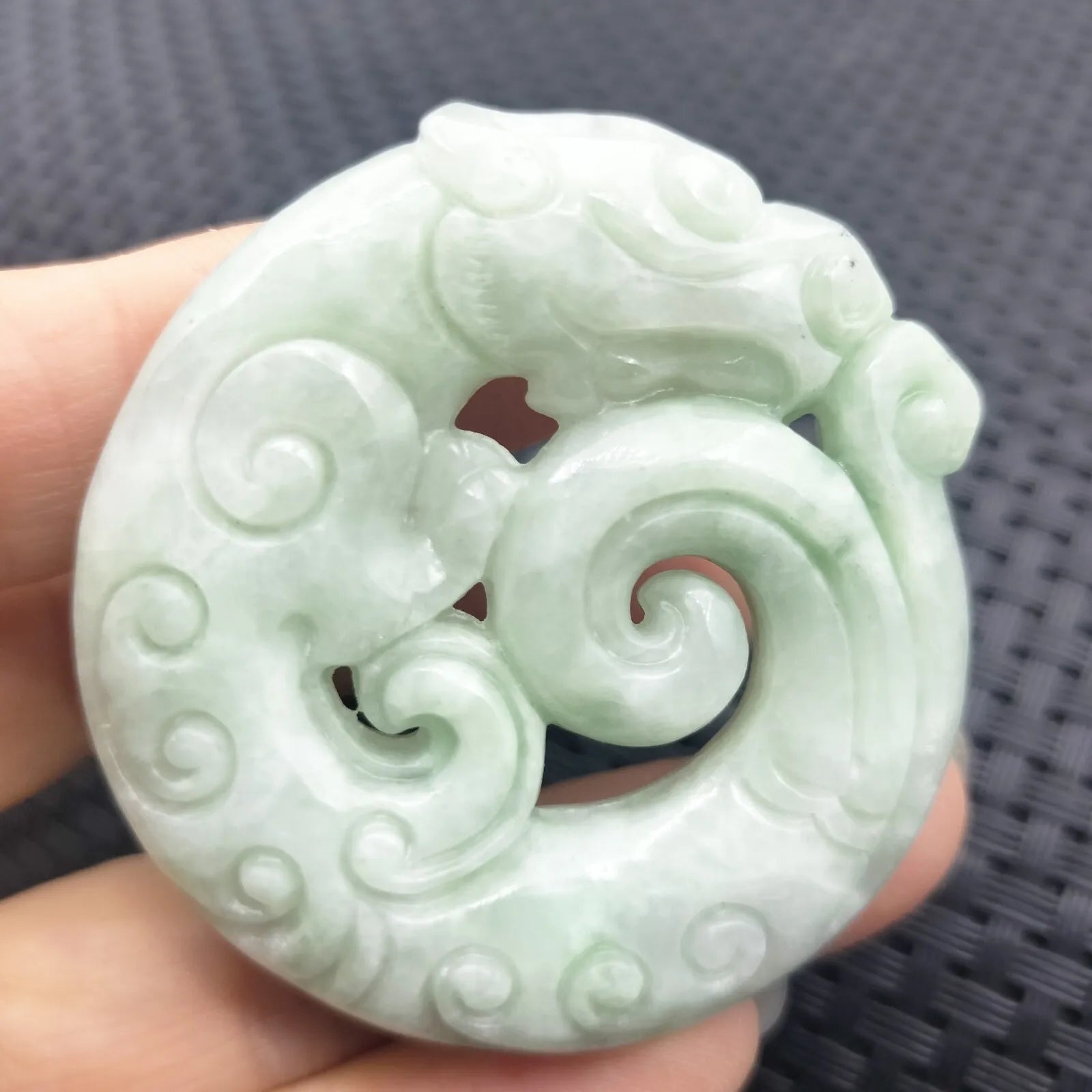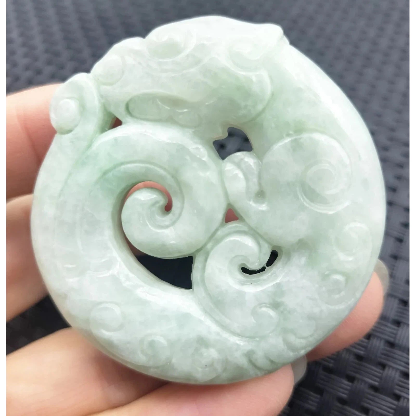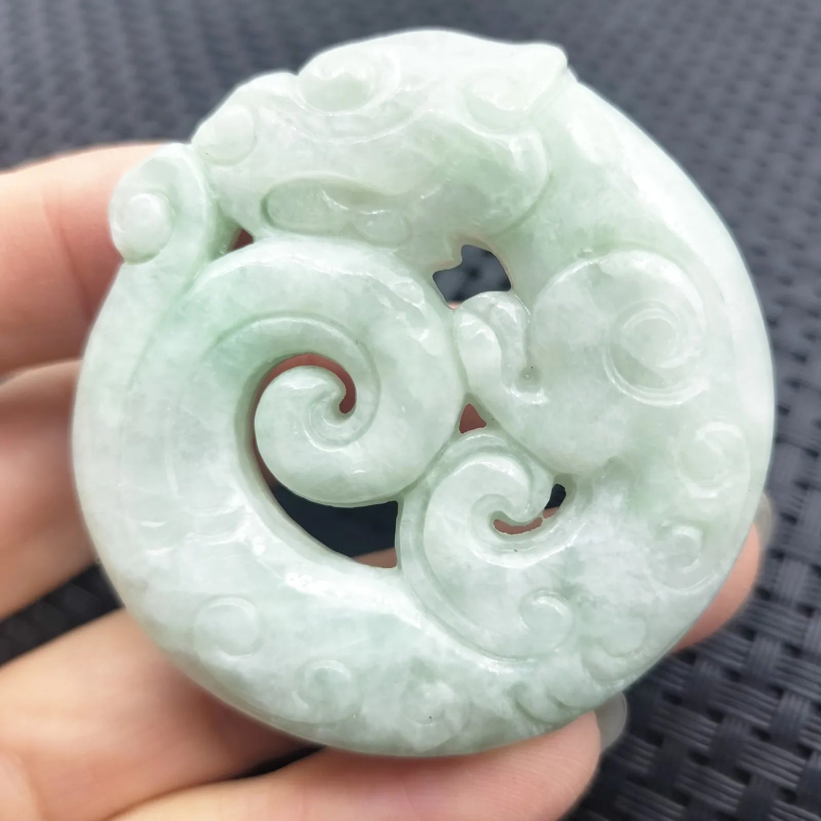 Certified Light Green Natural Type A Jadeite Retro Style Dragon Pi Xiu Pendant