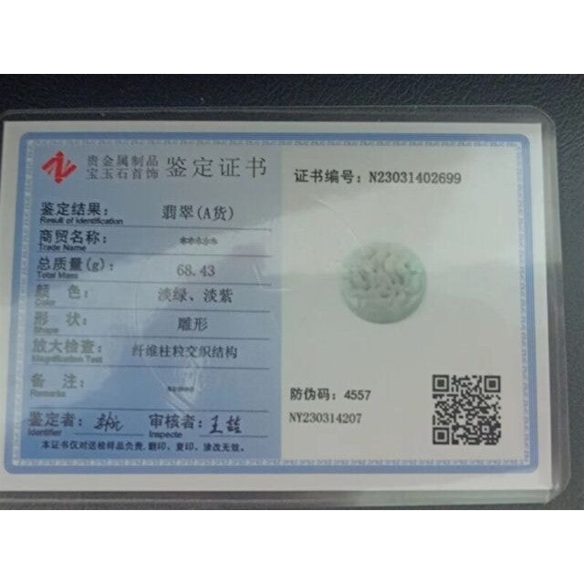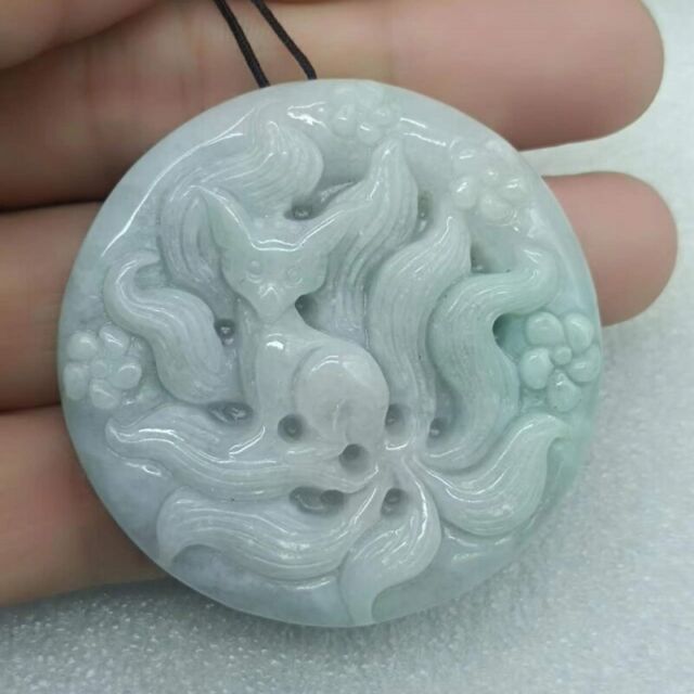 Certified Light Green Purple Natural A Jade Jadeite China Style Pendant Fox