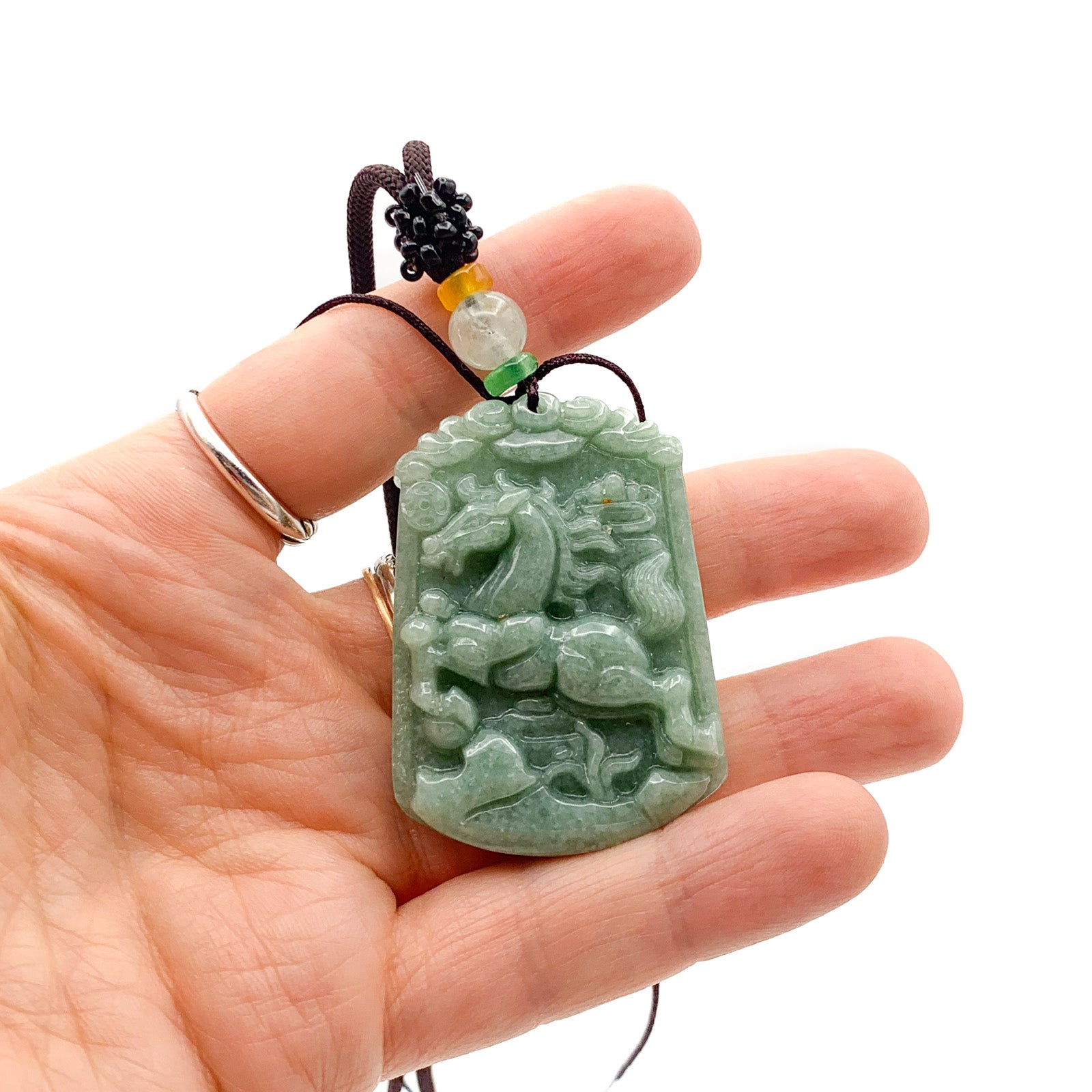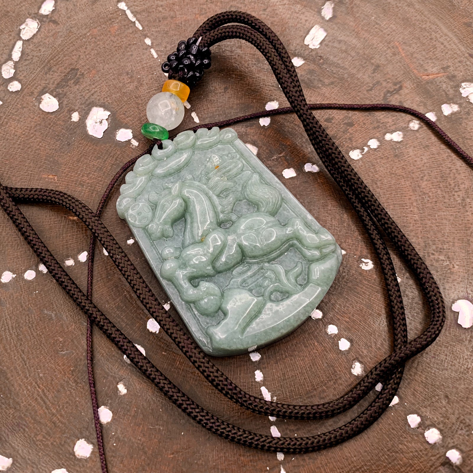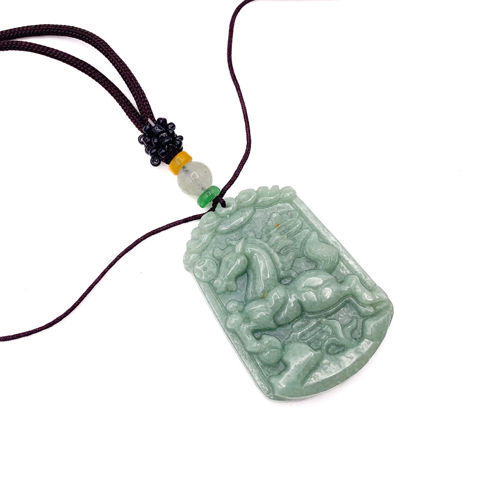 Certified Natural A Jade Jadeite Pendant Horse Coin Necklace