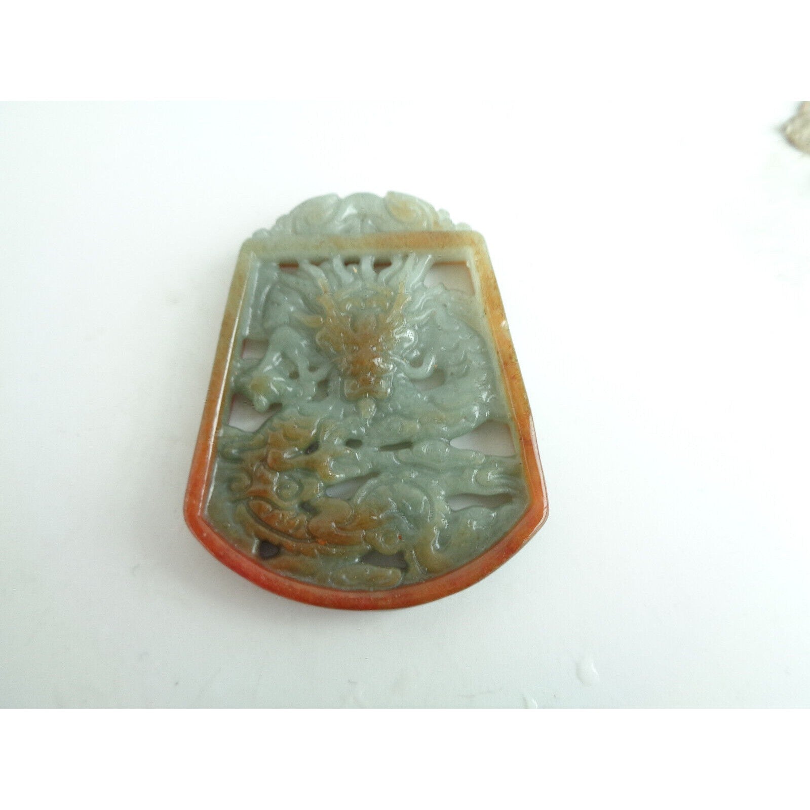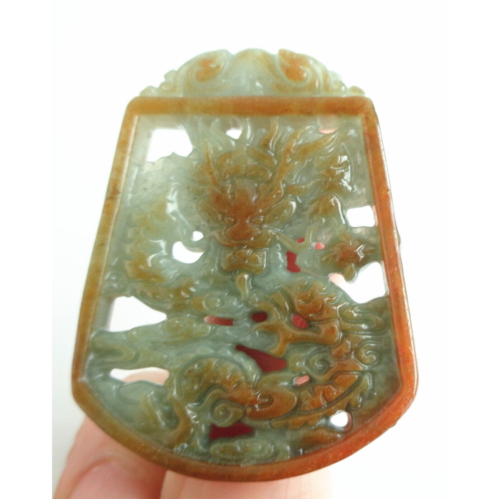 Certified Orange Green A Jade Jadeite Carved Hollowed Out Dragon Ruyi Pendant