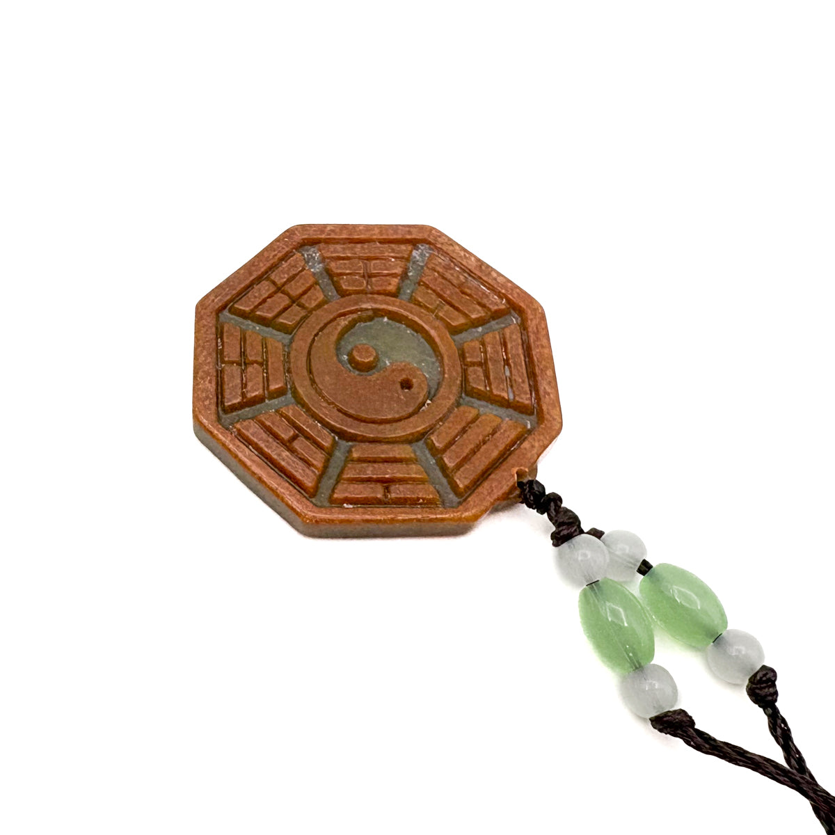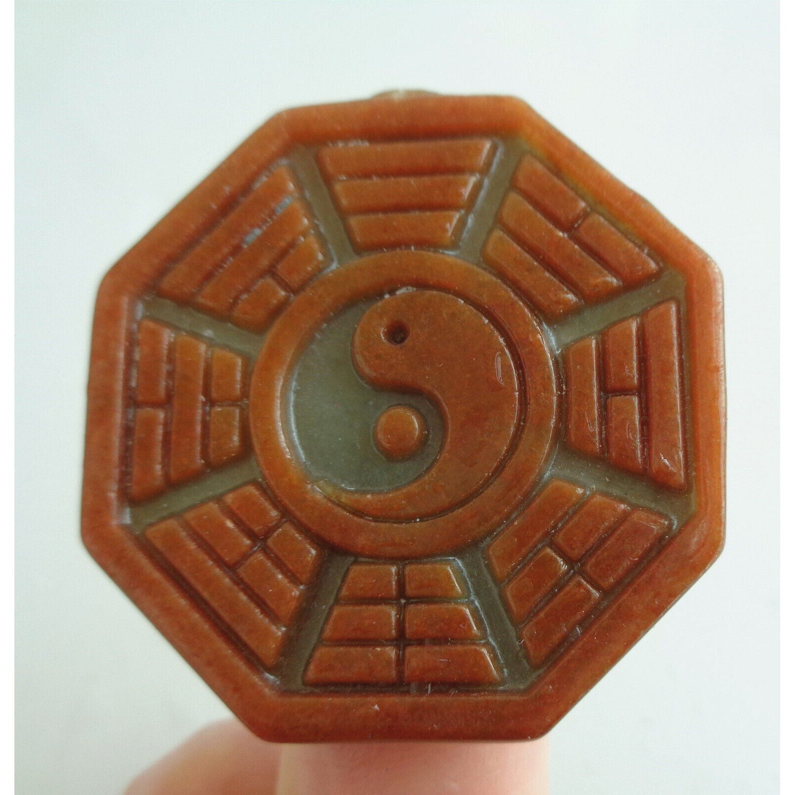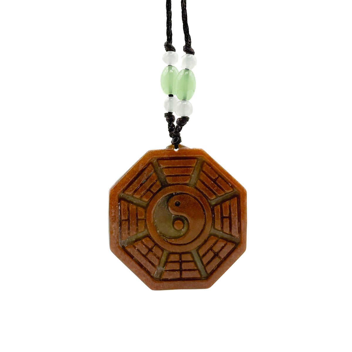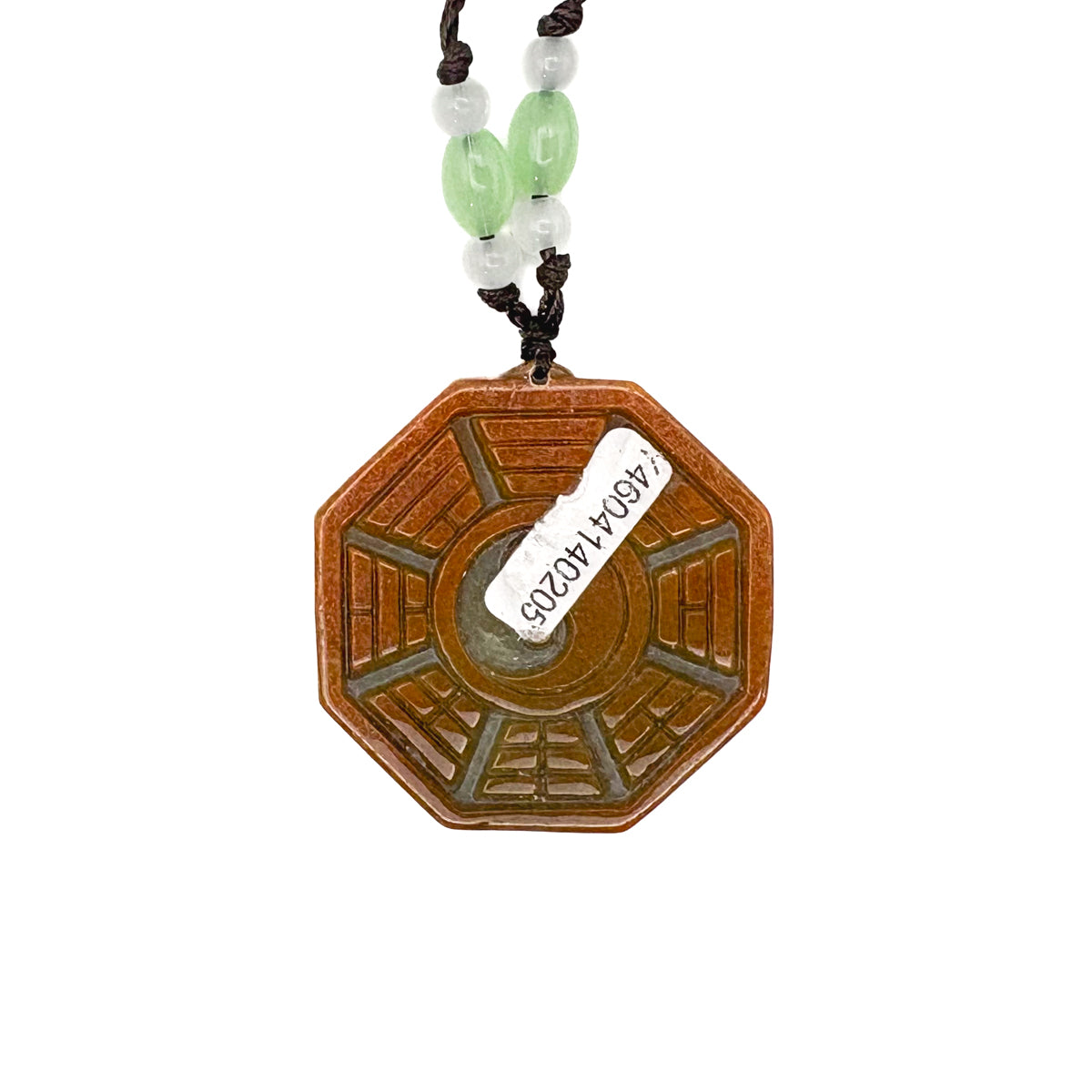 • Certified Orange Green Natural A Jade Jadeite 8 Eight Diagram Feng Shui Pendant