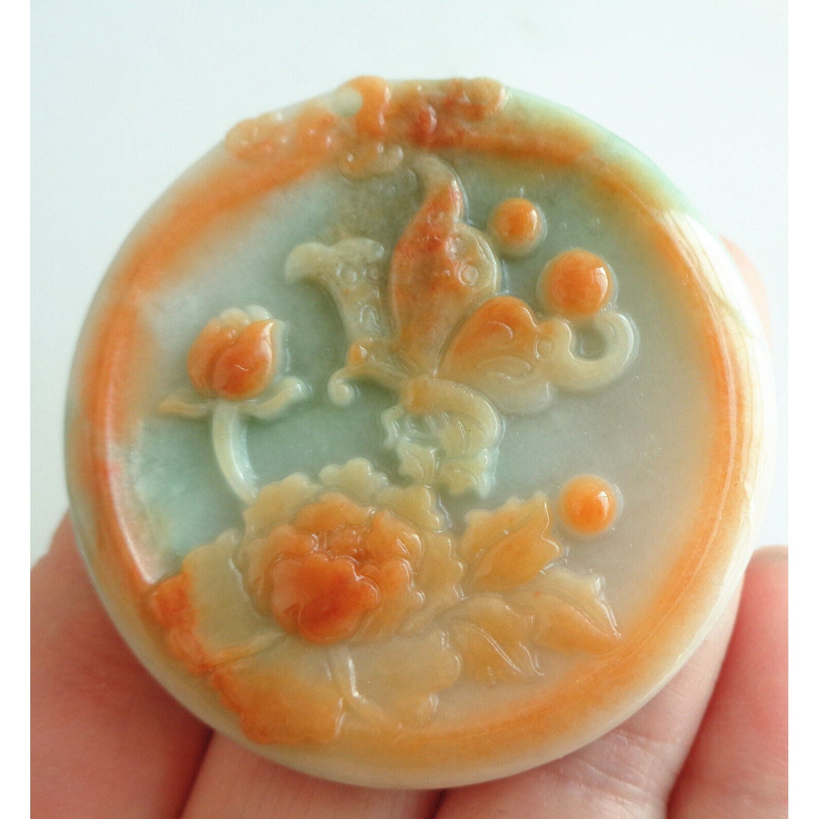 Certified Orange Green Natural A Jade Jadeite Carved Butterfly Flower Pendant