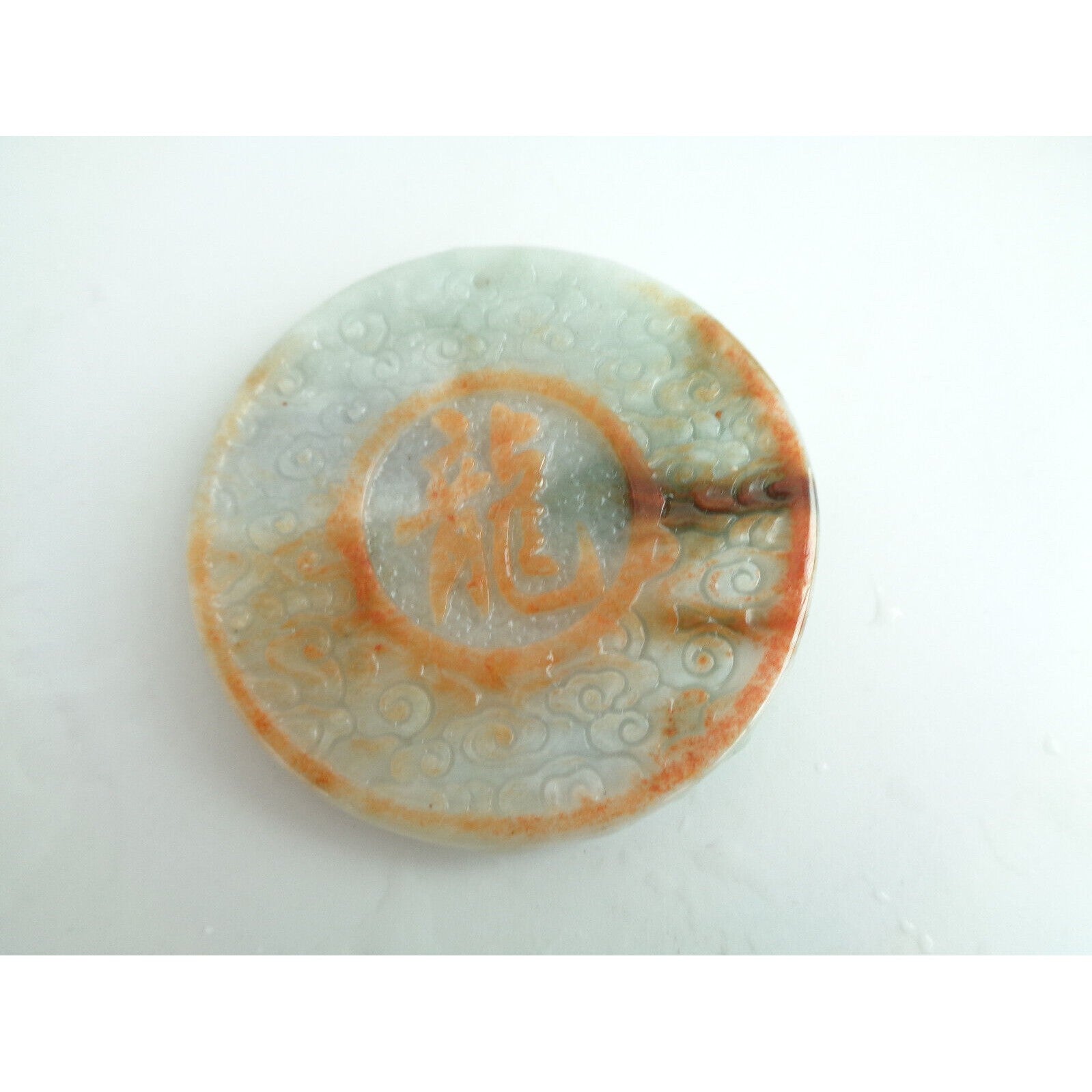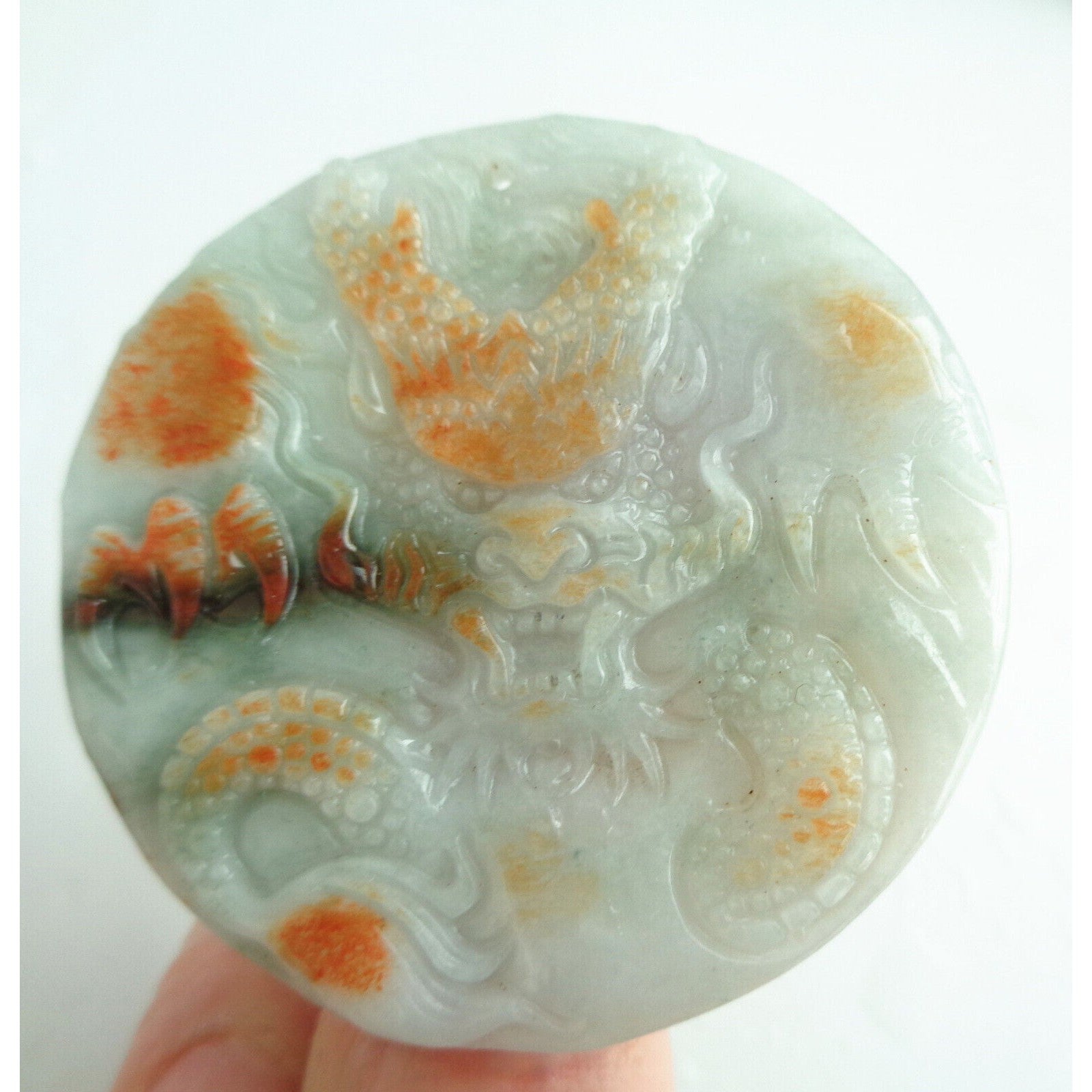 Certified Orange Green Natural A Jade Jadeite Carved Dragon Ruyi Pendant Necklace