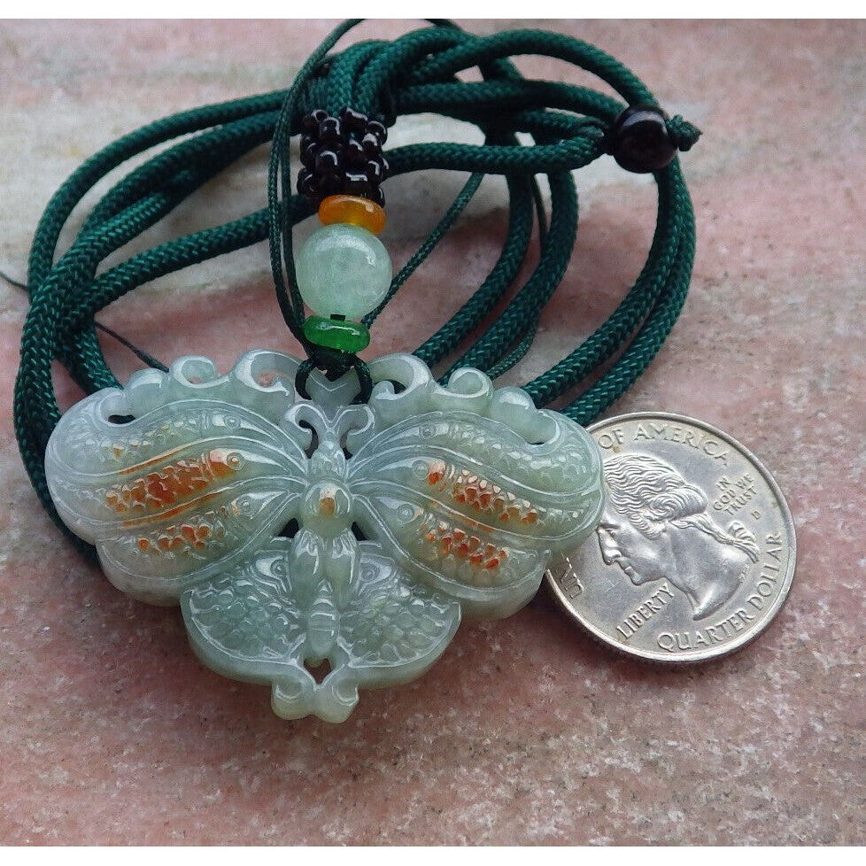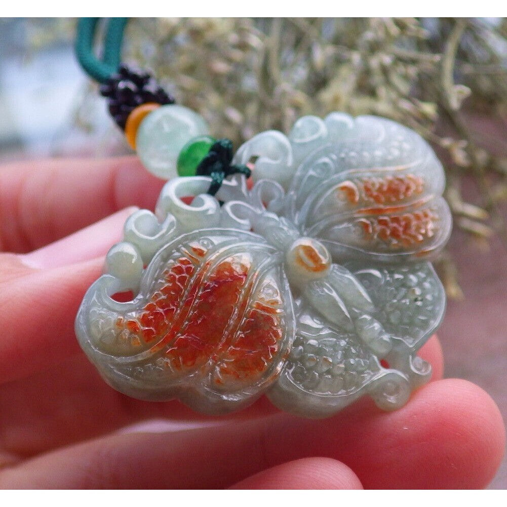 Certified Red Burma Natural A Jade Jadeite Pendant Butterfly Necklace