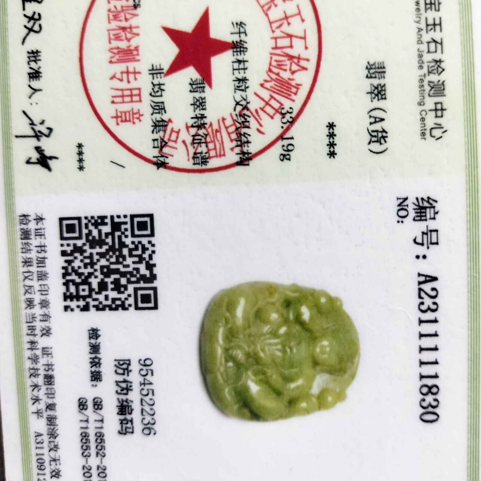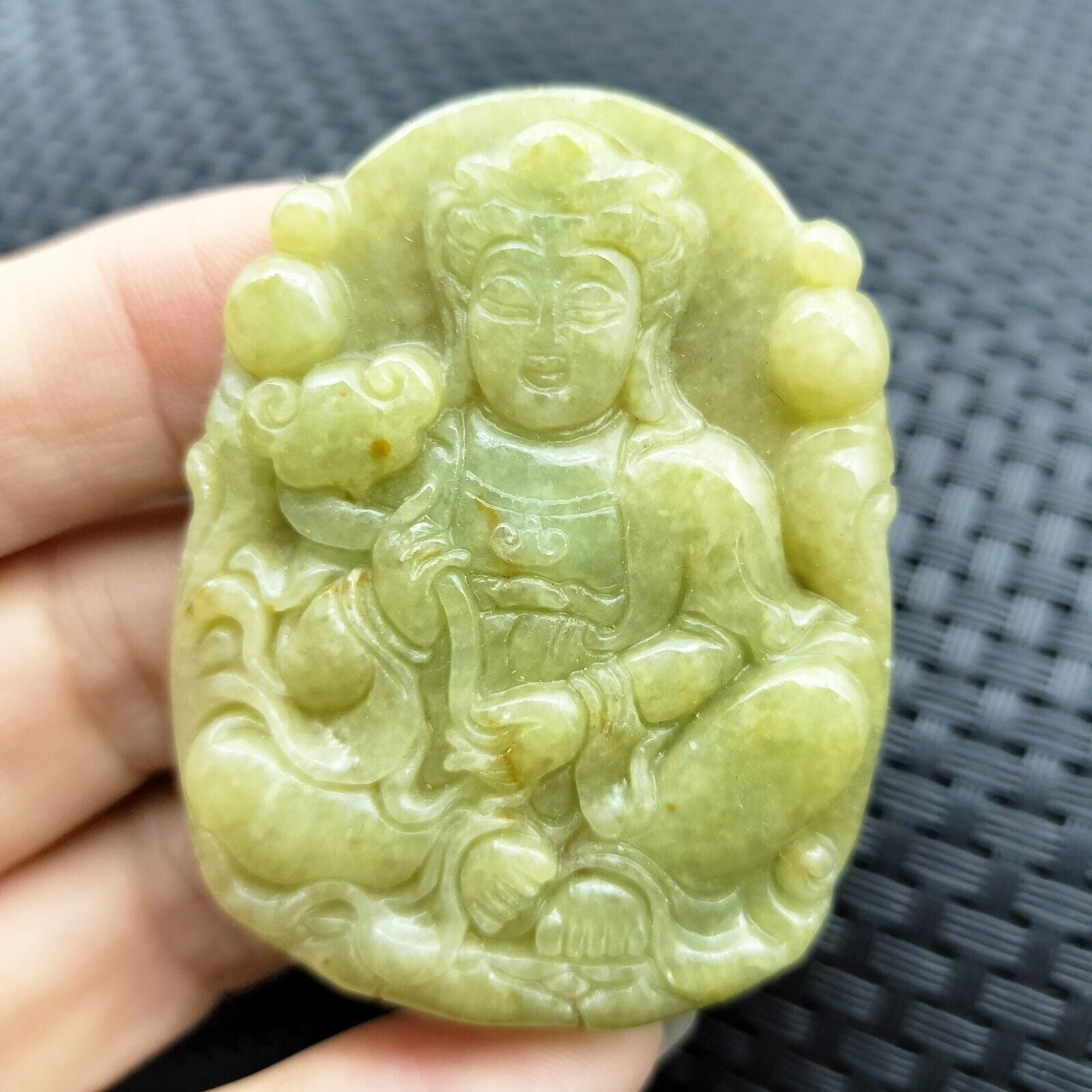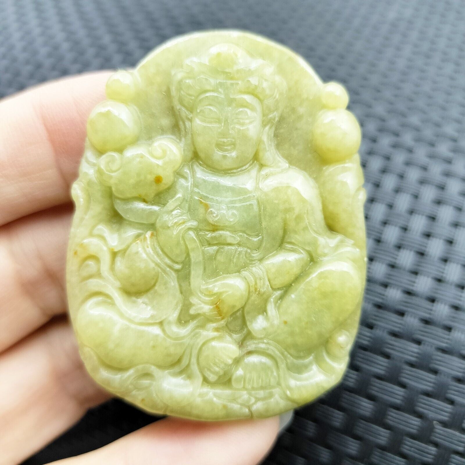 Certified Yellow Green Natural A Jade Jadeite Guanyin Kwan Yin God Ruyi Pendant