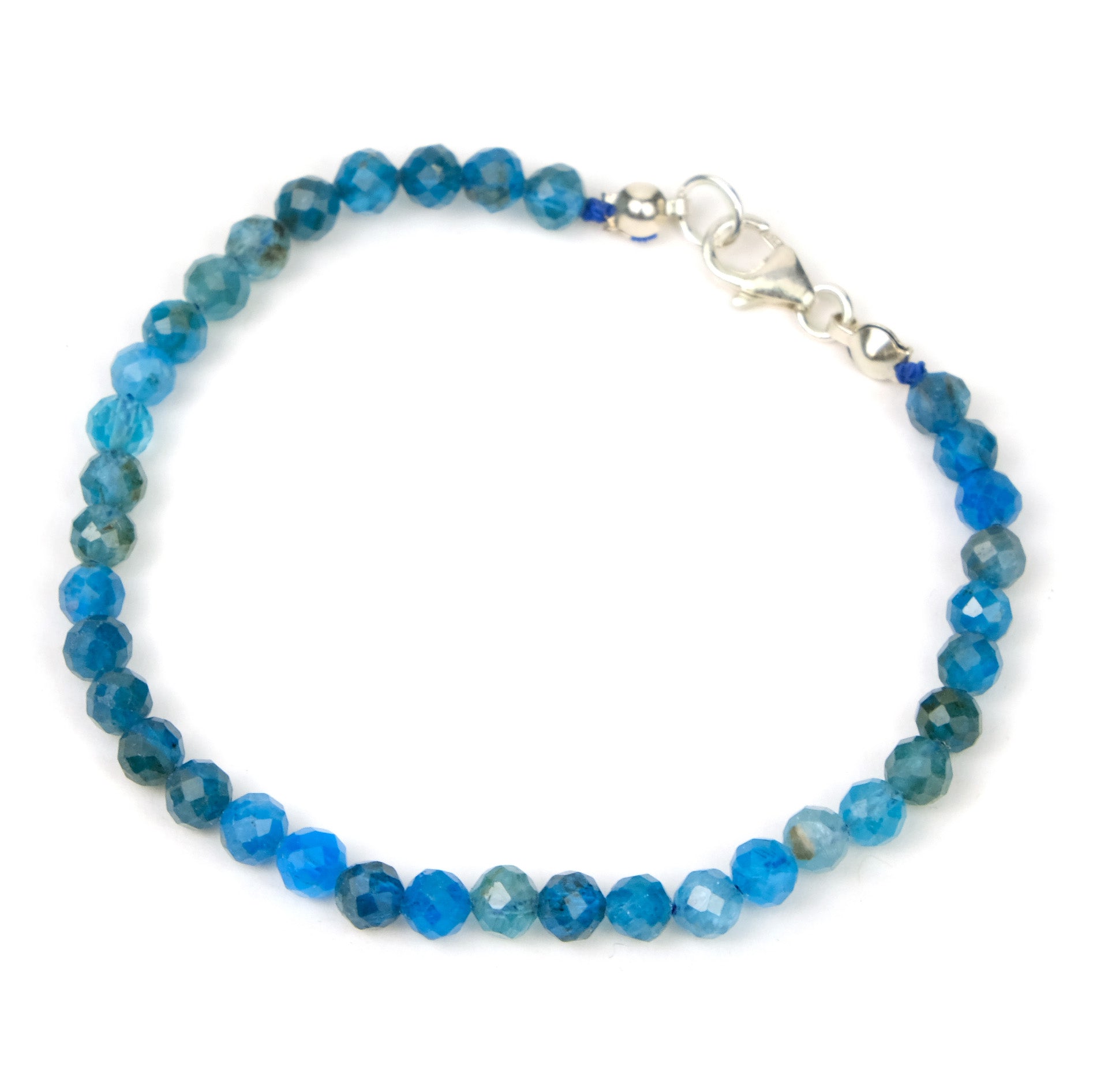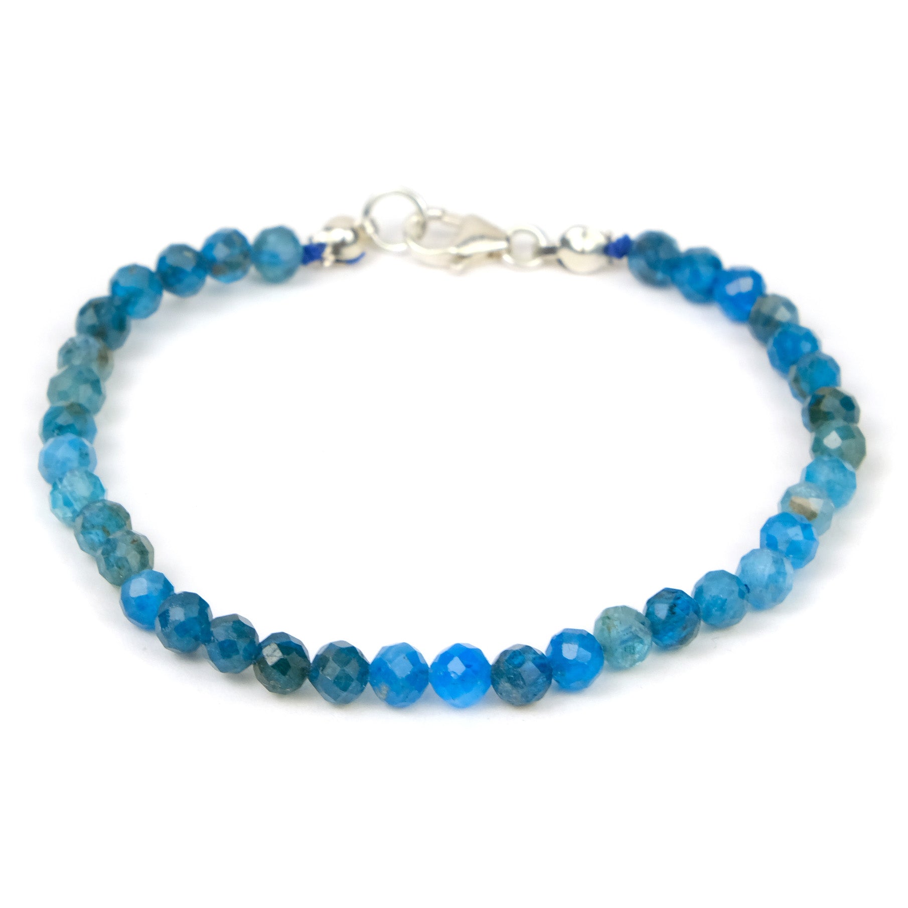 Cerulean Apatite 4mm Faceted Round Bracelet with Sterling Silver Trigger Clasp