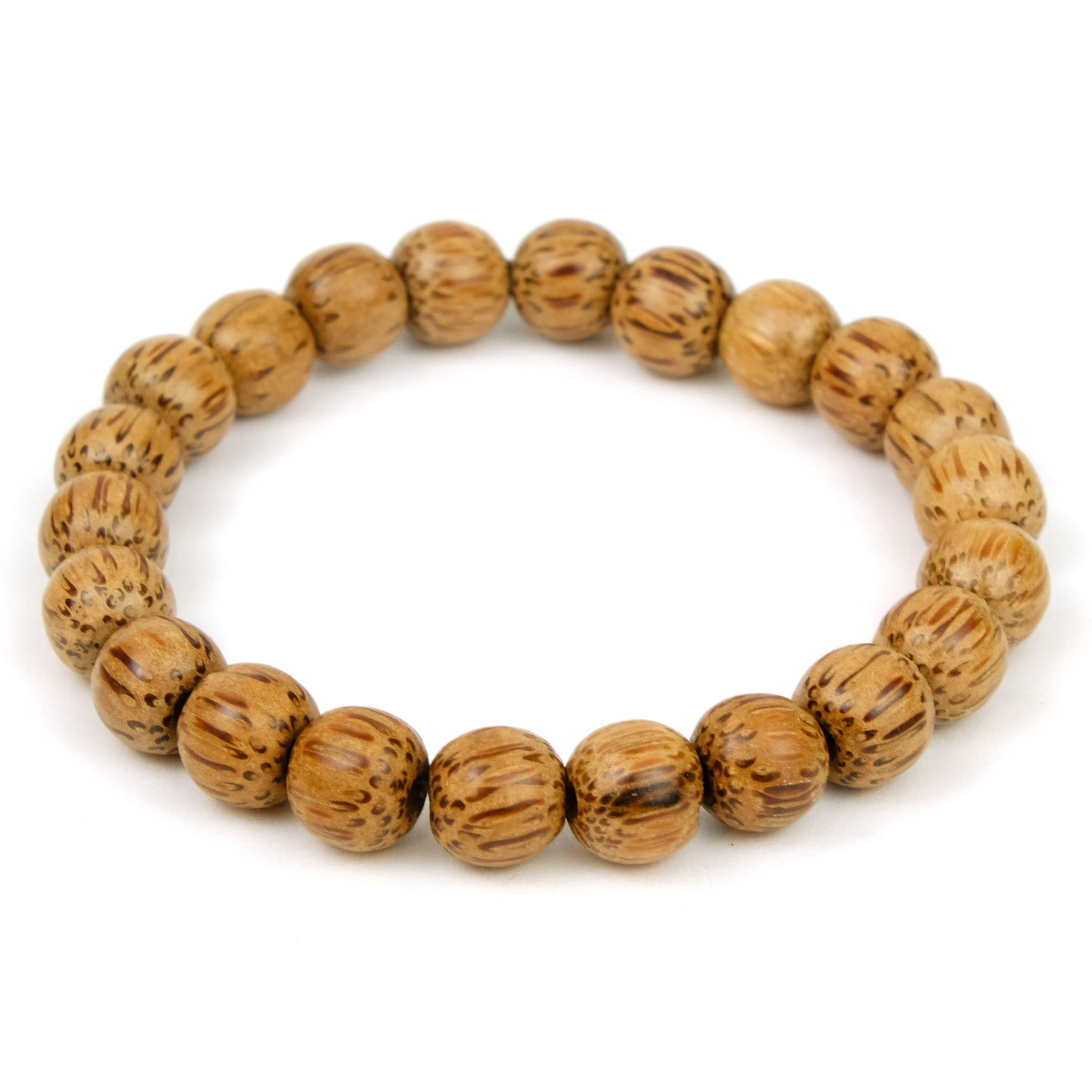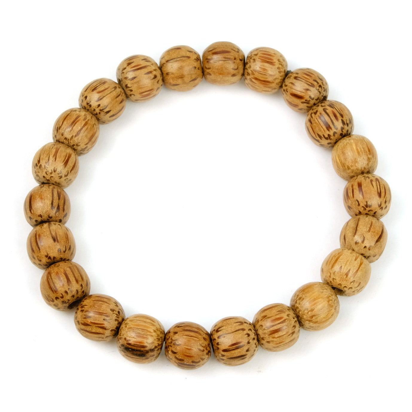 Coconut Wood 10mm Rounded Barrels Stretch Bracelet
