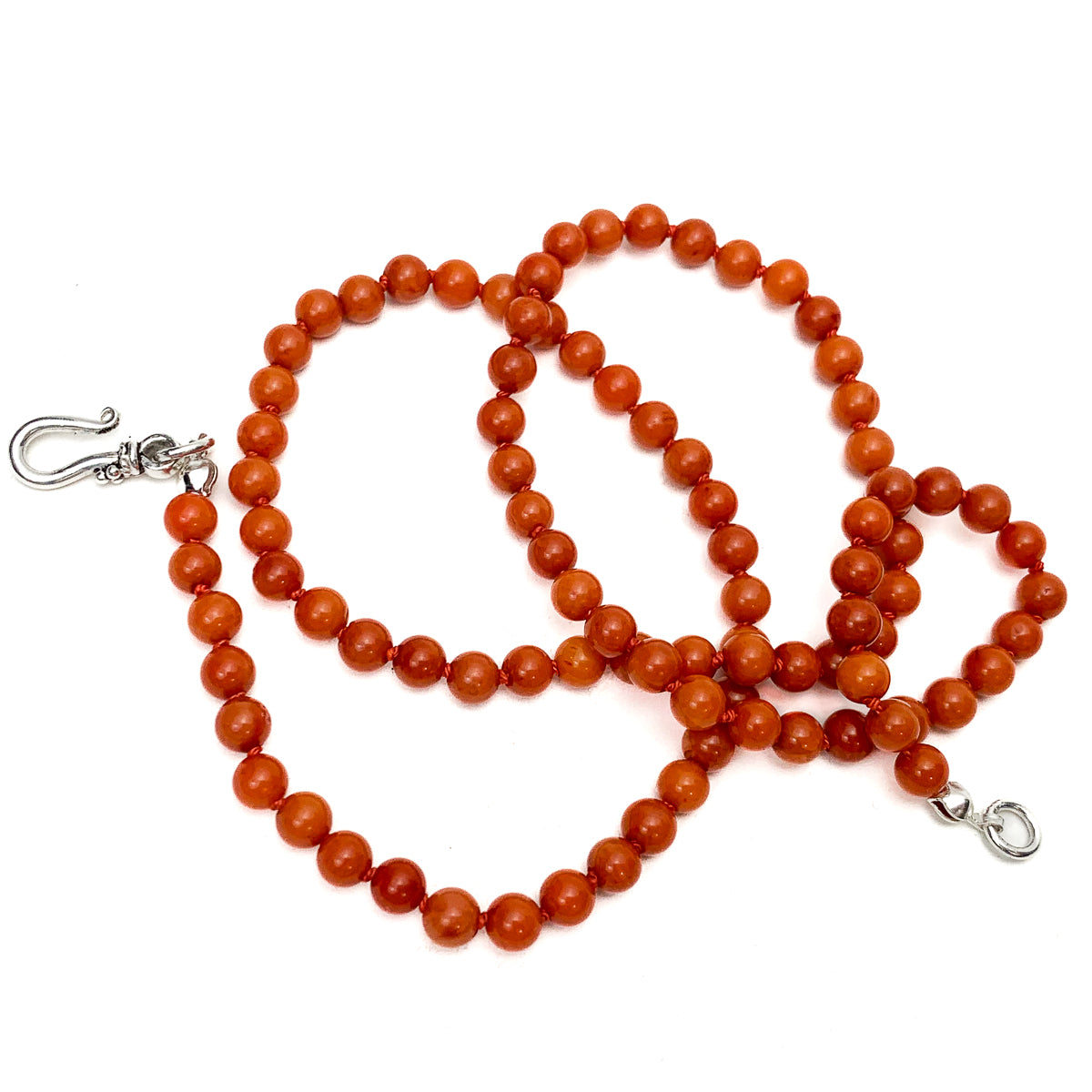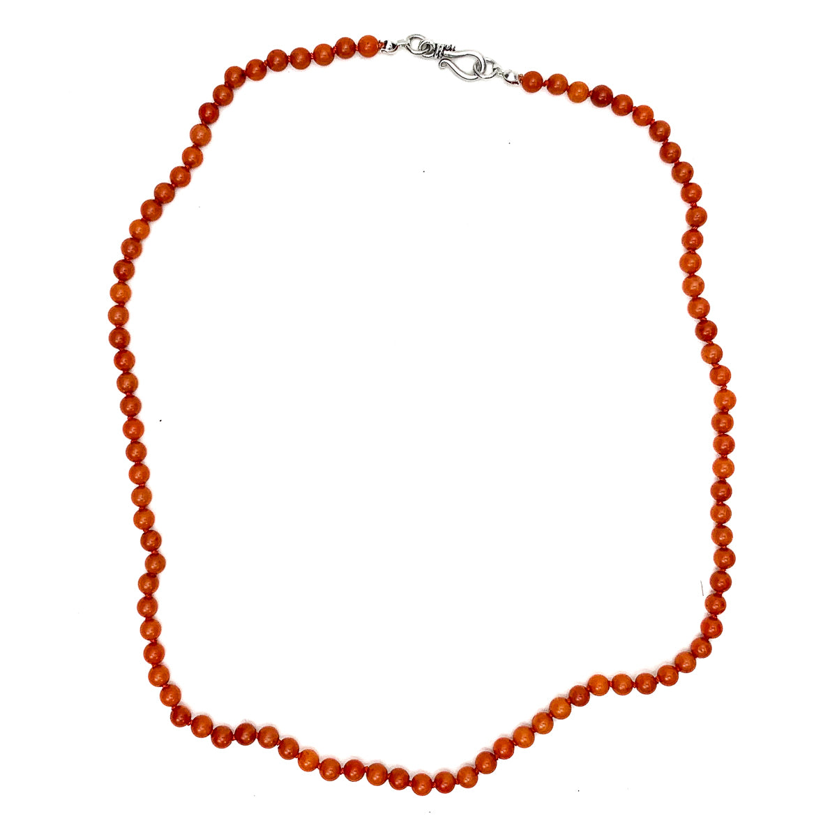 Coral 4mm Knotted Necklace With Sterling Silver J Hook Clasp