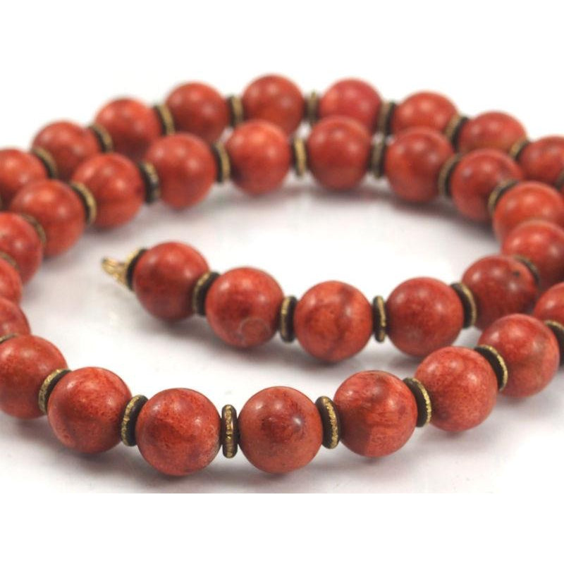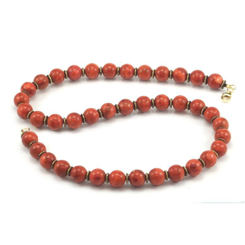 Coral and Brass Necklace with Gold Filled Trigger Clasp