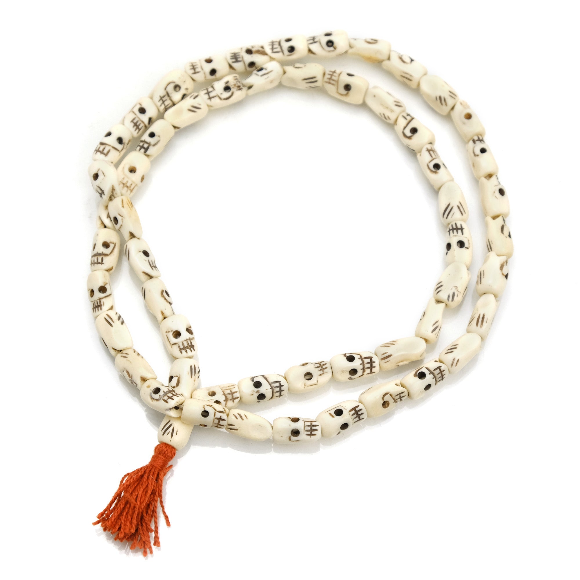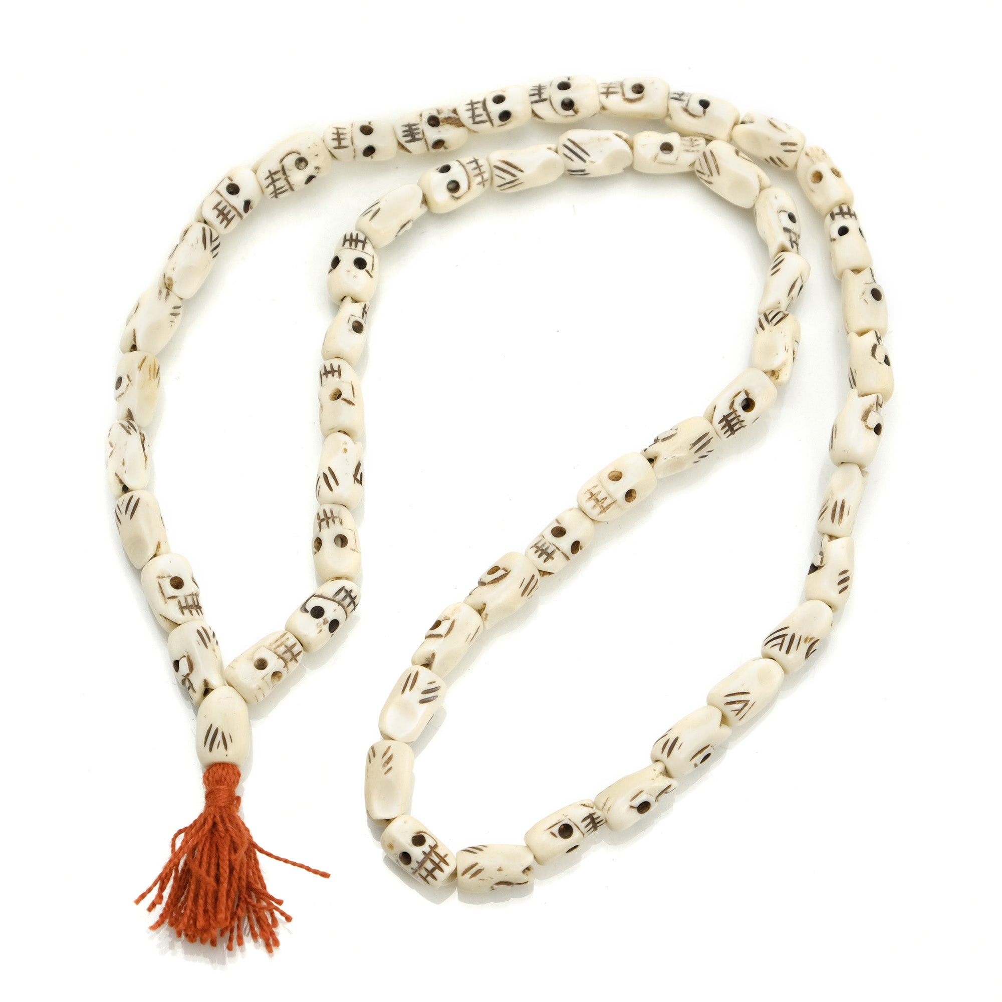 Cow Bone Hand Carved Skull "Tooth Shape" 54 Bead Half Mala
