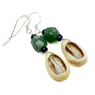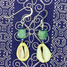 Cowrie Shell With Serpentine and Sapphire Earrings With Sterling Silver French Wires
