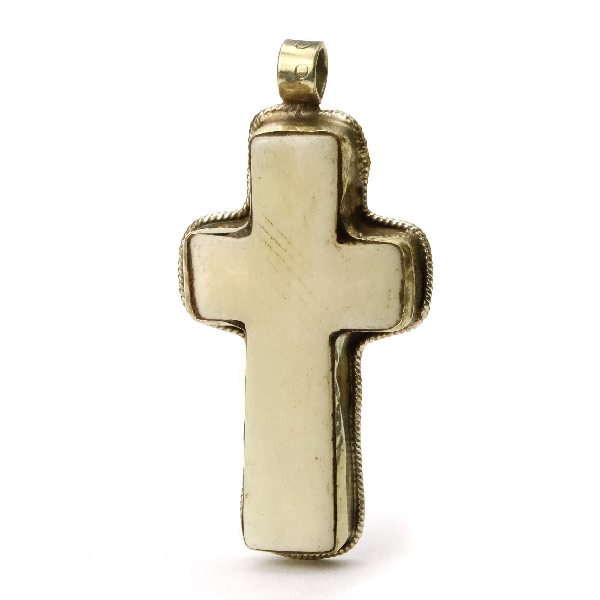 Cross Hand Carved Cow Bone Framed # 57 / 1