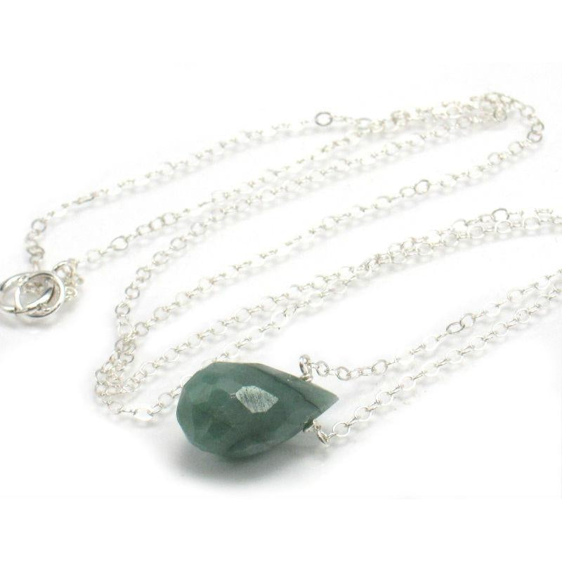 Emerald Necklace on Sterling Silver Chain with Sterling Silver Spring Ring Clasp