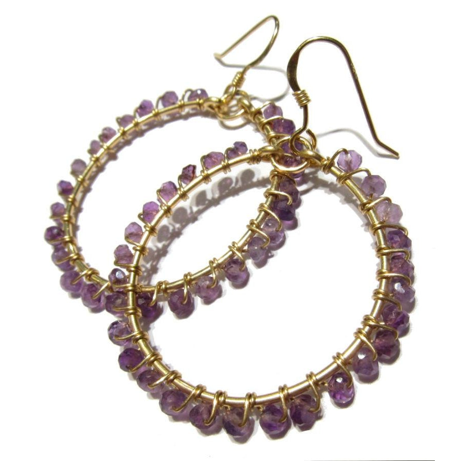 Faceted Amethyst Rondelle Hoop Earrings with Gold Filled Ear Wires